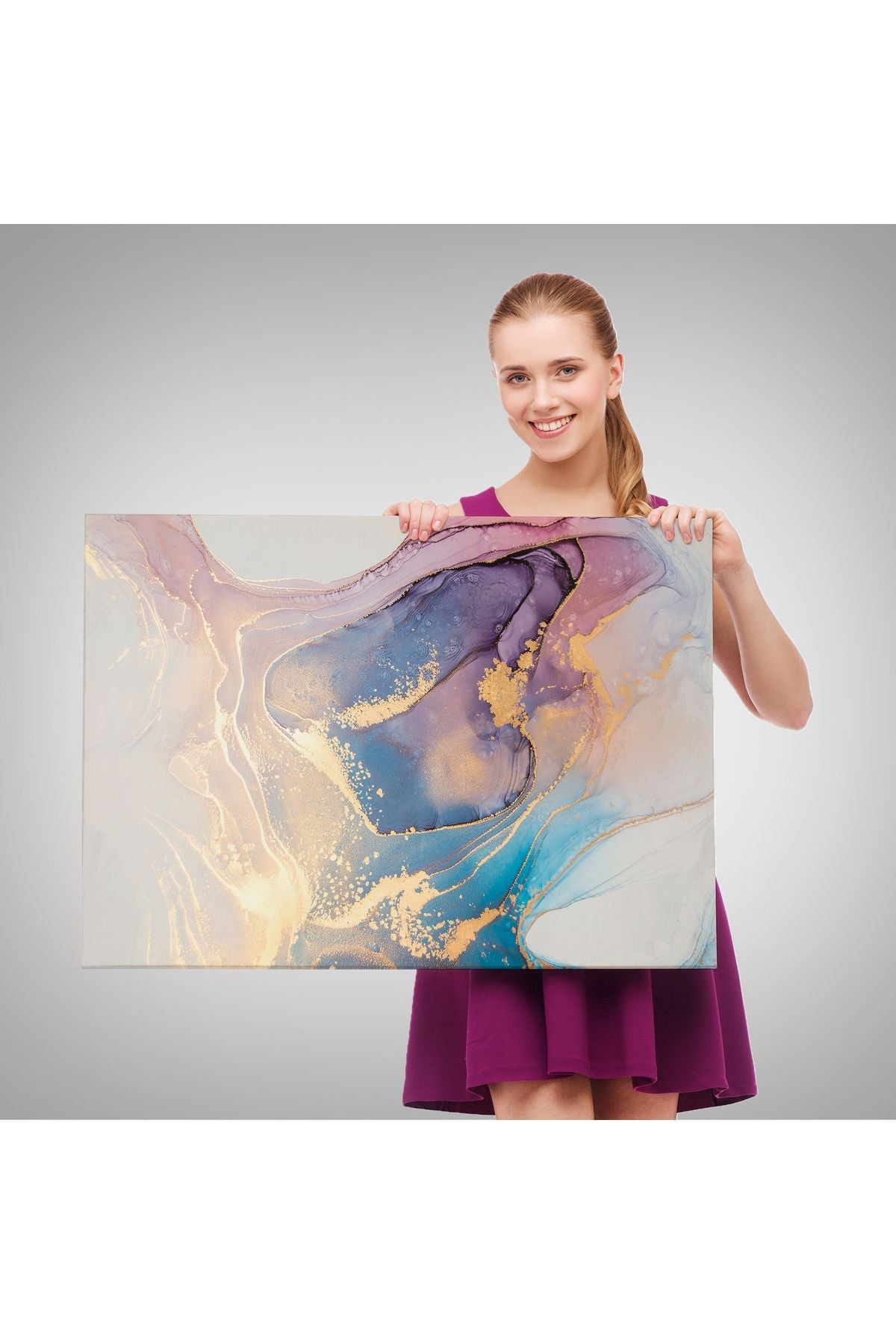 Mürekkep ve Alkol Elementleri ile Mermer Deseni Verilmiş Kanvas Tablo-5039