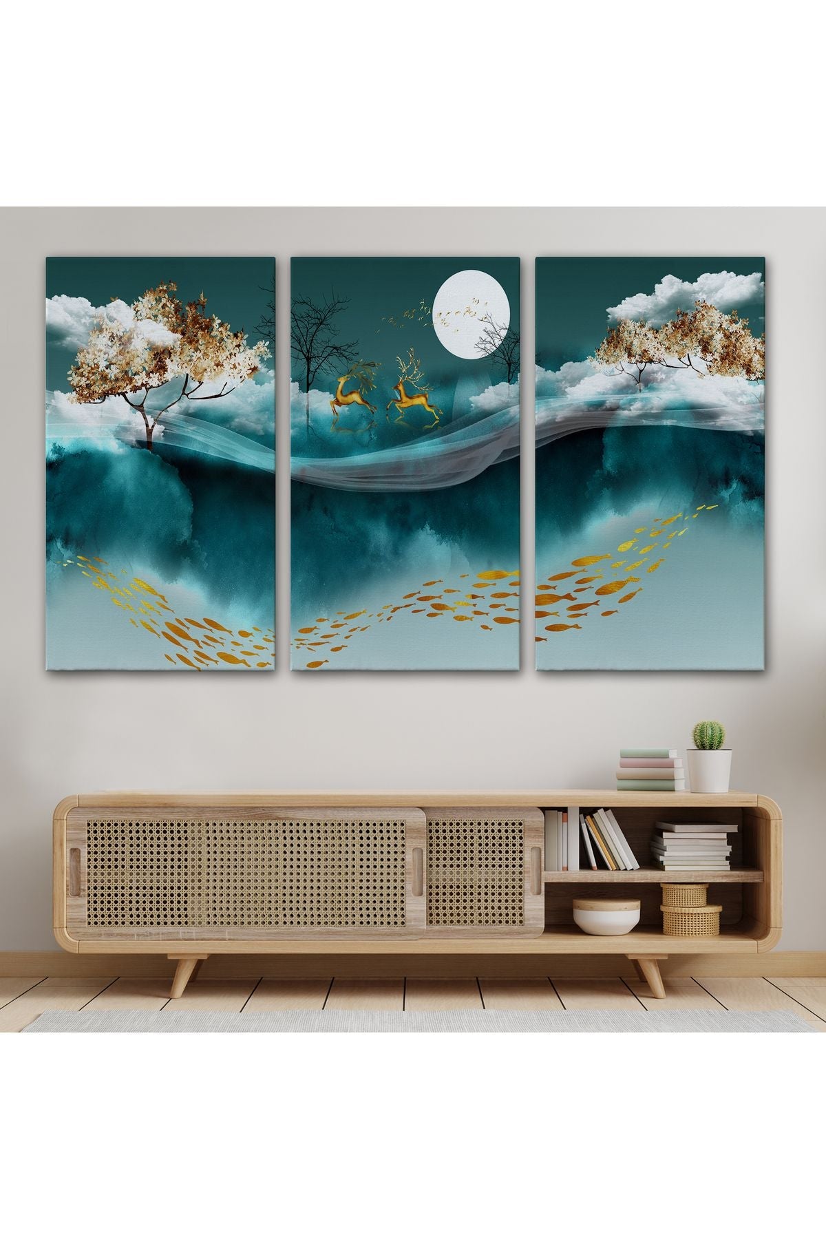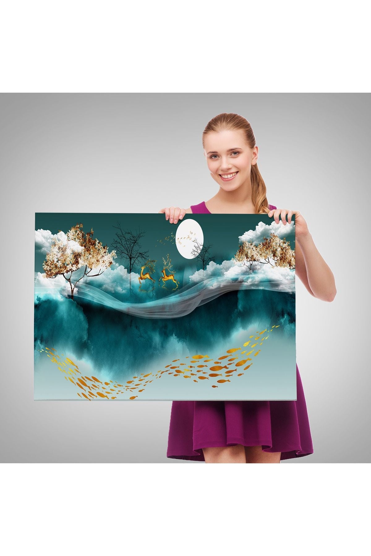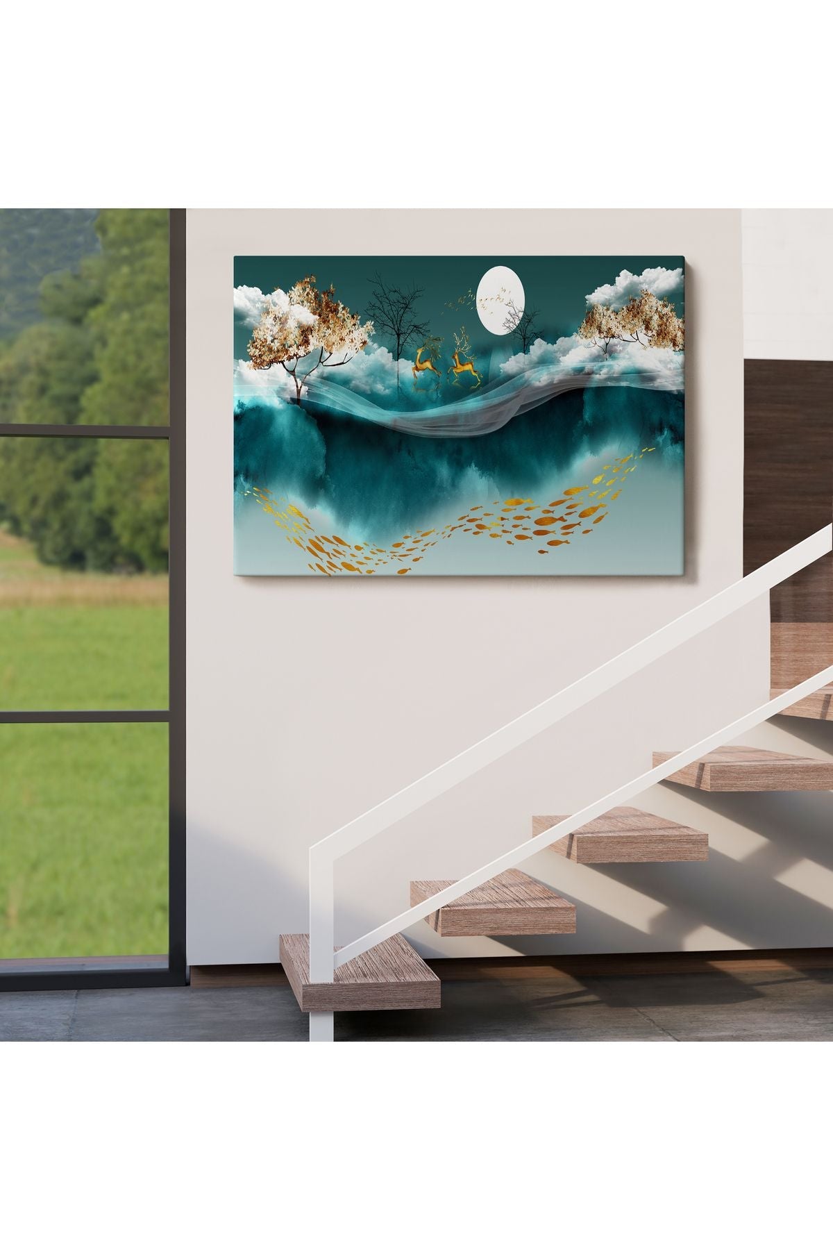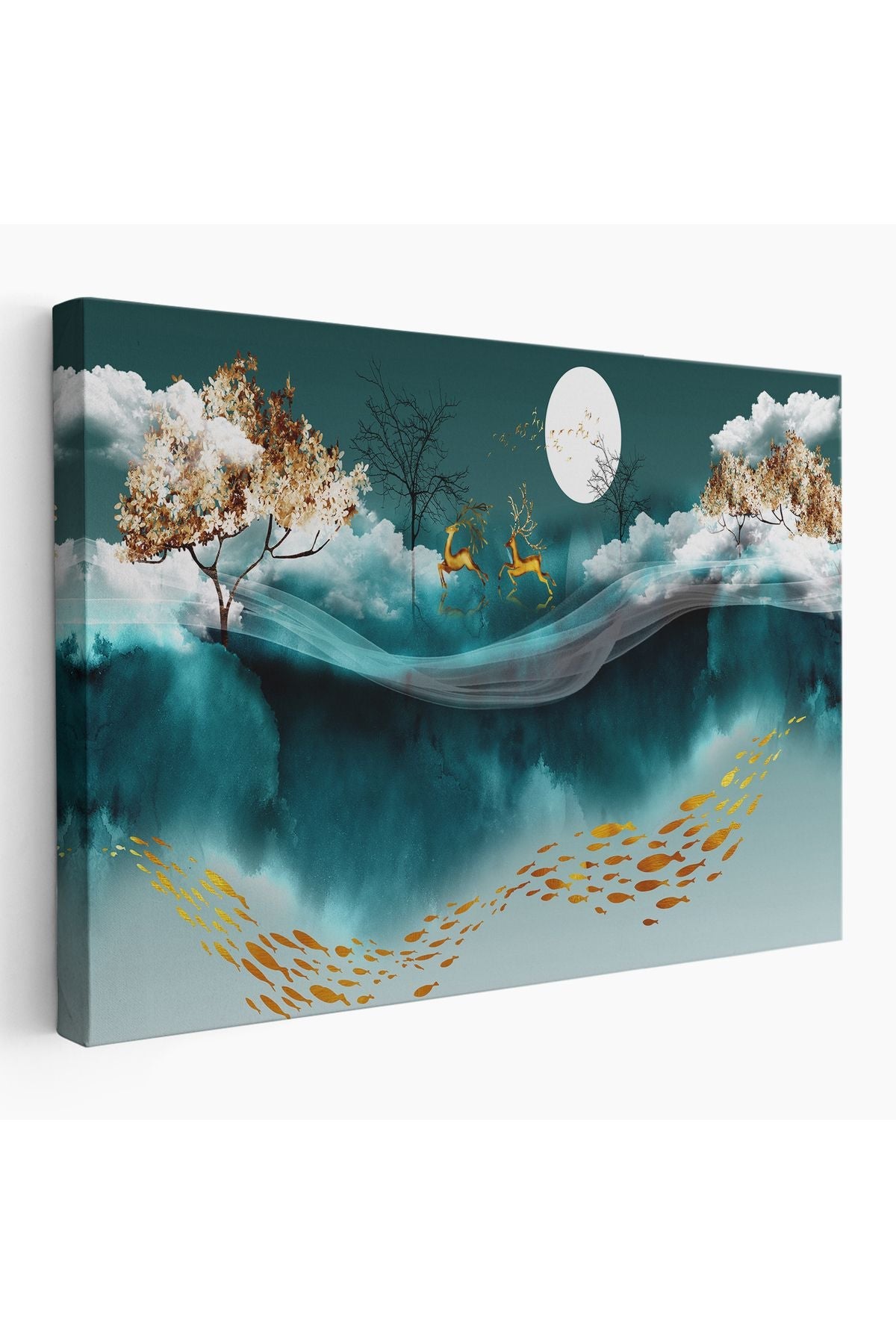 emn seri001 Ormanda Koşan Geyiklerin Dijital Sanatı Kanvas Tablo-5040