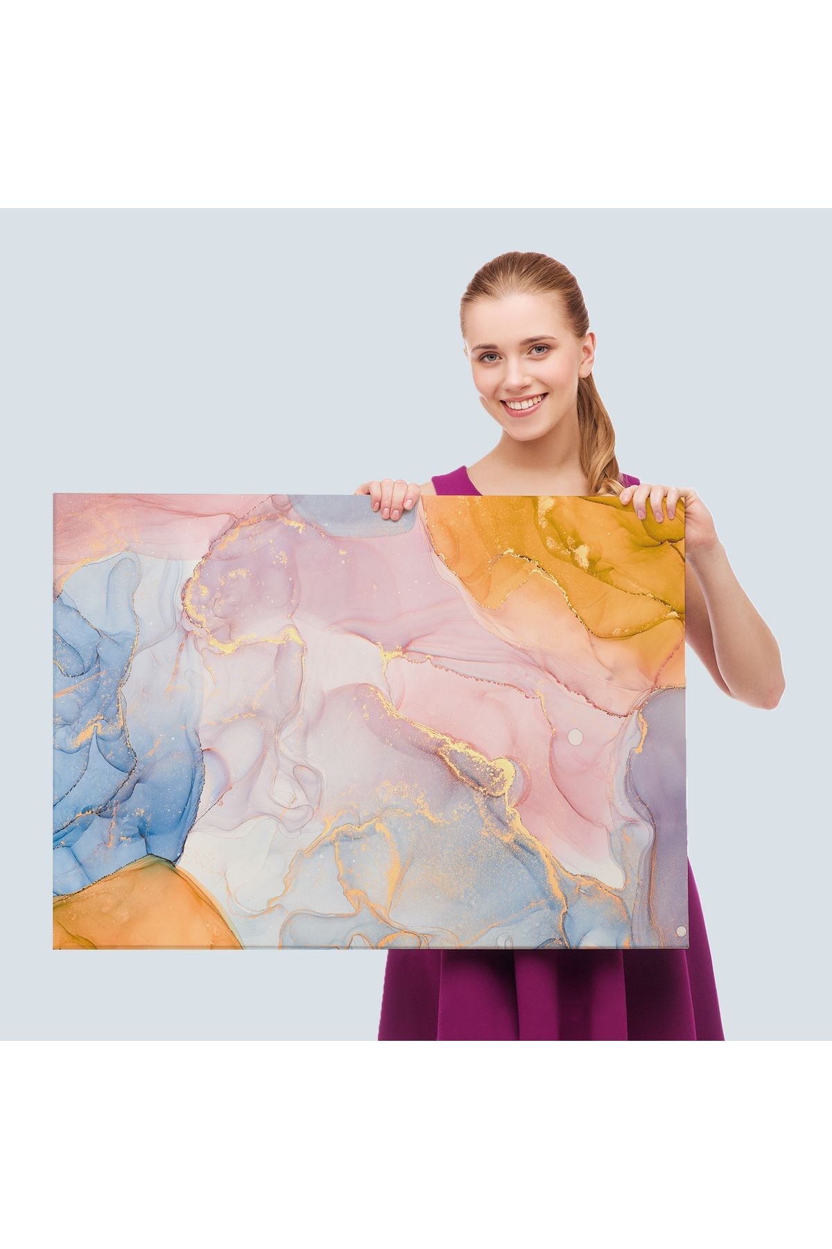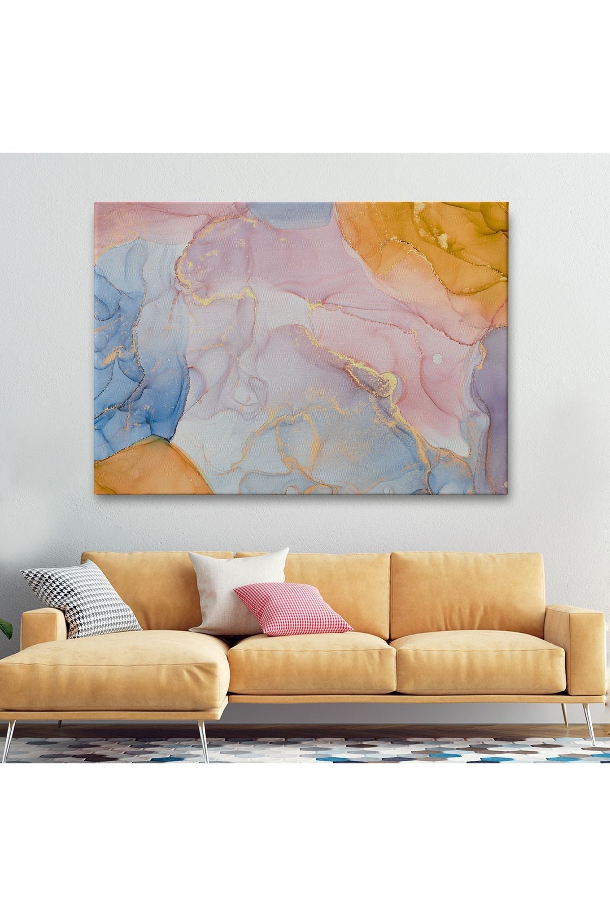 Mürekkep ve Alkol Elementleri ile Mermer Deseni Verilmiş Kanvas Tablo-5047