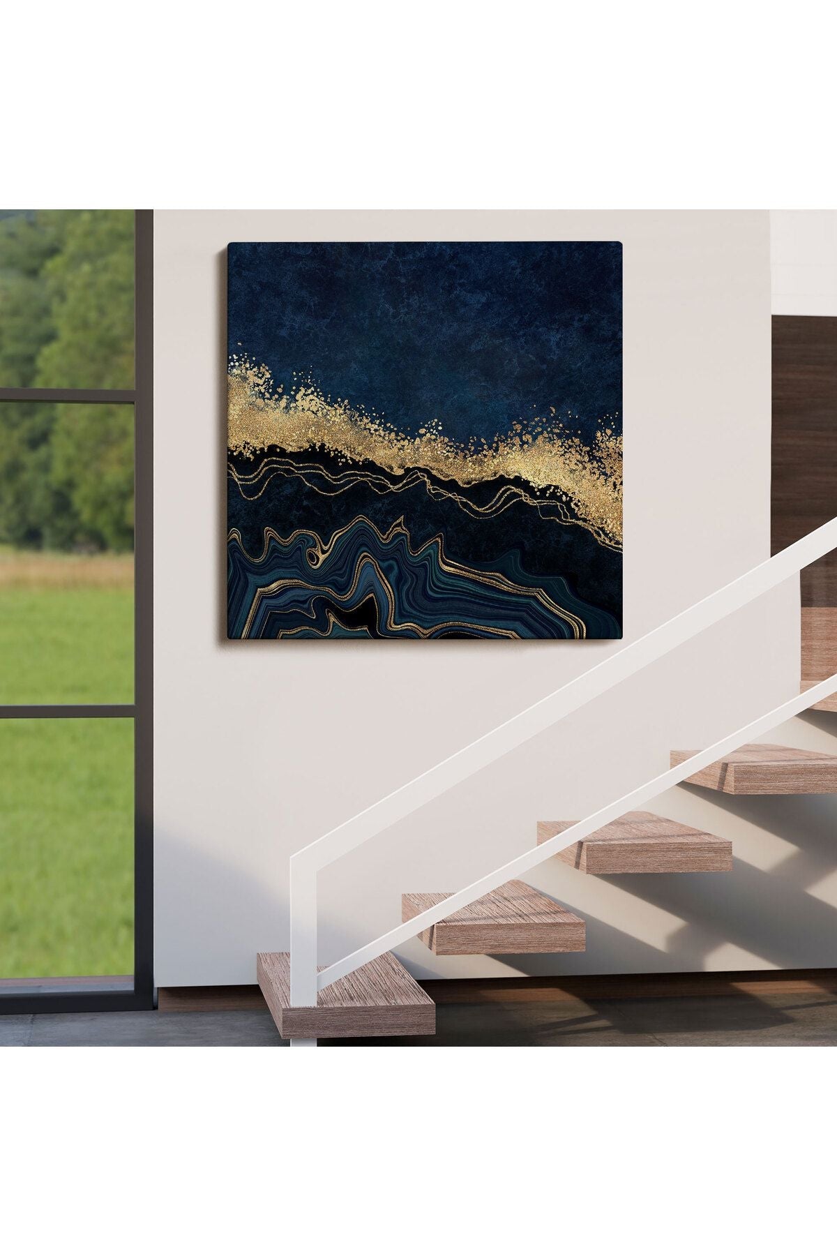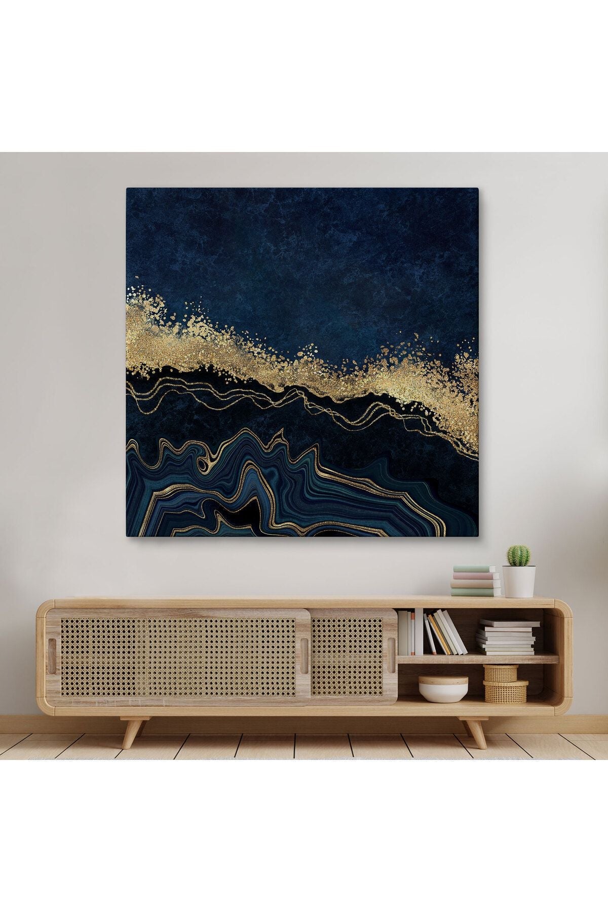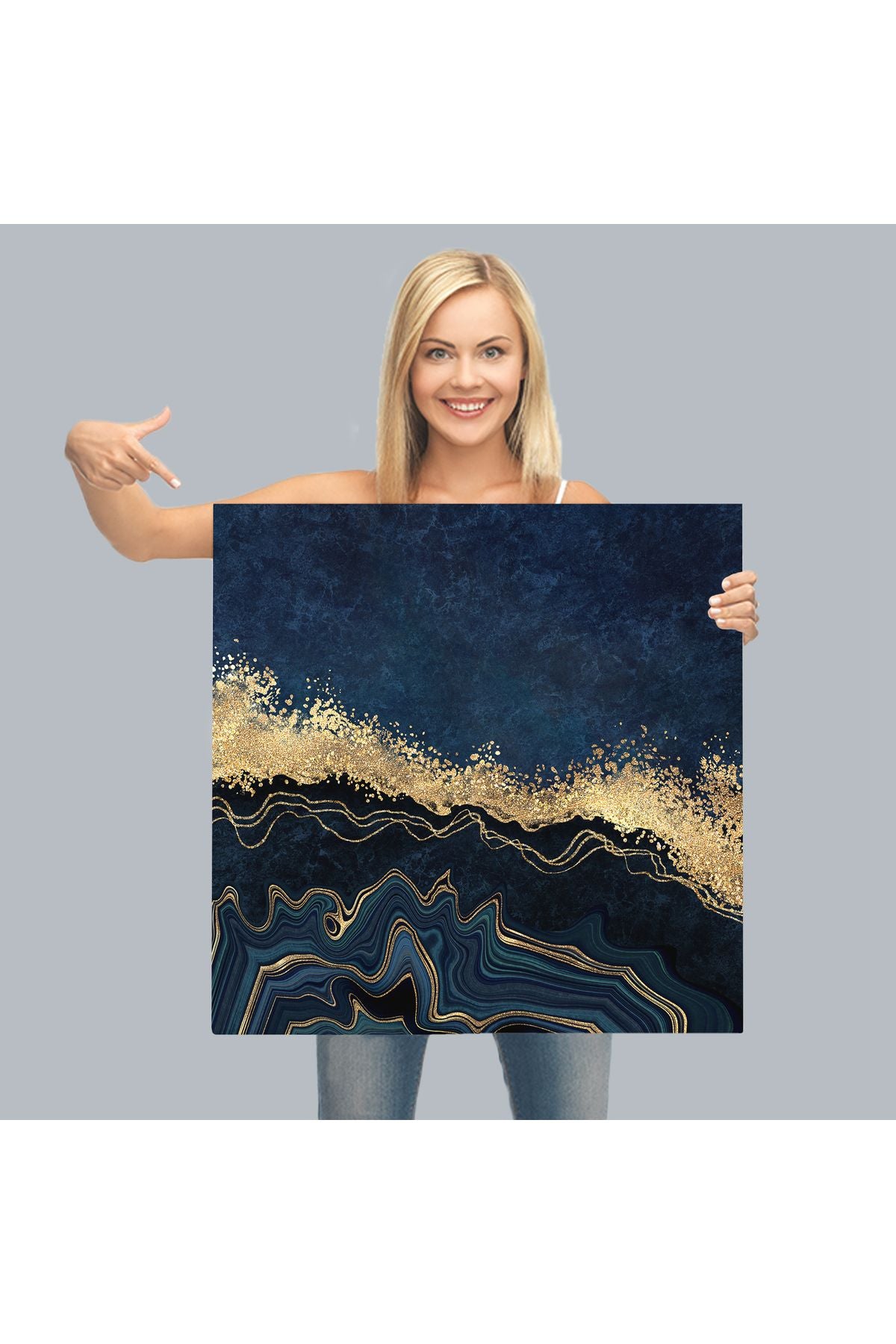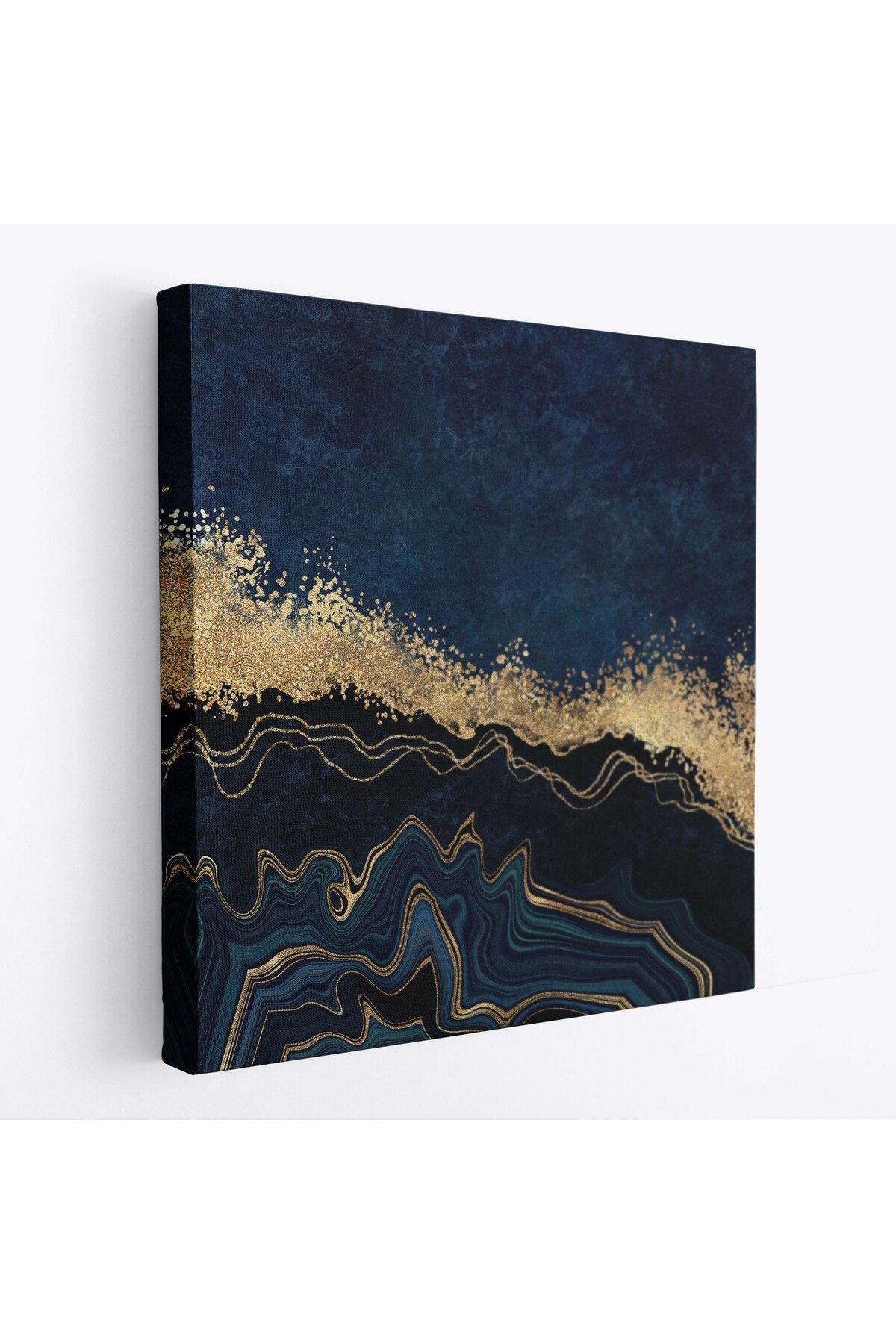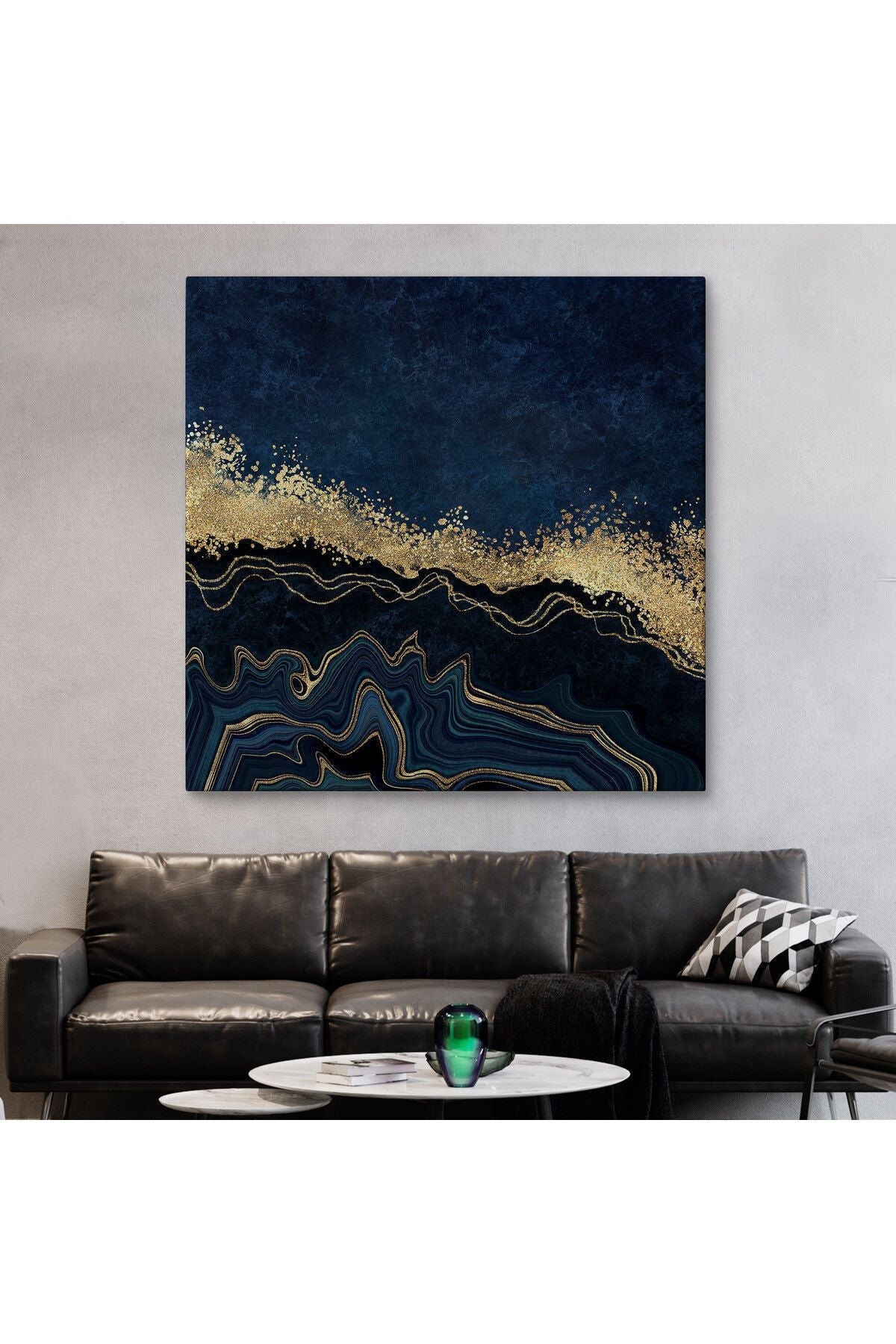 Lacivert ve Gold'un Mükemmel Uyumu Mermer Görünümlü Modern Kanvas Tablo-5065