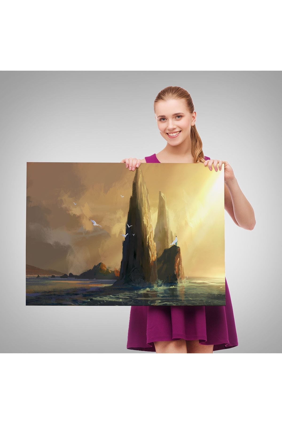 Kayaların Üzerinden Okyanusu İzleyen Beyaz Pelerinli Kadın Kanvas Tablo-5091