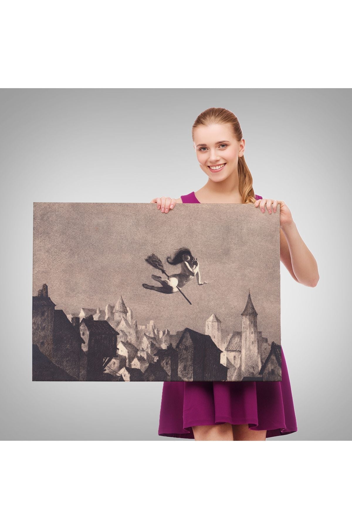 Süpürgedel Uçan Cadı, Dekoratif DuvarTablosu-5191