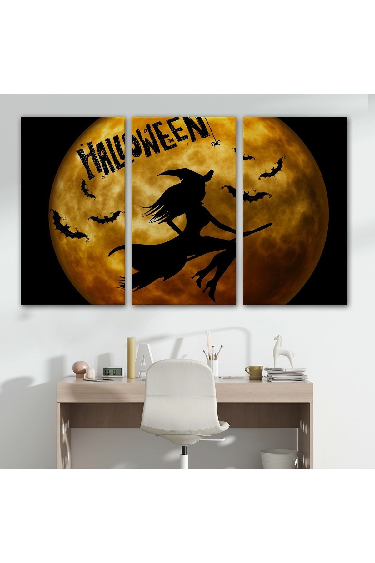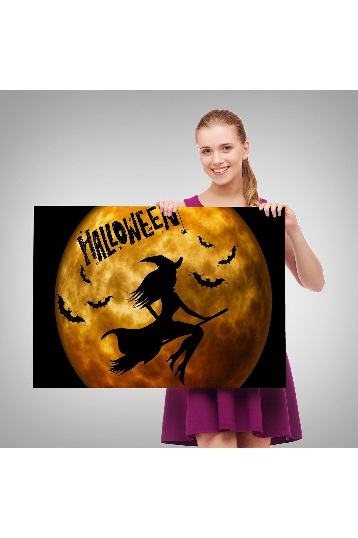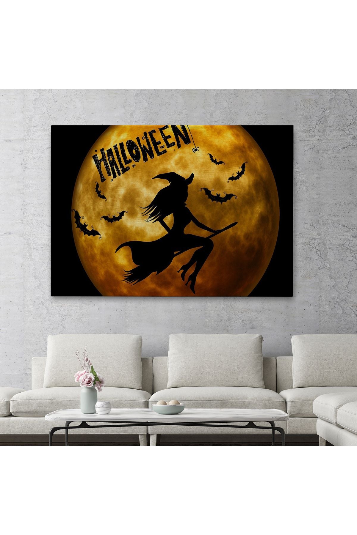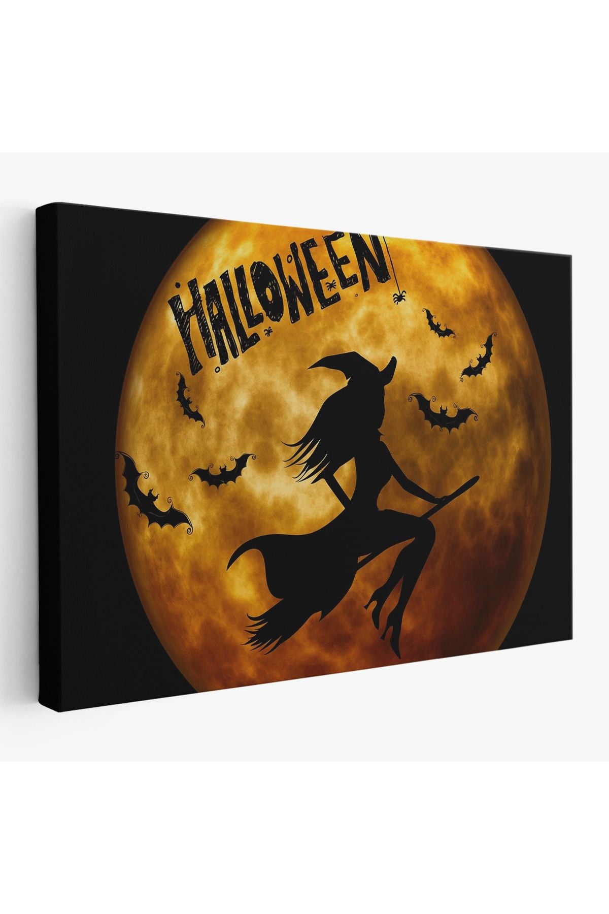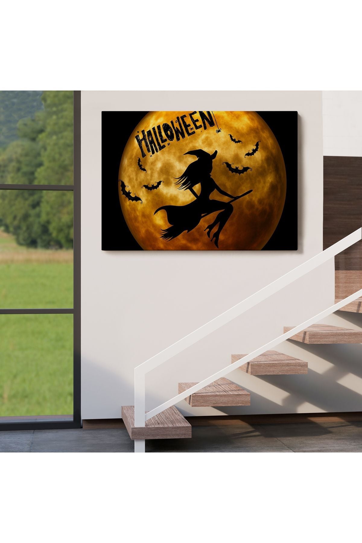 Dekoratif Kanvas Tablo, Duvar Tablosu-Cadılar Bayramı Süpürgedeki Uçan Cadı 5200