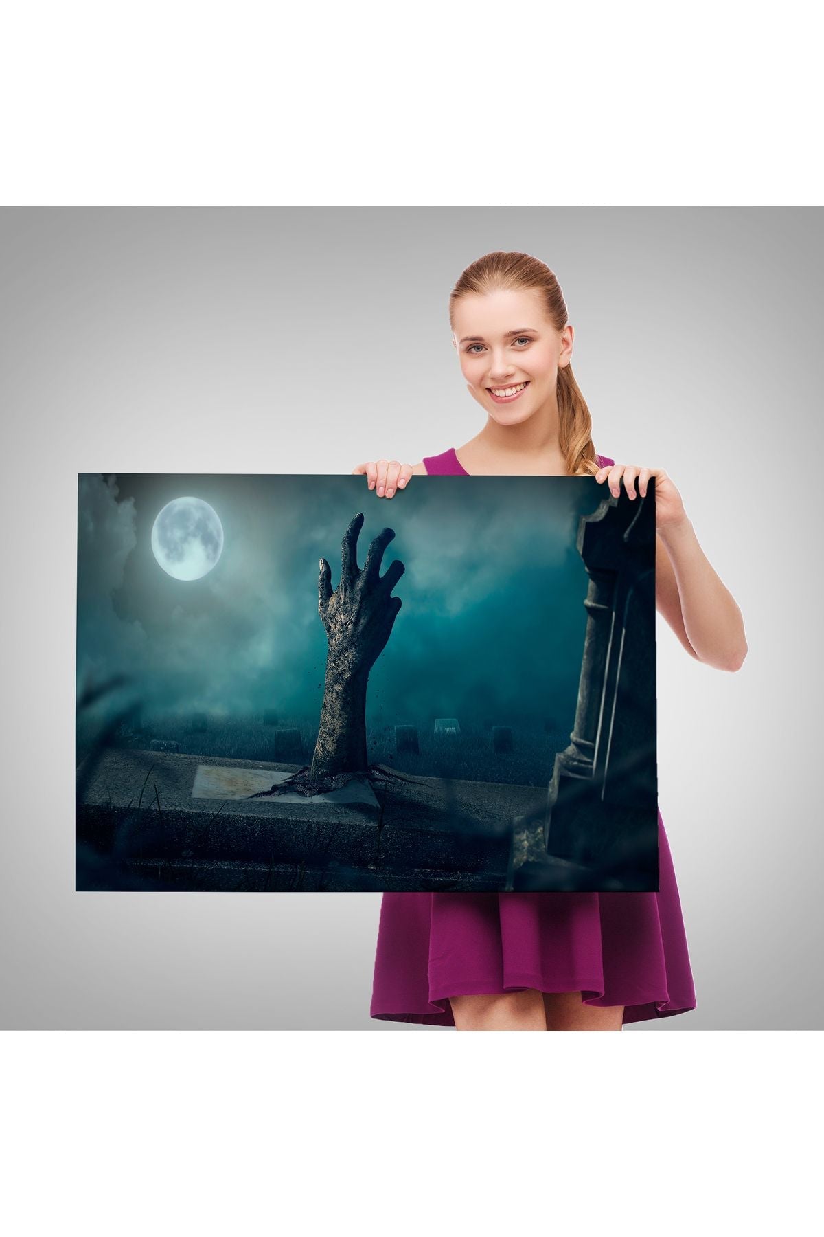 Mezarlık Dirilmiş El Cadılar Bayramı Mezardan Çıkan El Dekoratif Duvar Tablosu-5204