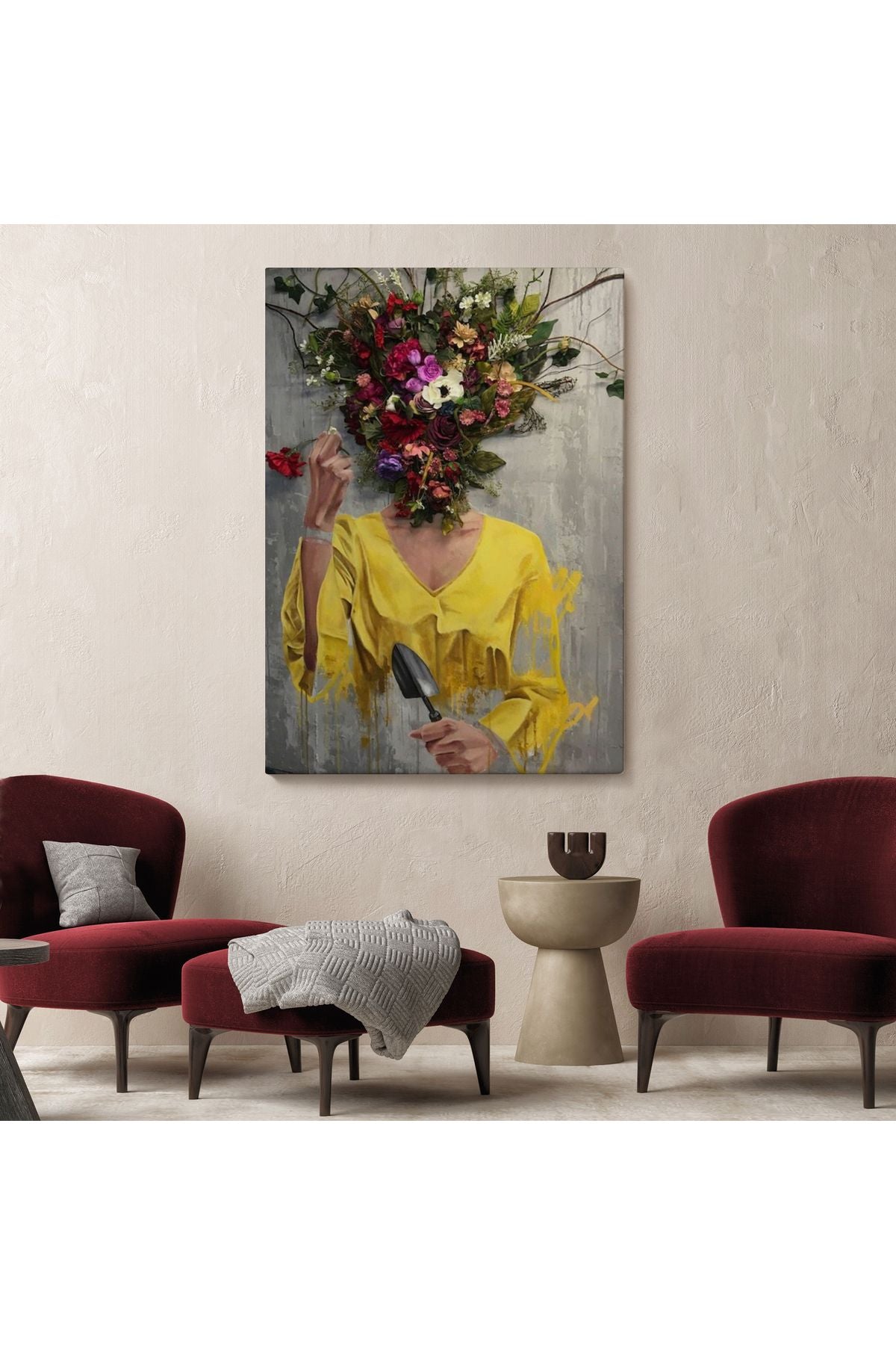 Çiçek Başlı Kadın Kanvas Tablo-5231