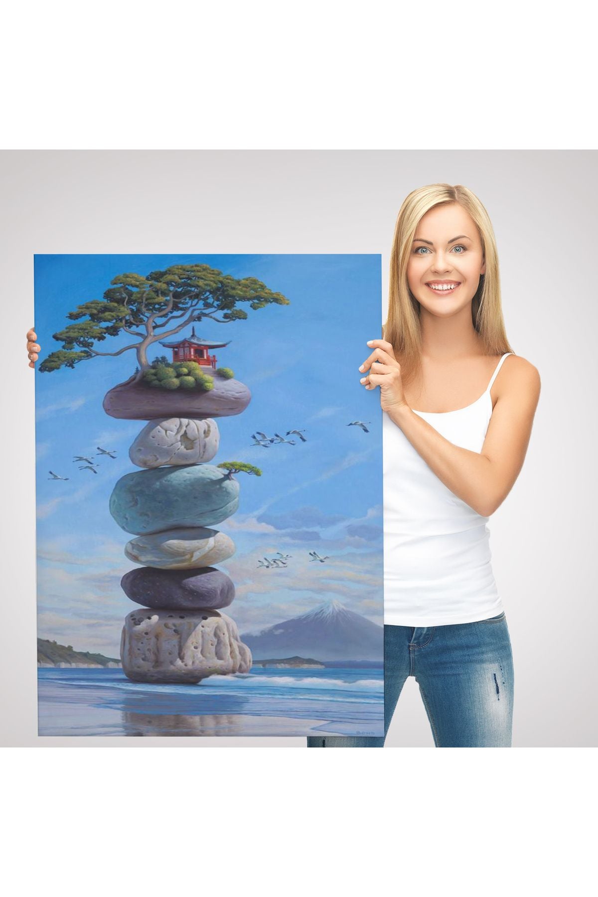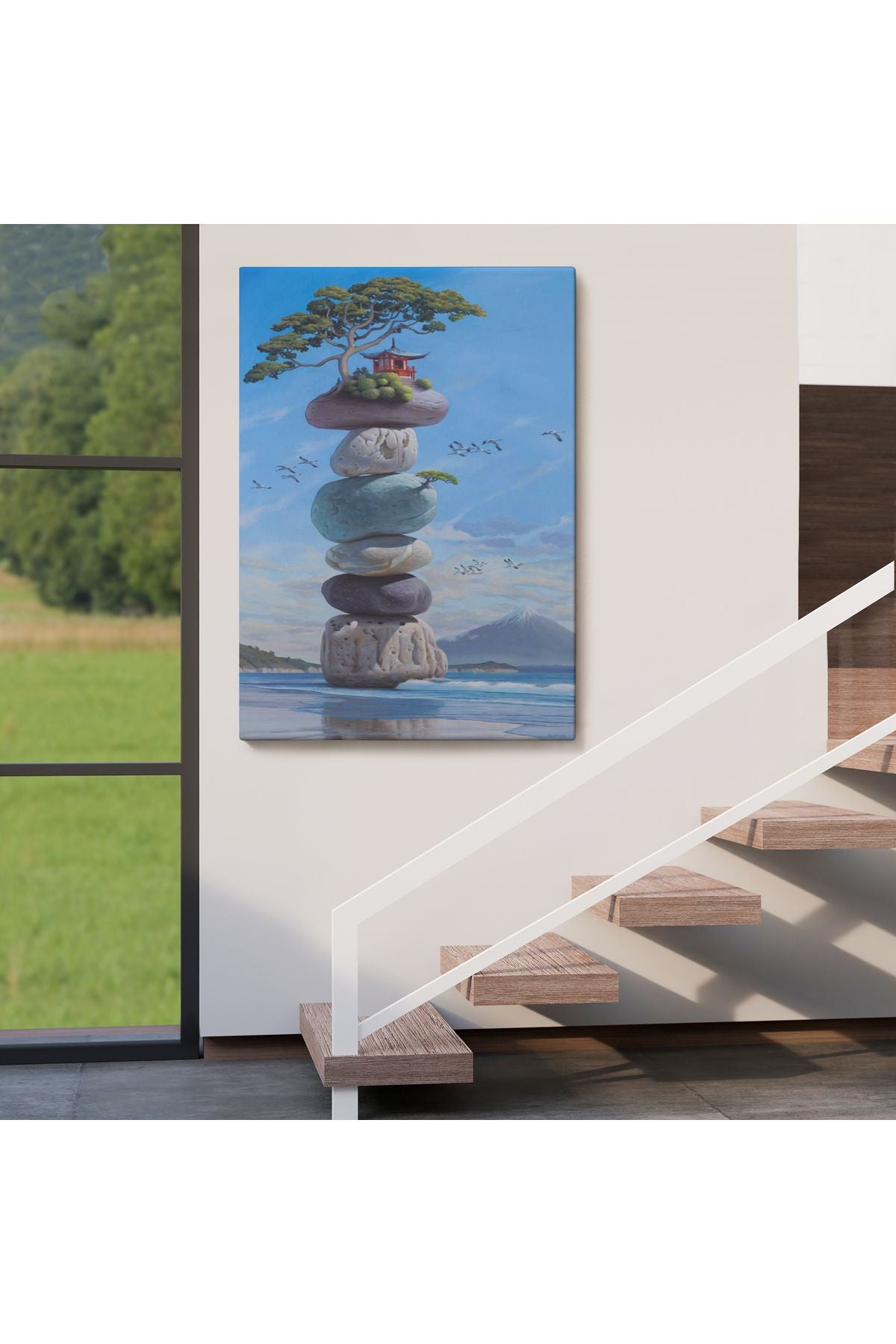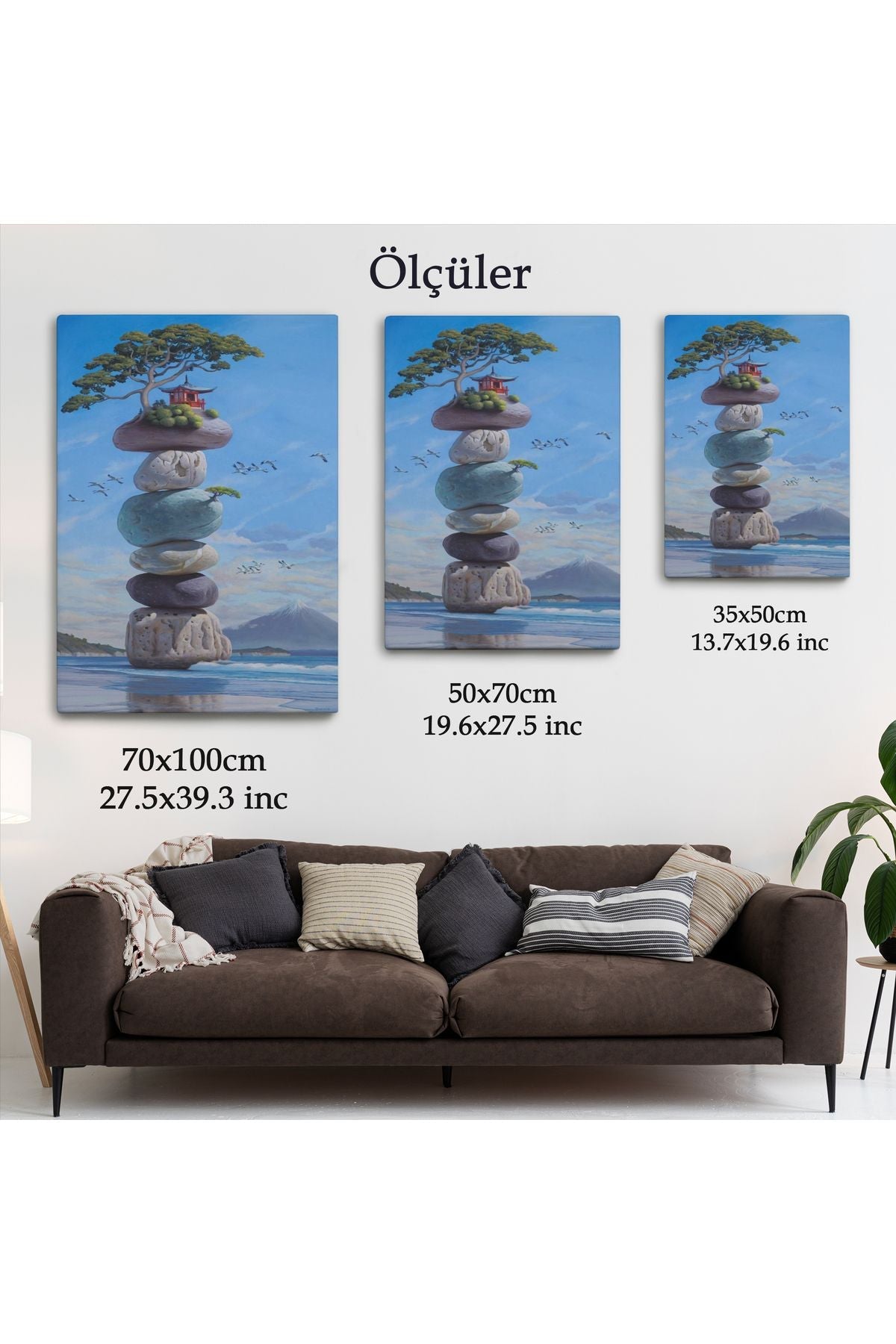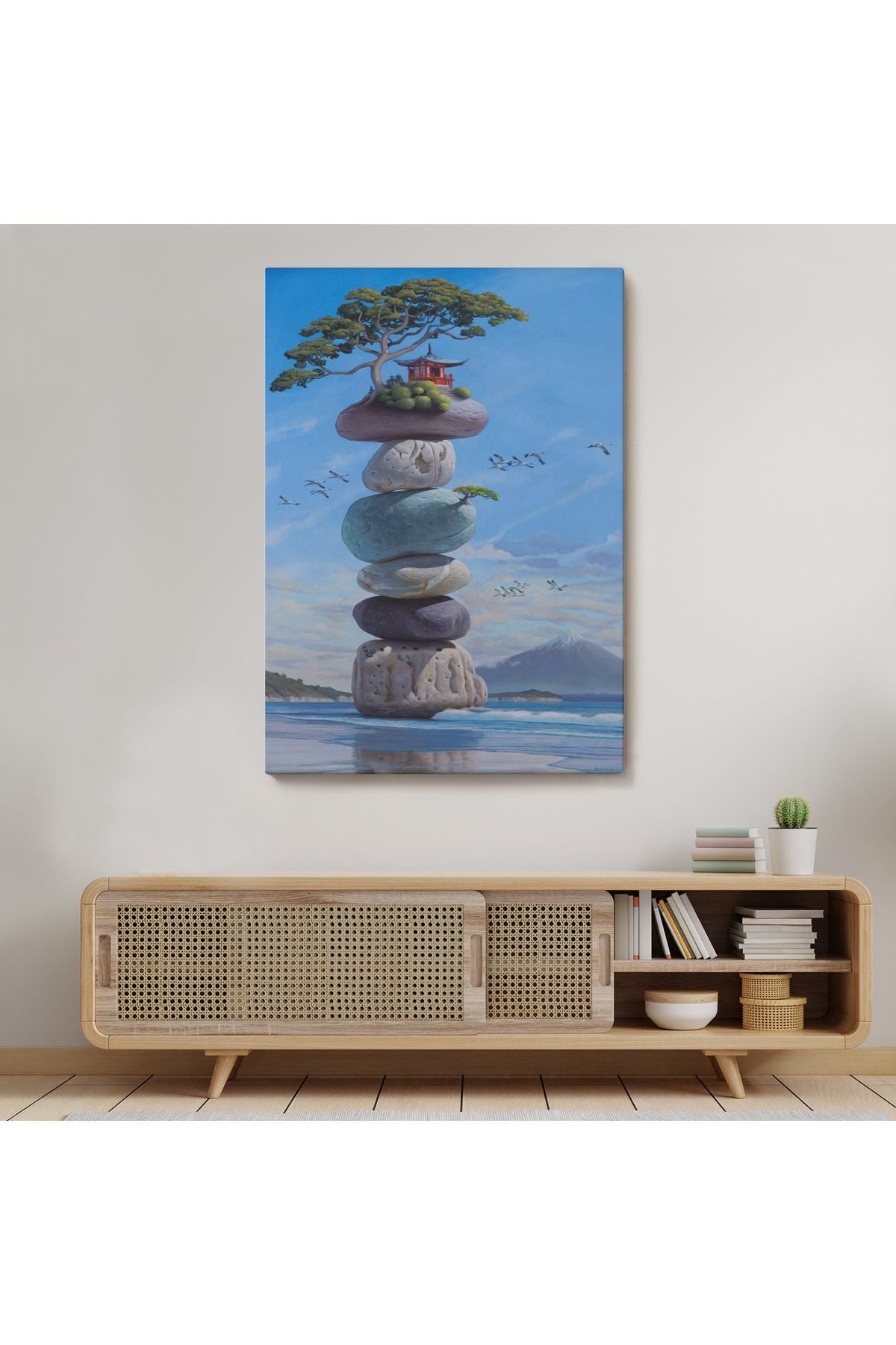 Sahilde Renkli Denge Taşları, Meditasyon, Yoga, Spiritüel Baskı Kanvas Tablo-5239