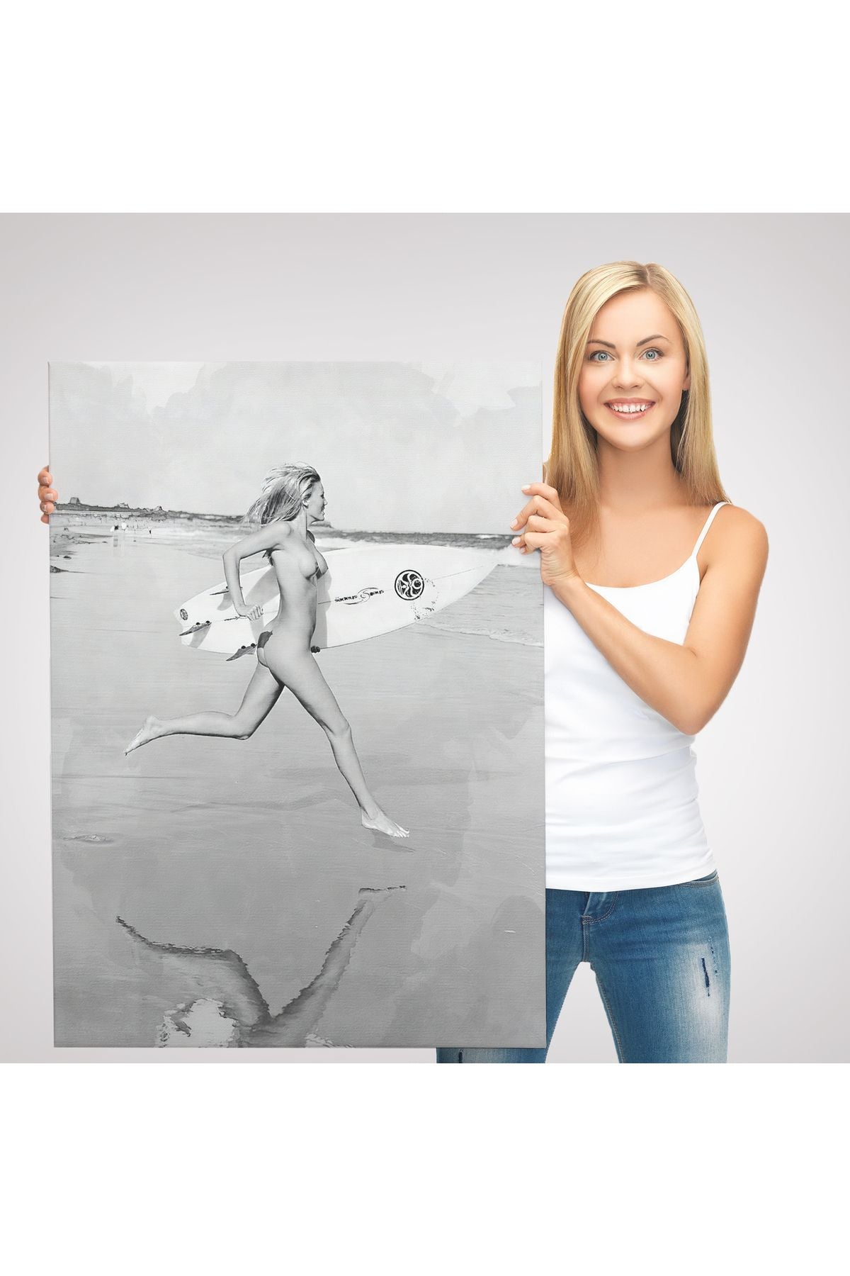 Çıplak Sörfçü Kadın Kanvas Tablo-5240