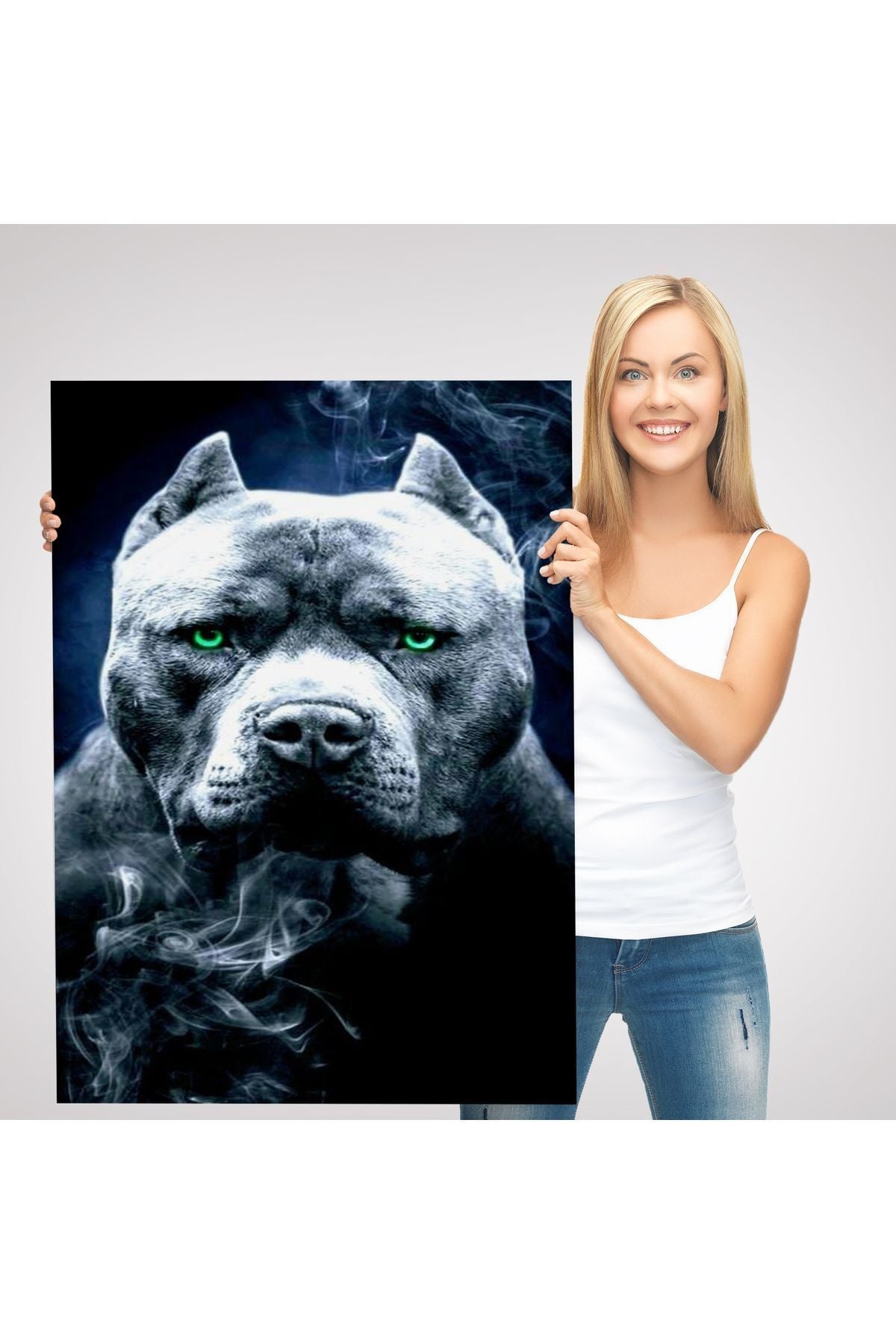 Pit Bull Yeşil Gözlü Amerikan Bully Köpek Kanvas Tablo-5259