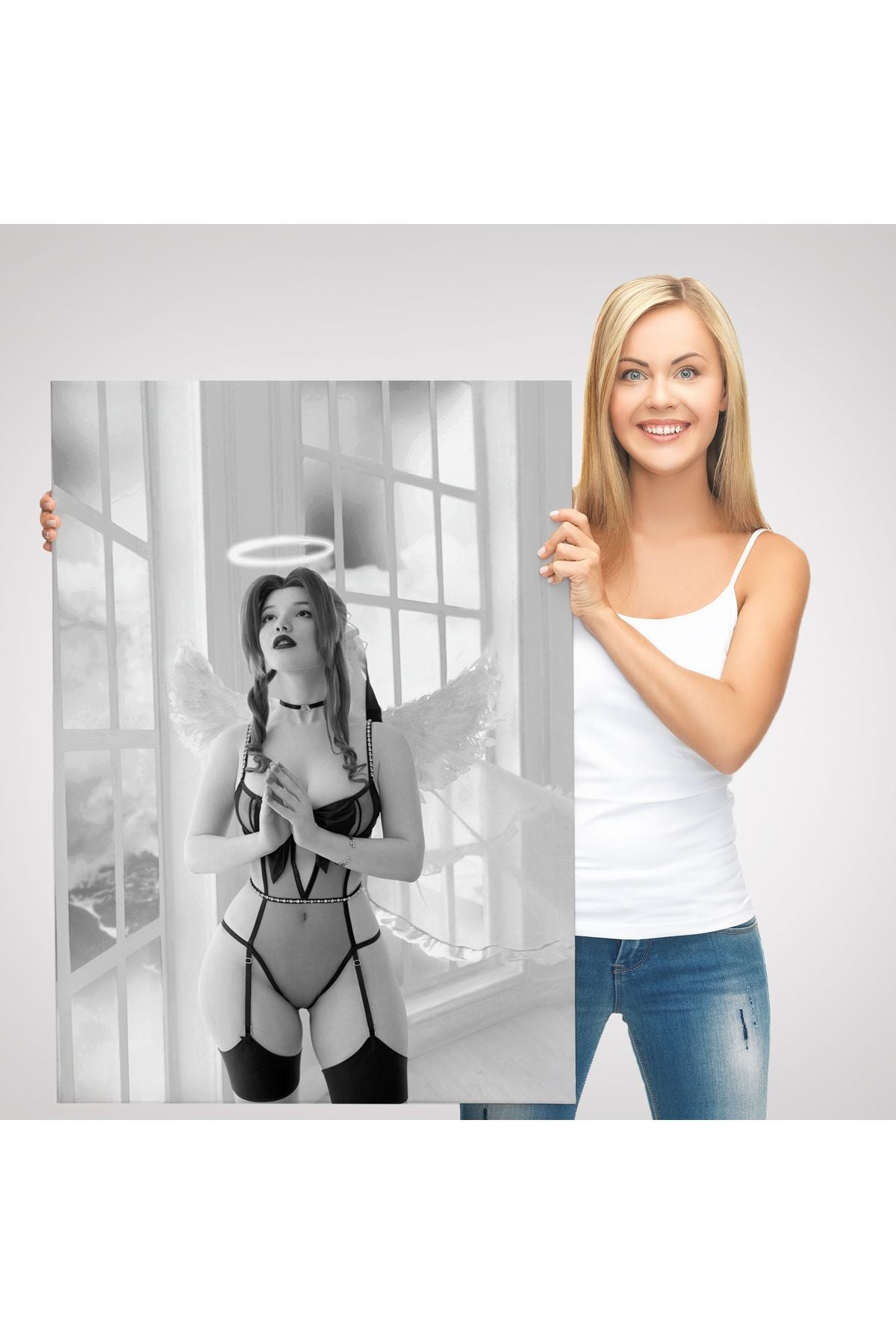 Siyah Beyaz Melek Kız Dekoratif Kanvas Tablo-5266B