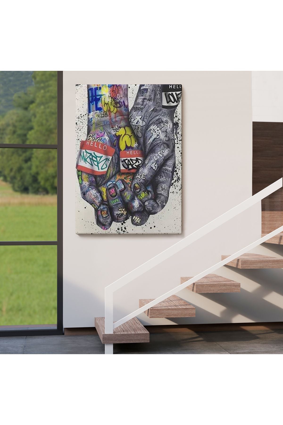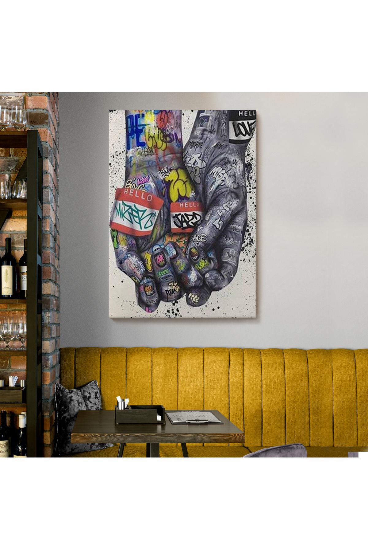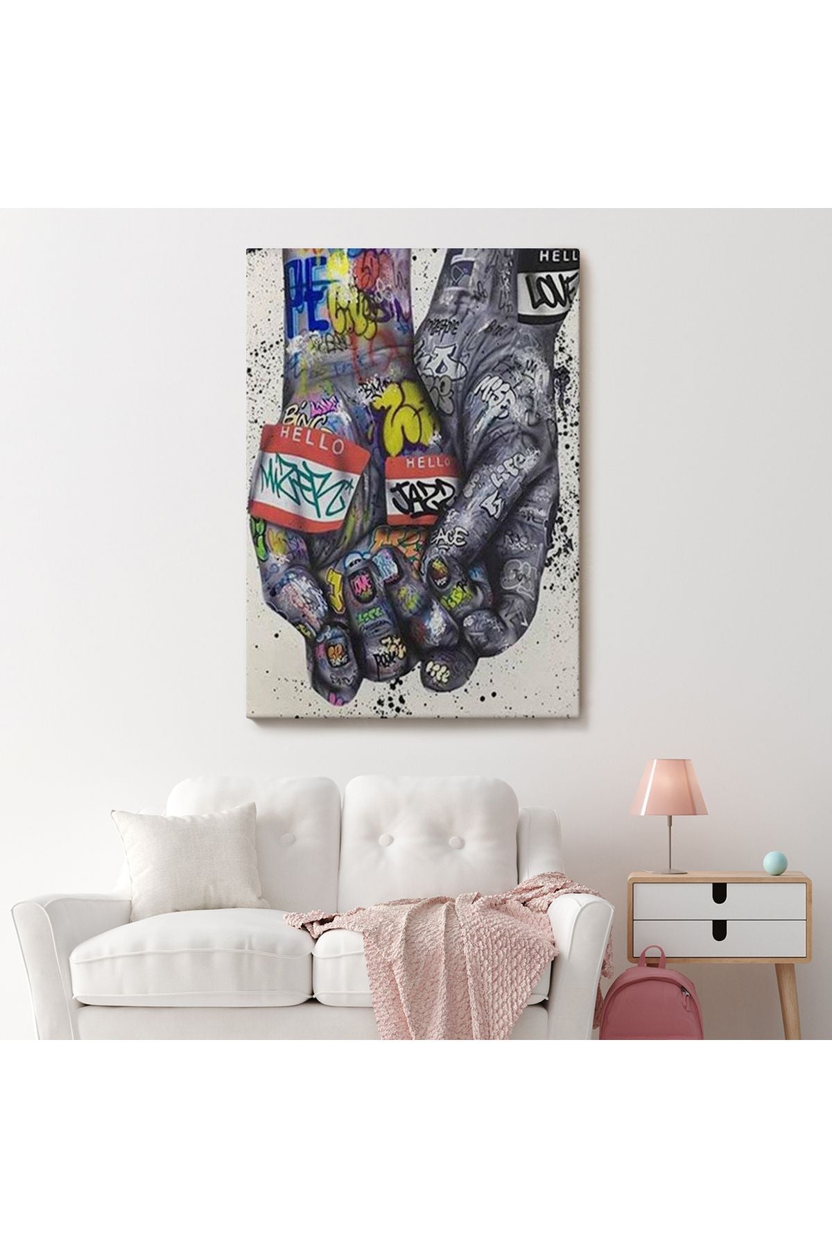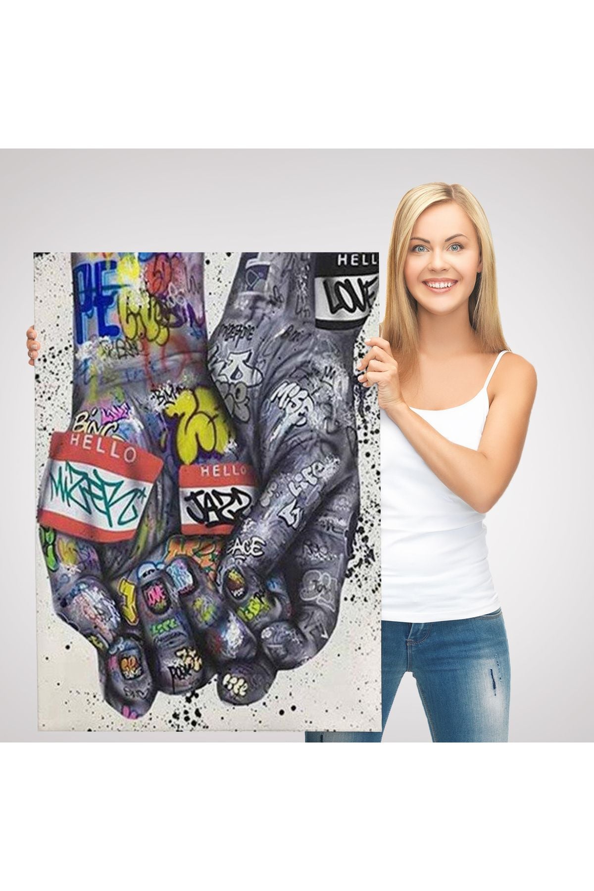 Banksy Tarzı Kanvas Duvar Sanatı, Graffiti El Duvar Posteri Kanvas Tablo-5311
