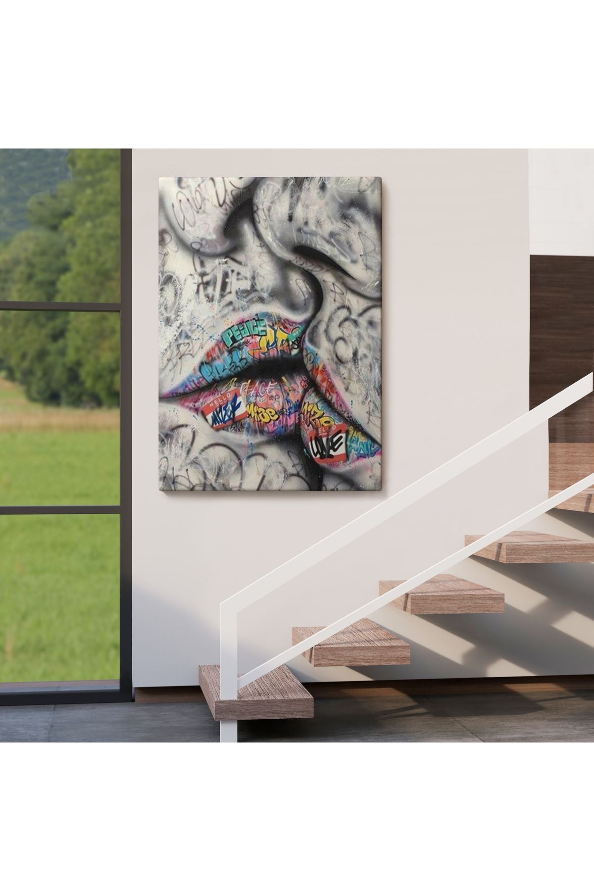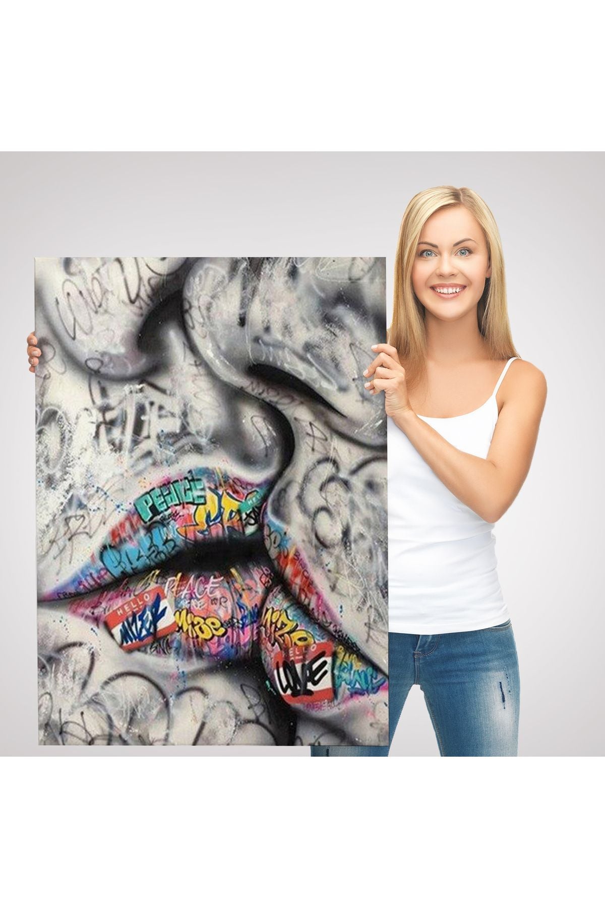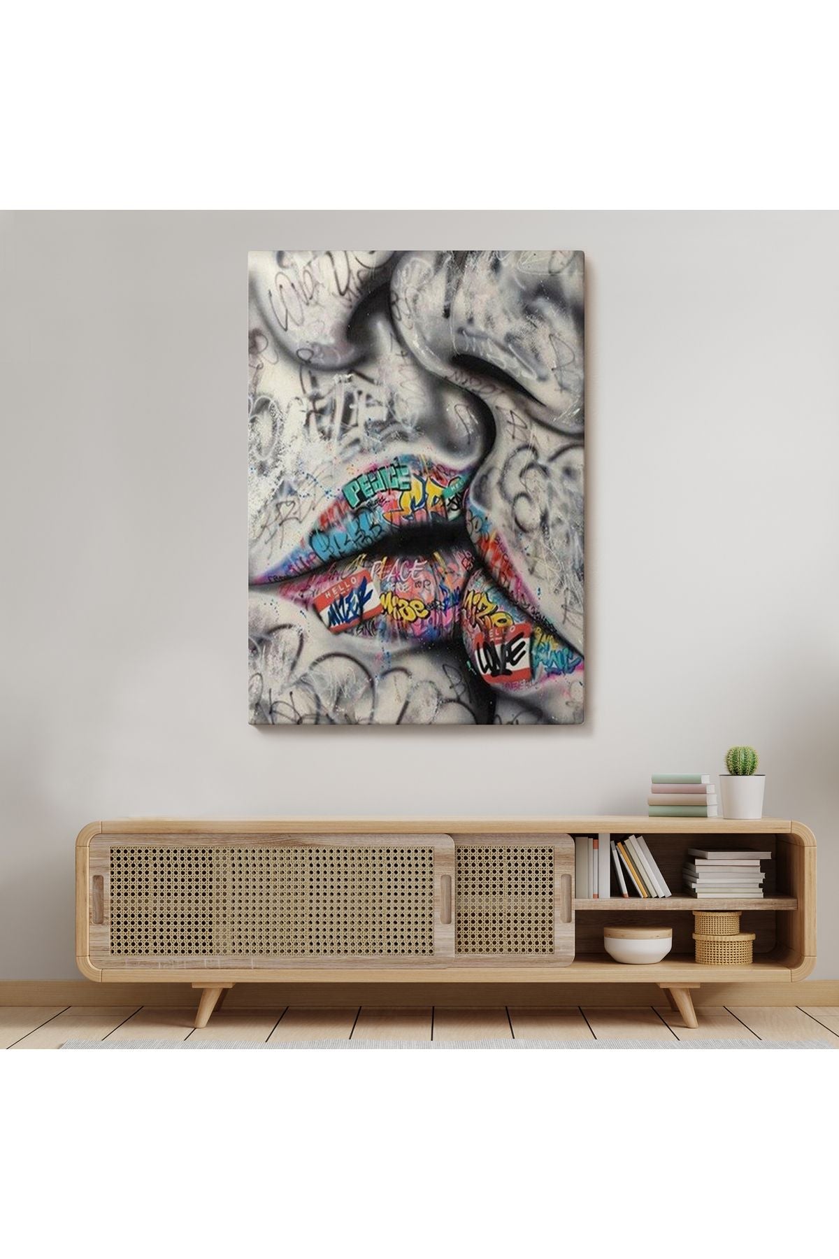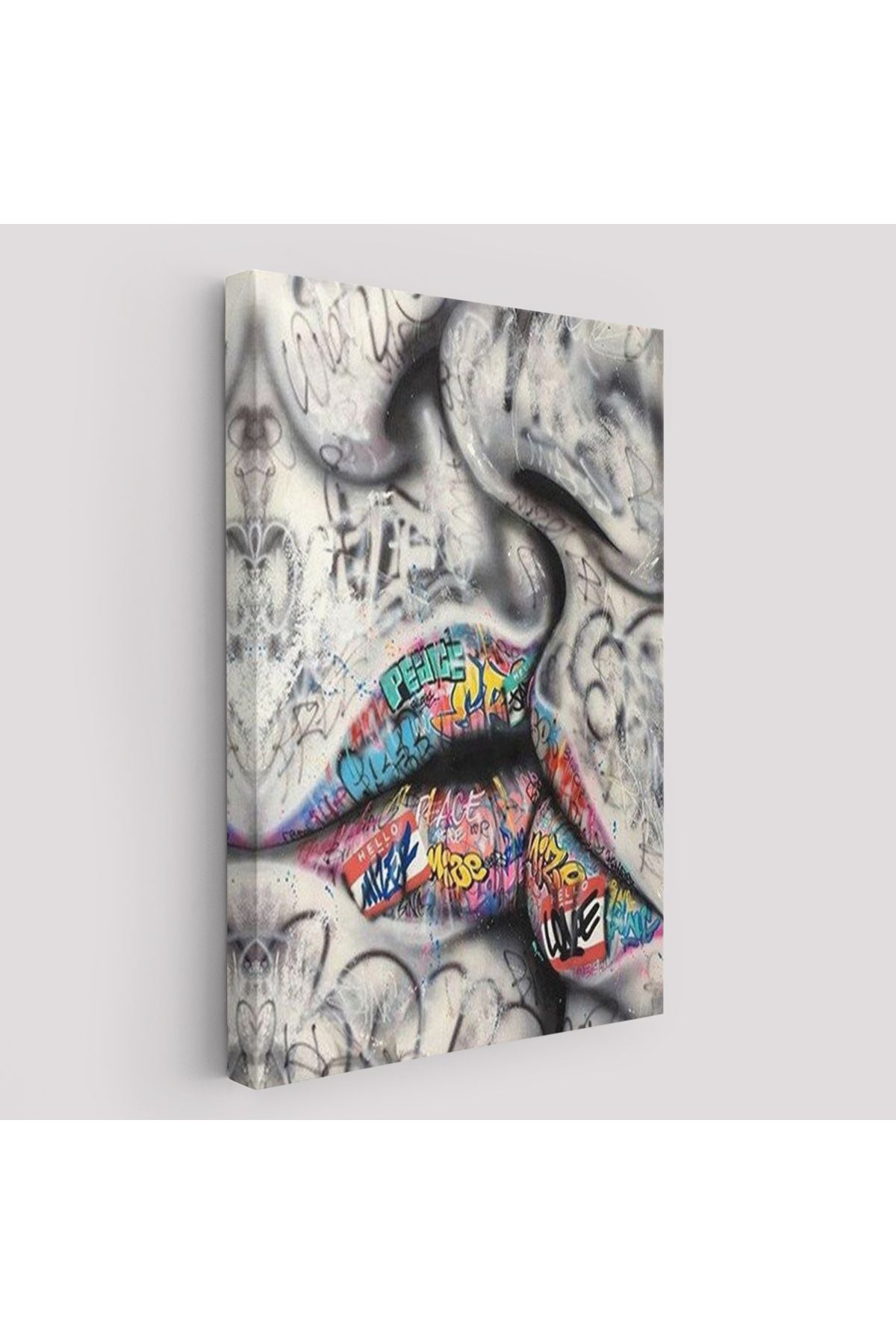 Öpüşme Kanvas Duvar Sanatı, Öpüşme Banksy Tarzı Graffiti Sokak Kanvas Tablo-5313