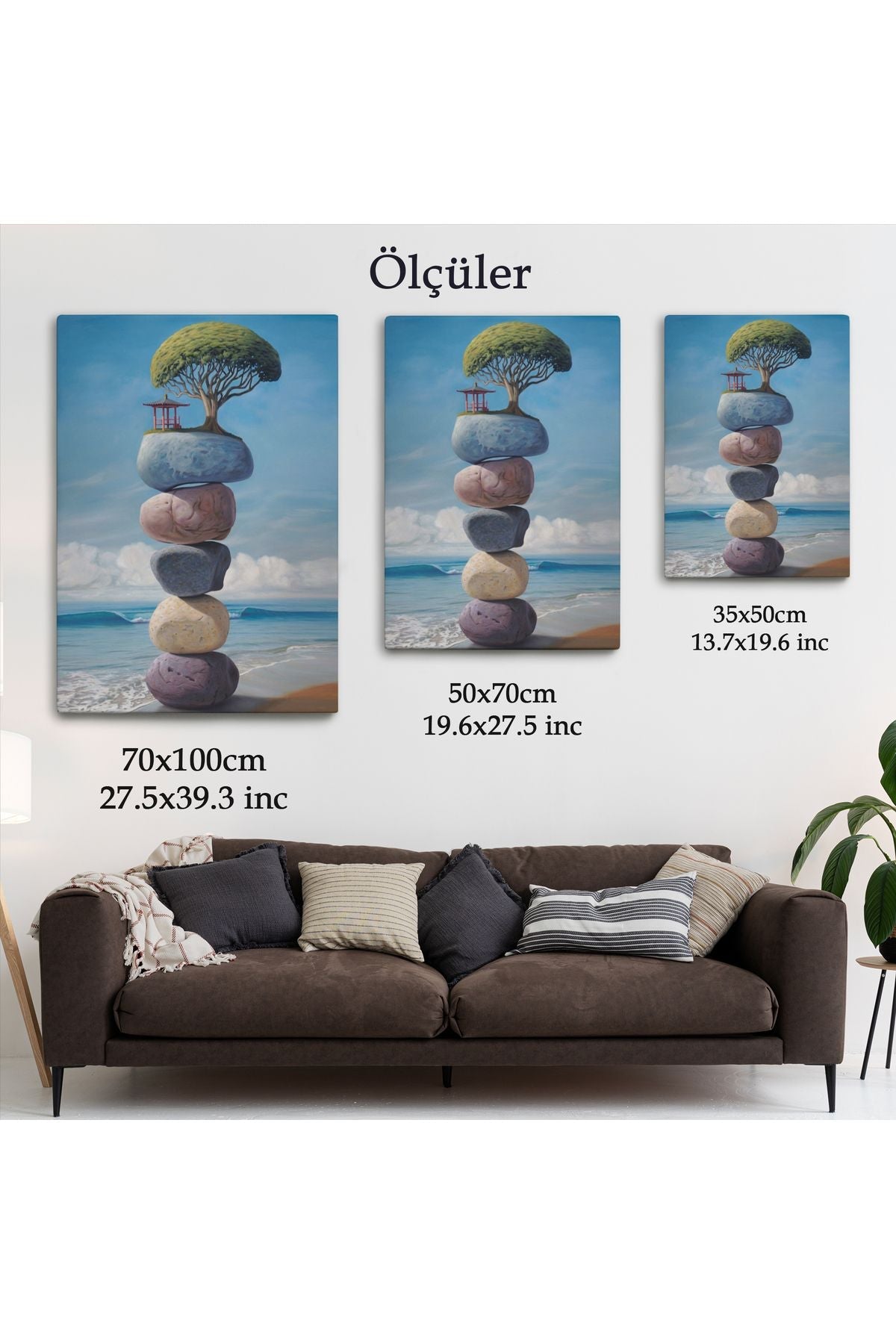 Sahilde Renkli Denge Taşları Kanvas Tablo, Terapi, Meditasyon, Yoga Baskısı-5322
