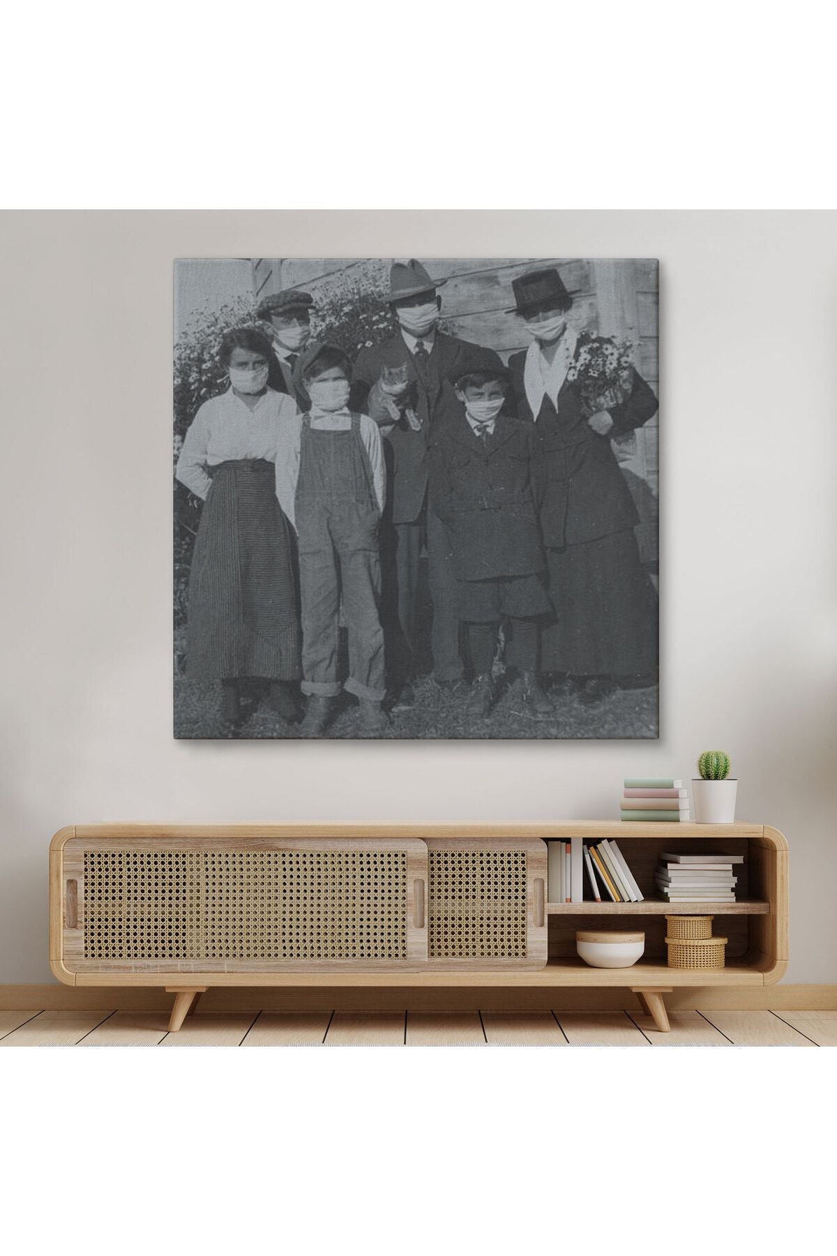 1918 İspanyol Gribi Krizi, Maskeli Kedi, Kanvas Tablo-5328