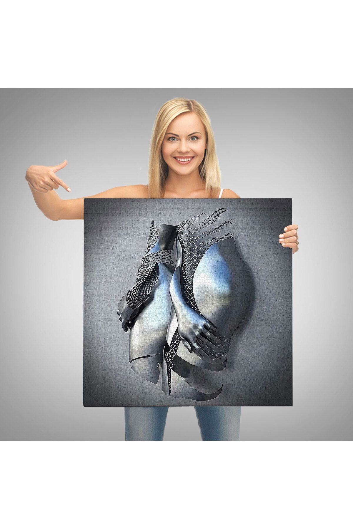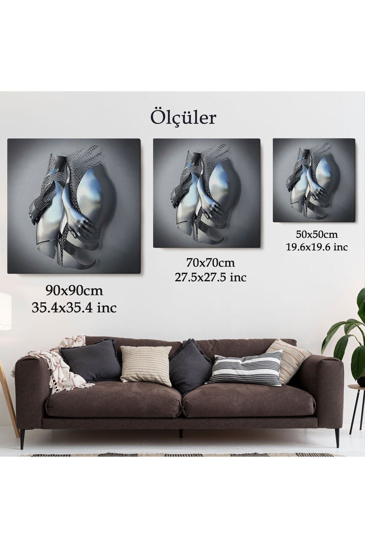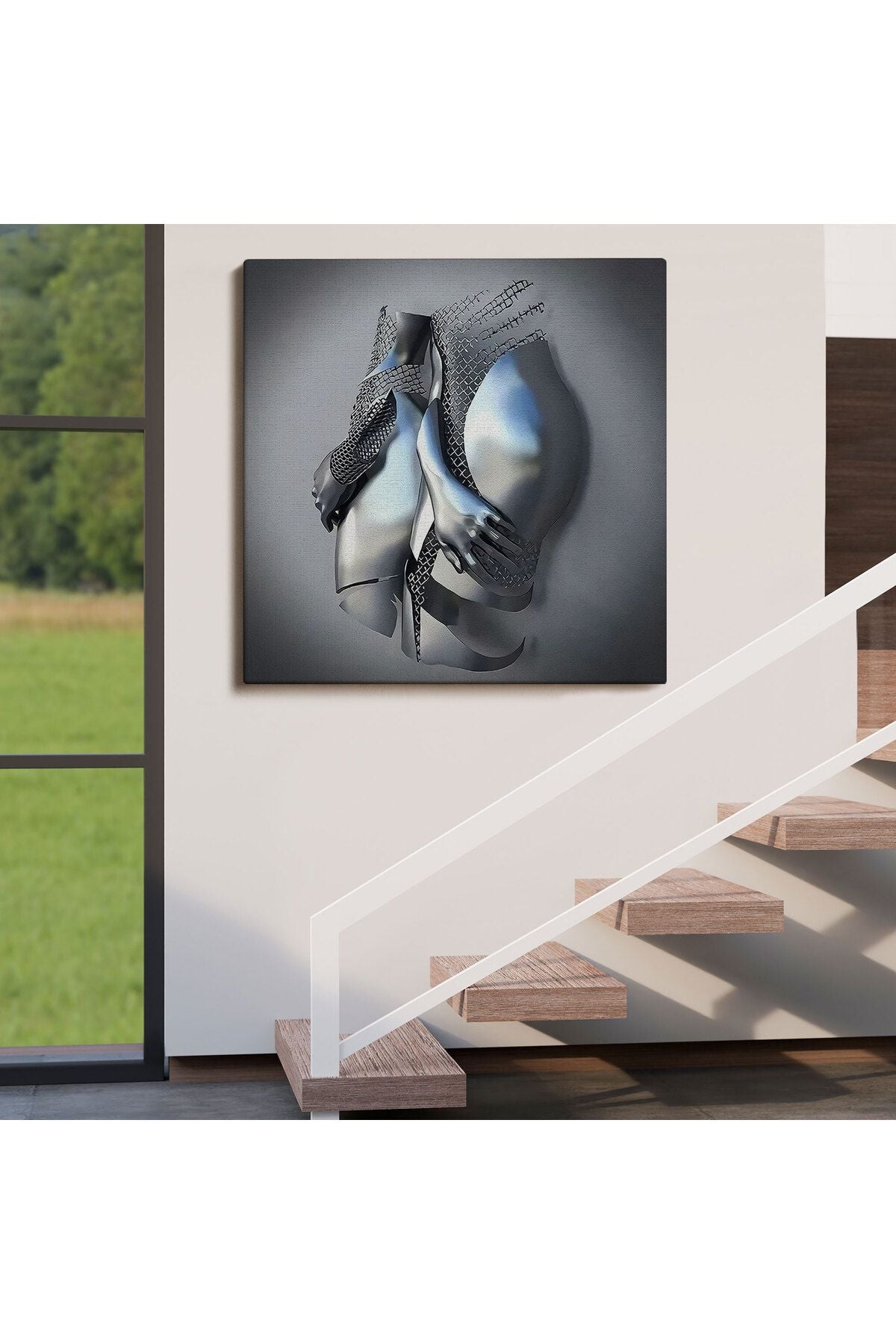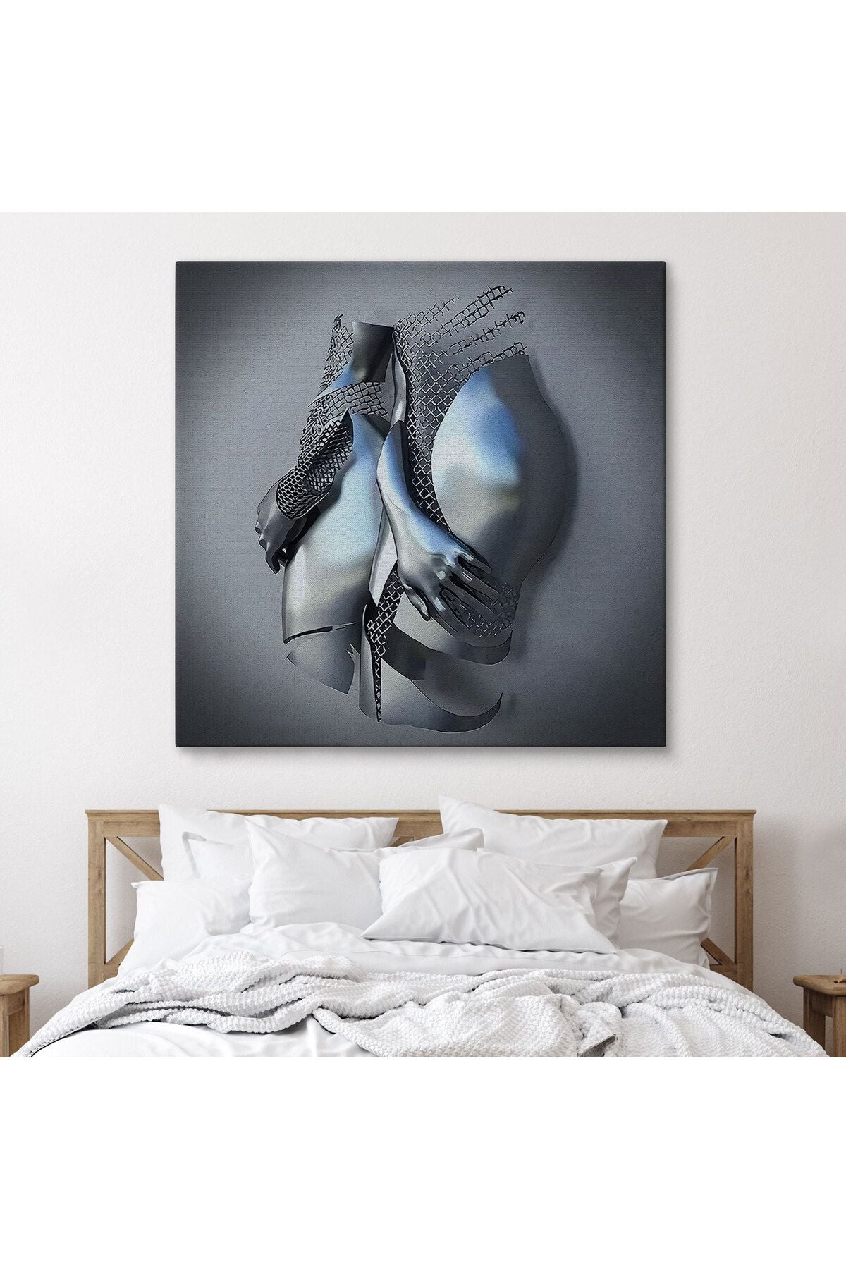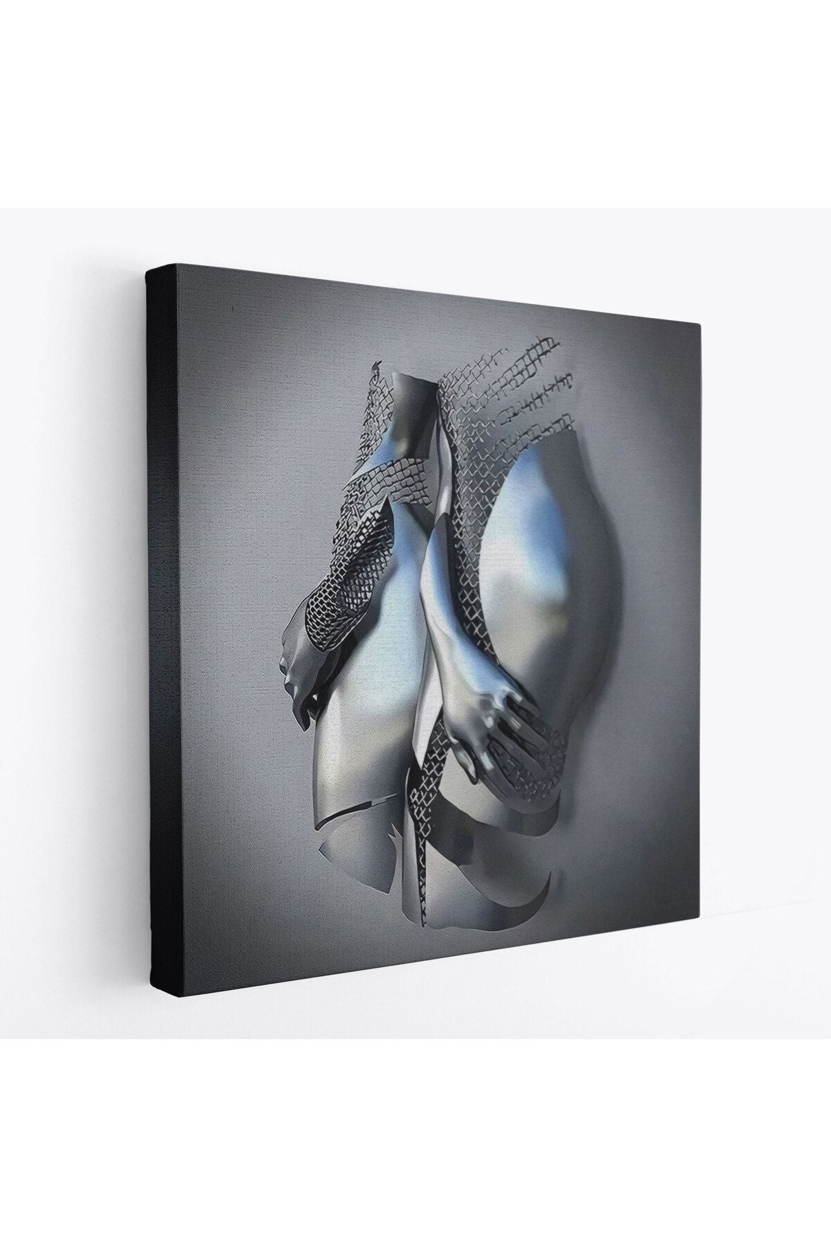 Romantik Beden, 3D Efekti Gri ve Gümüş İnsan Metalik Kanvas Tablo-5359