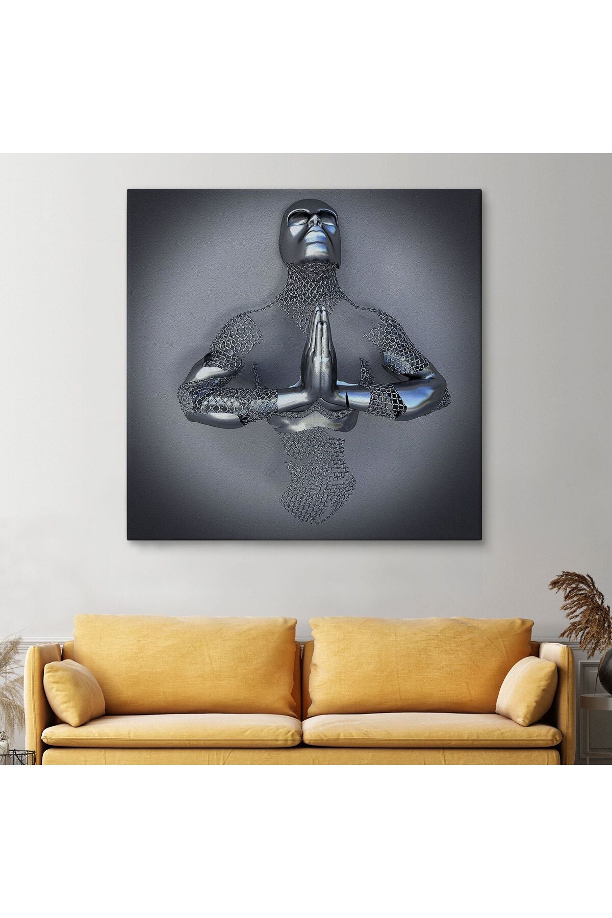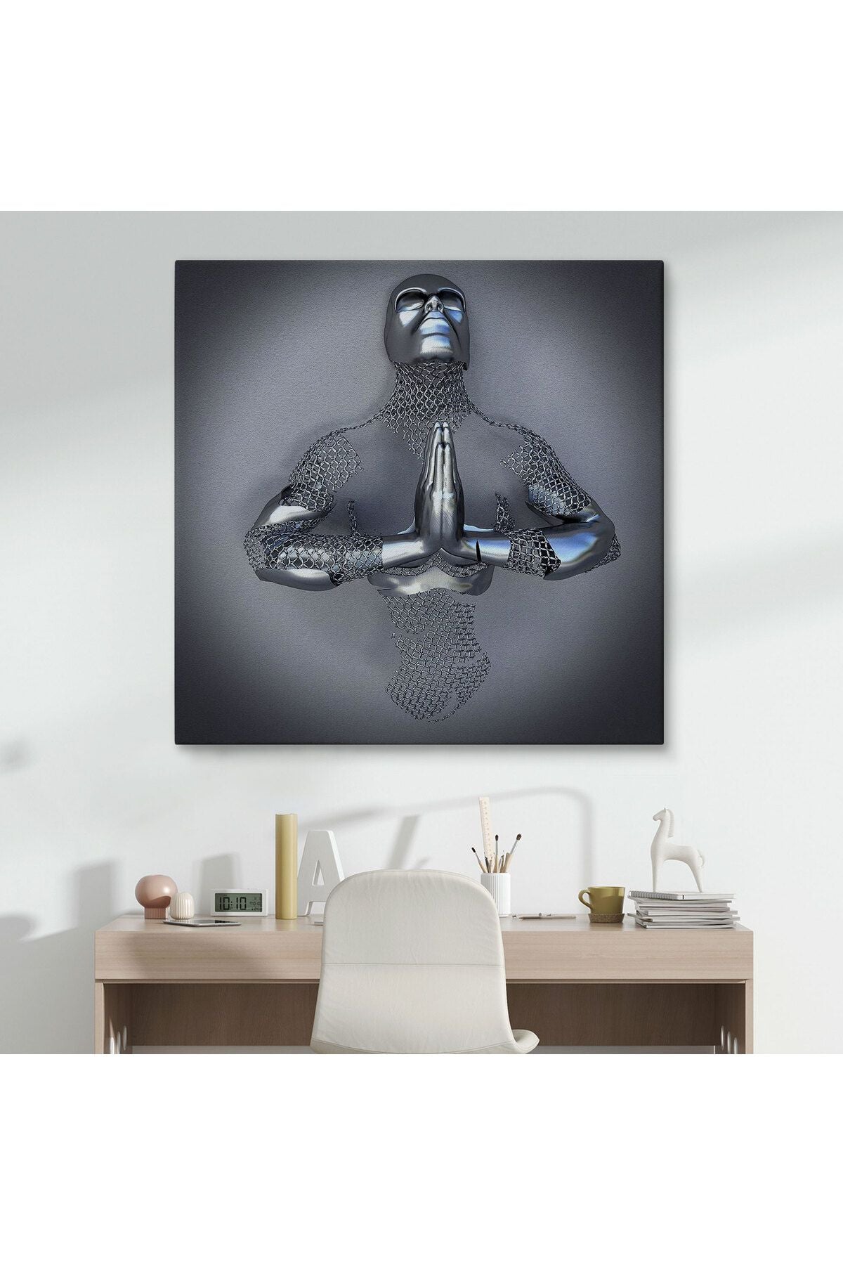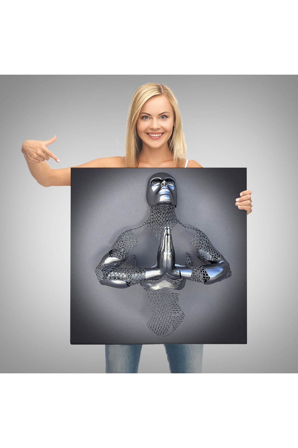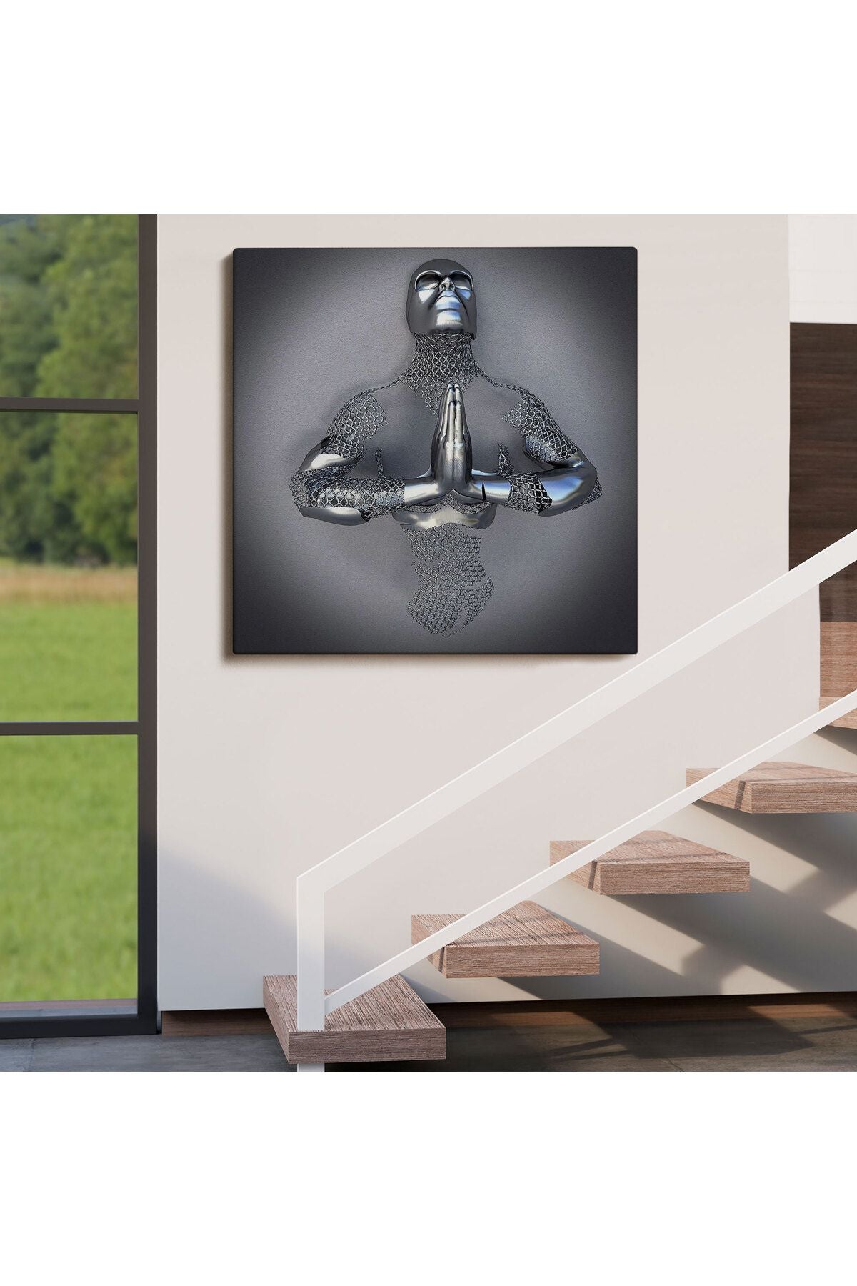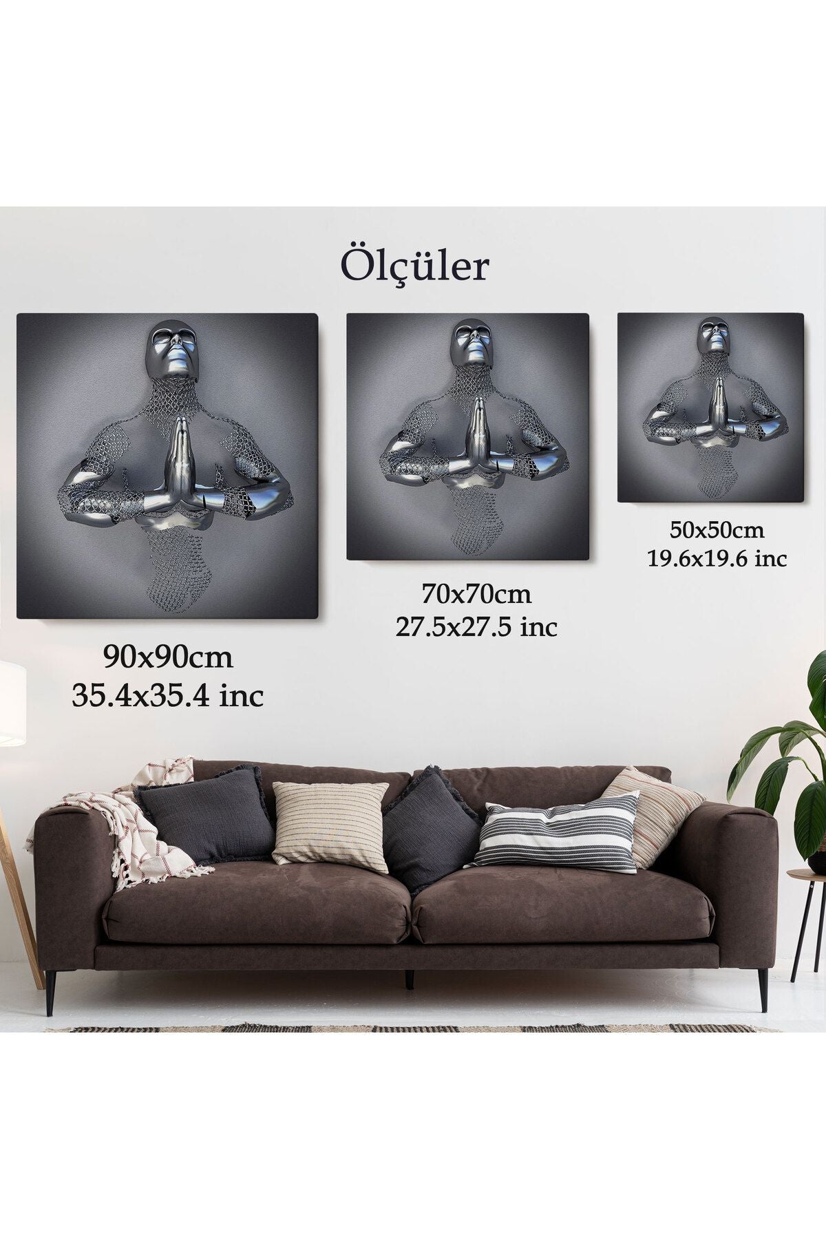 Aşk Sanatı, 3D Gri ve Gümüş Metalik Efektli Kanvas Tablo-5360