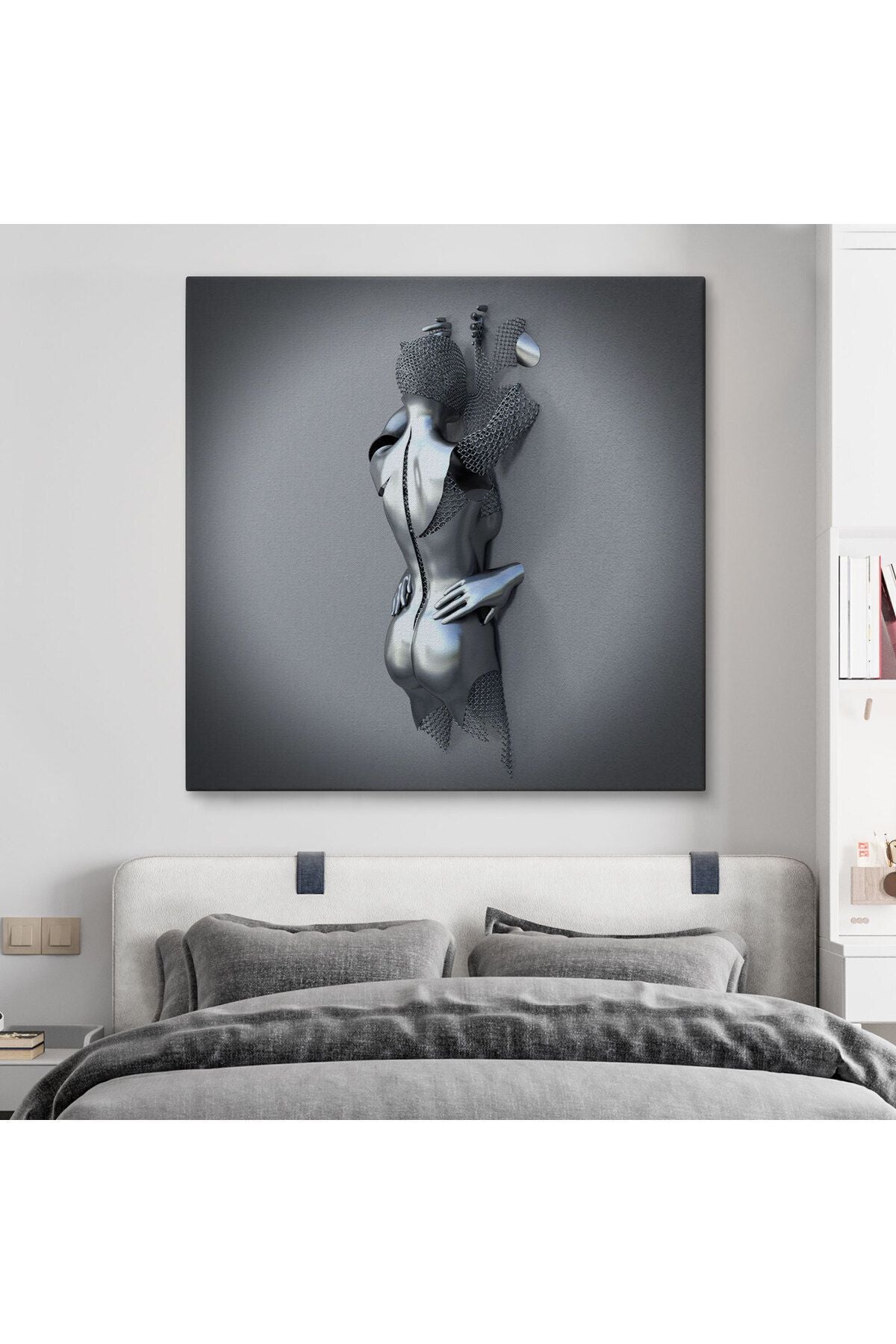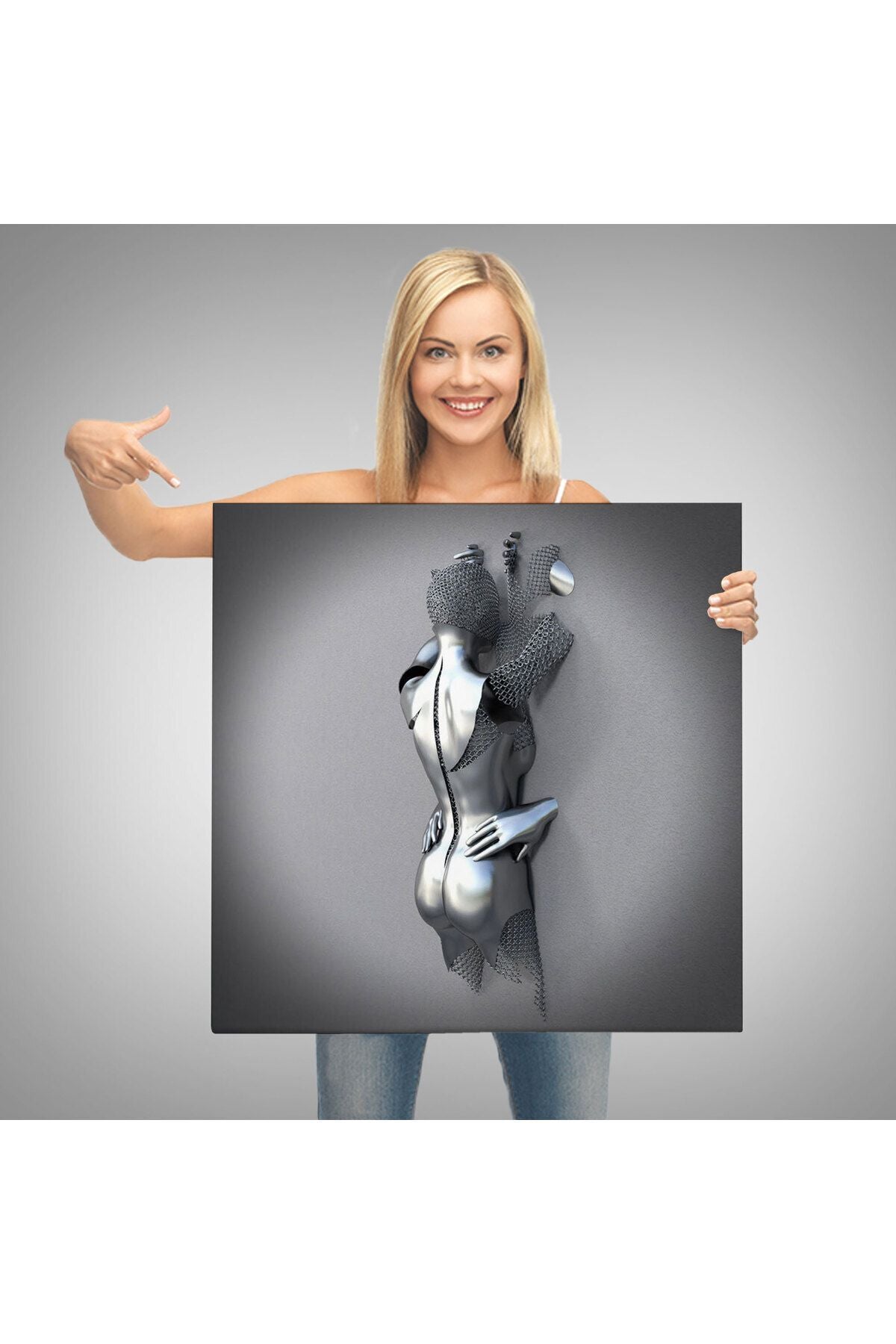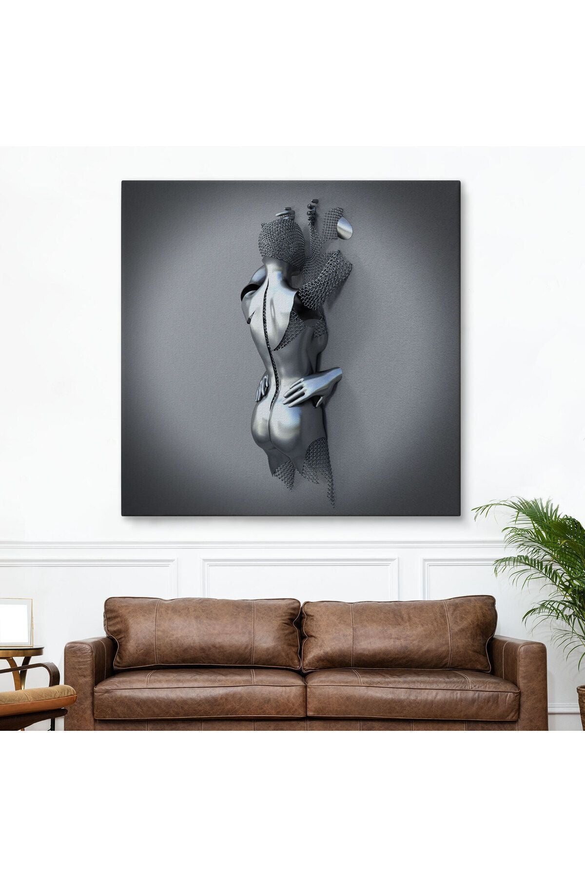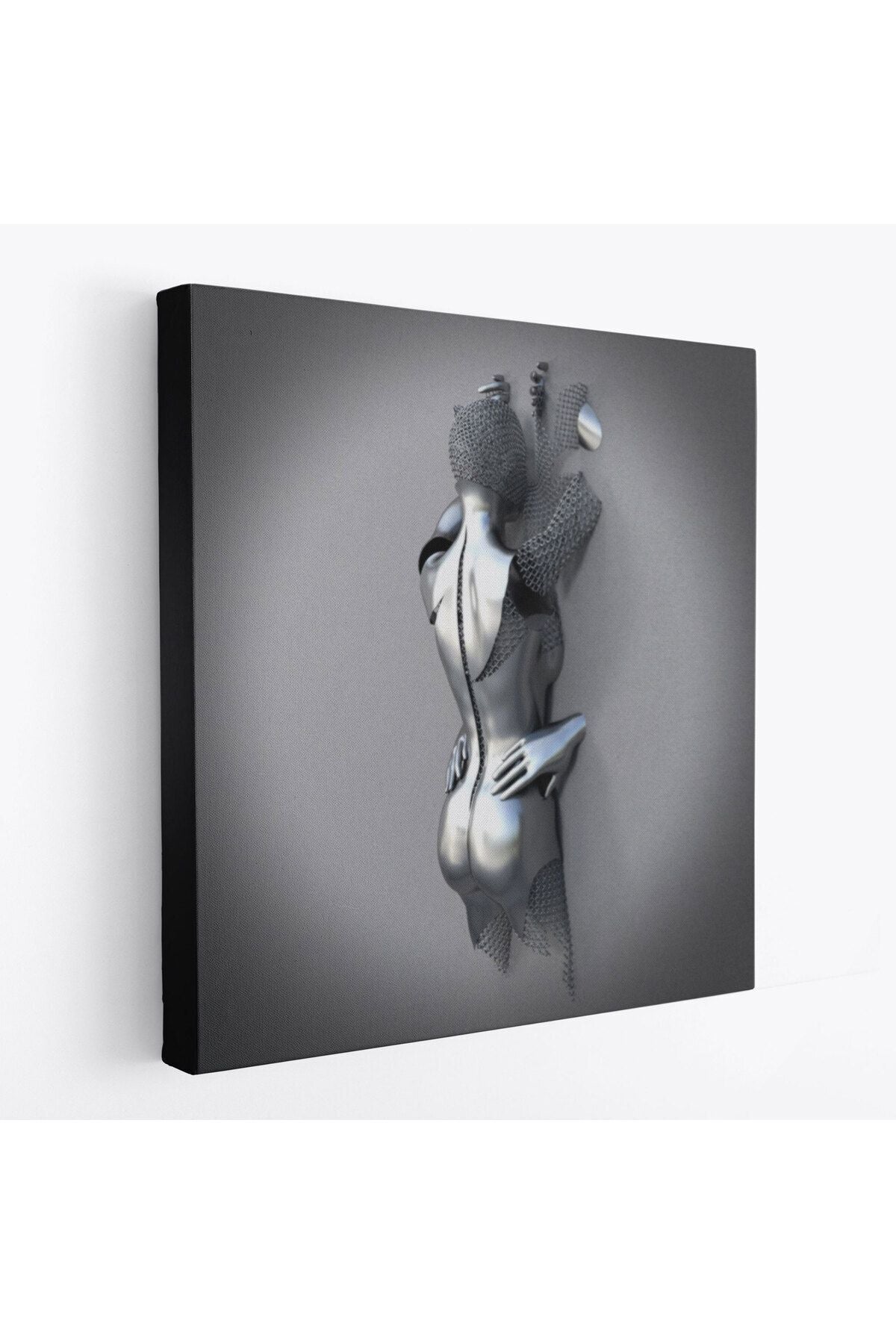 Aşk Sanatı, Gri ve Gümüş 3D Metalik Efektli Kanvas Tablo-5362