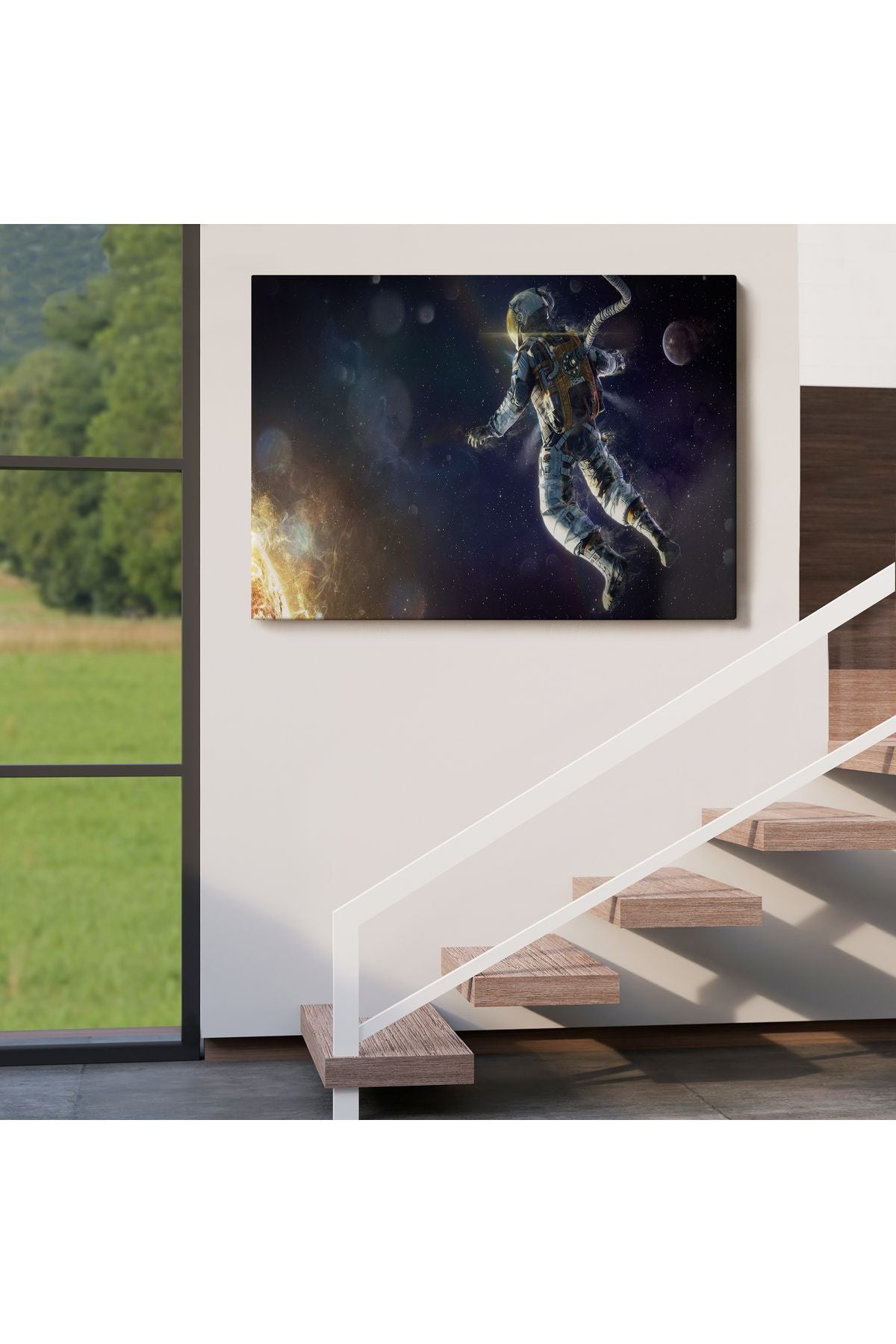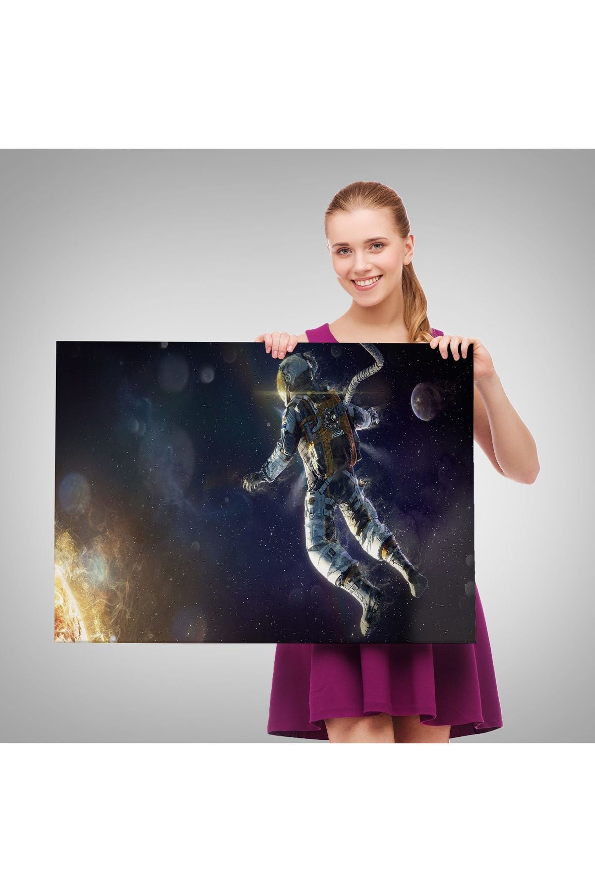 Astronot Duvar SanatıKanvas Tablo, Uzay Posteri, Astronot Uzayda, Gezegen Arka Planı-5381