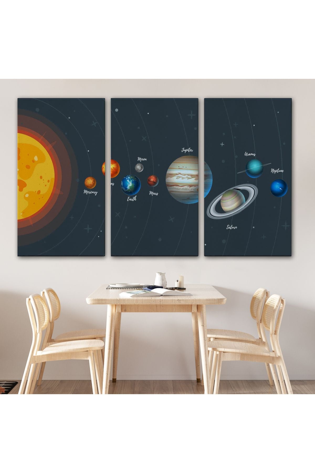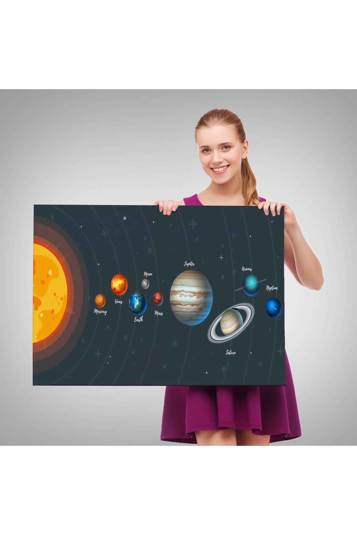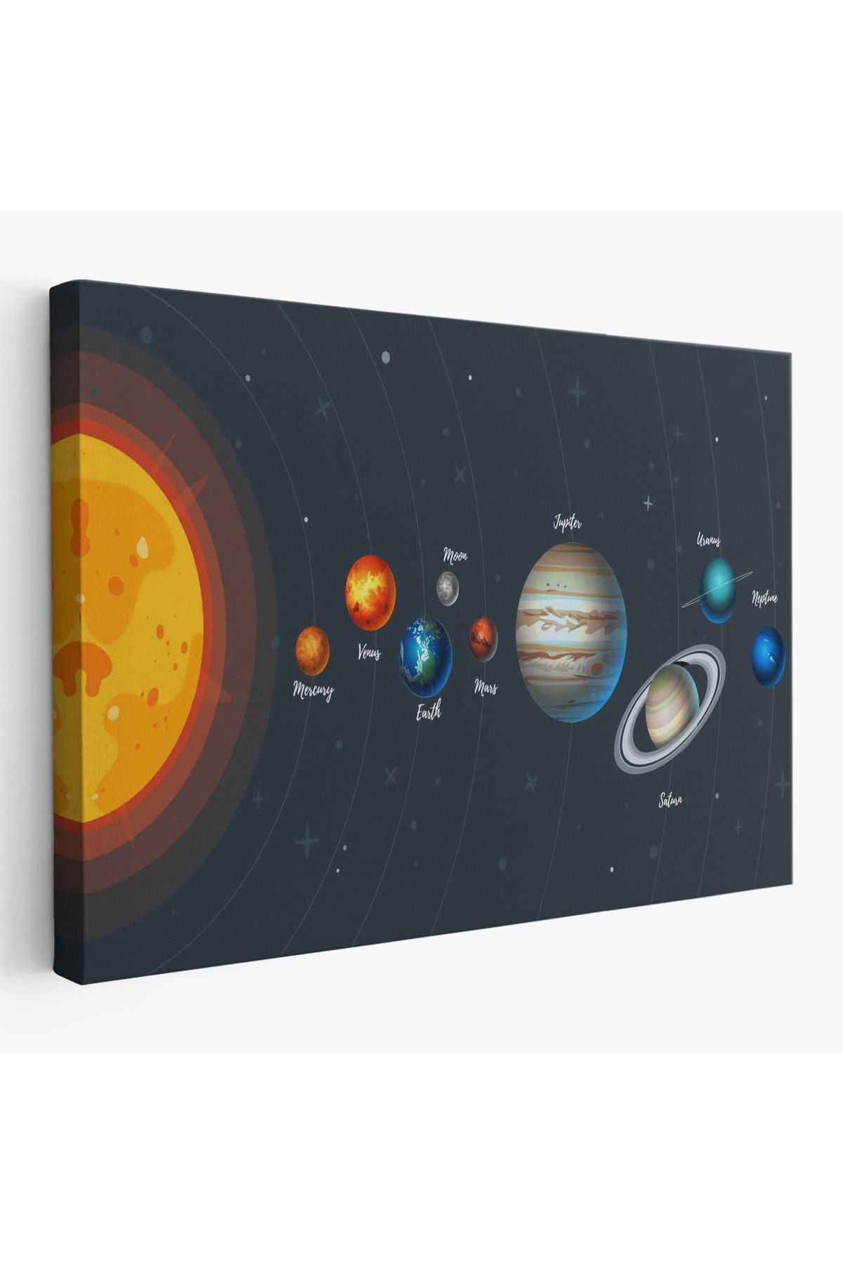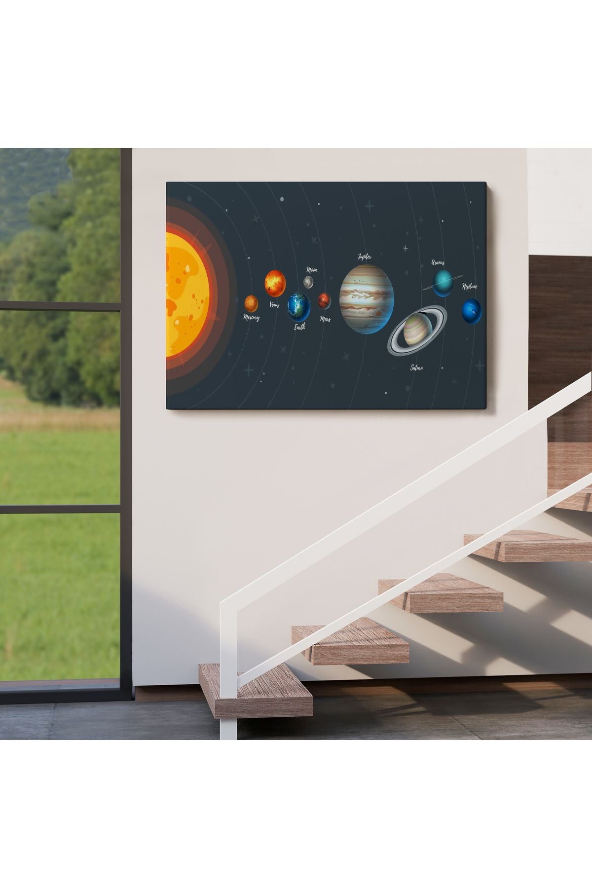 Güneş Sistemi ve Gezegenler Eğitici Kanvas Tablo, Eğitici Uzay Çocuk Odası Tablosu-5396