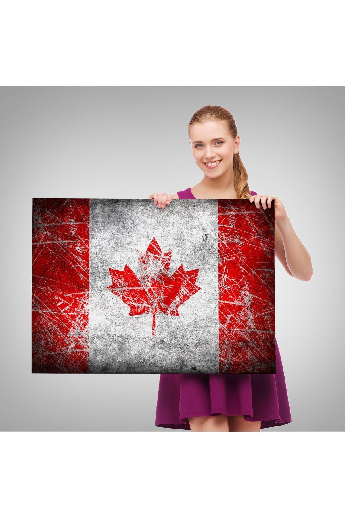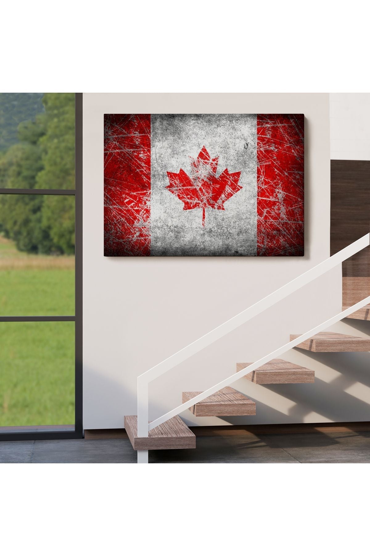 Kanada Bayrağı Rustik Kanvas Tablo, Kanada Bayrağı Tablo, Ev ve Ofis Dekoru-5403