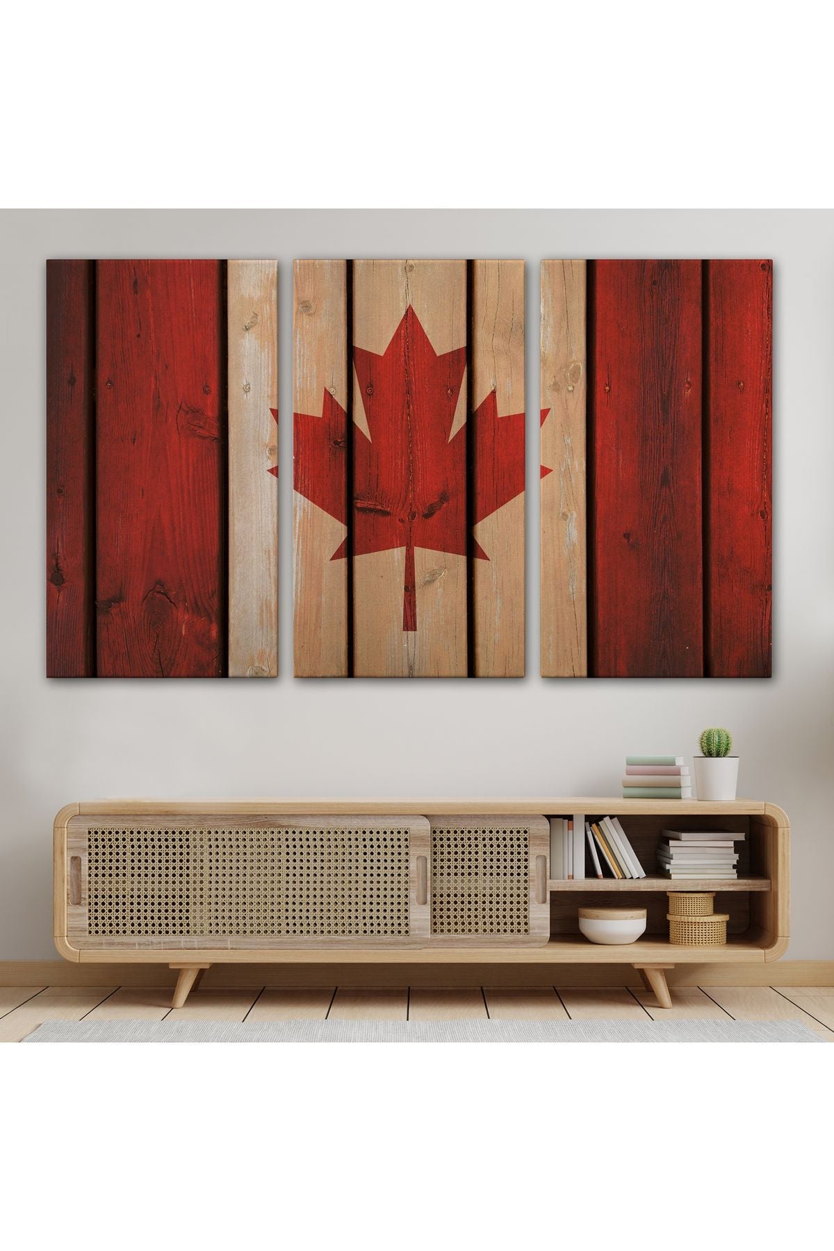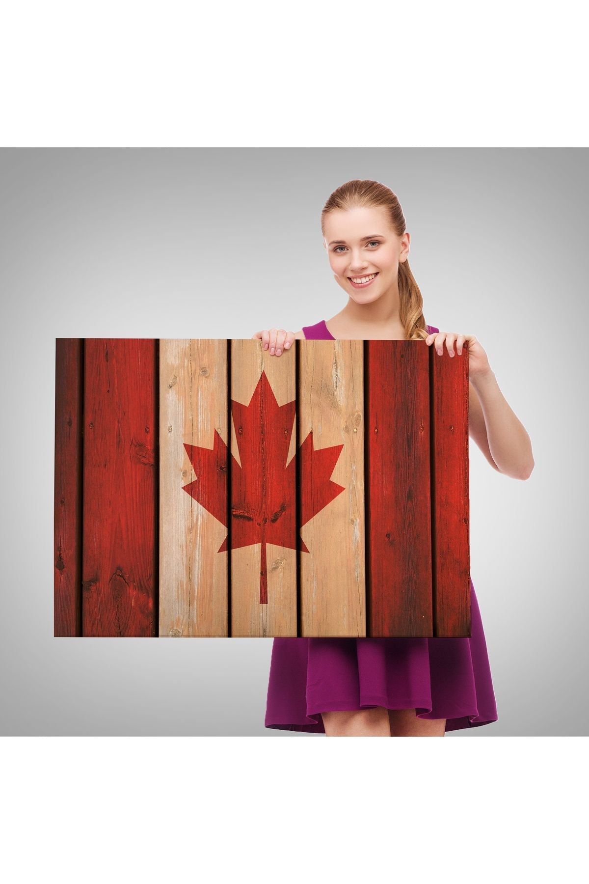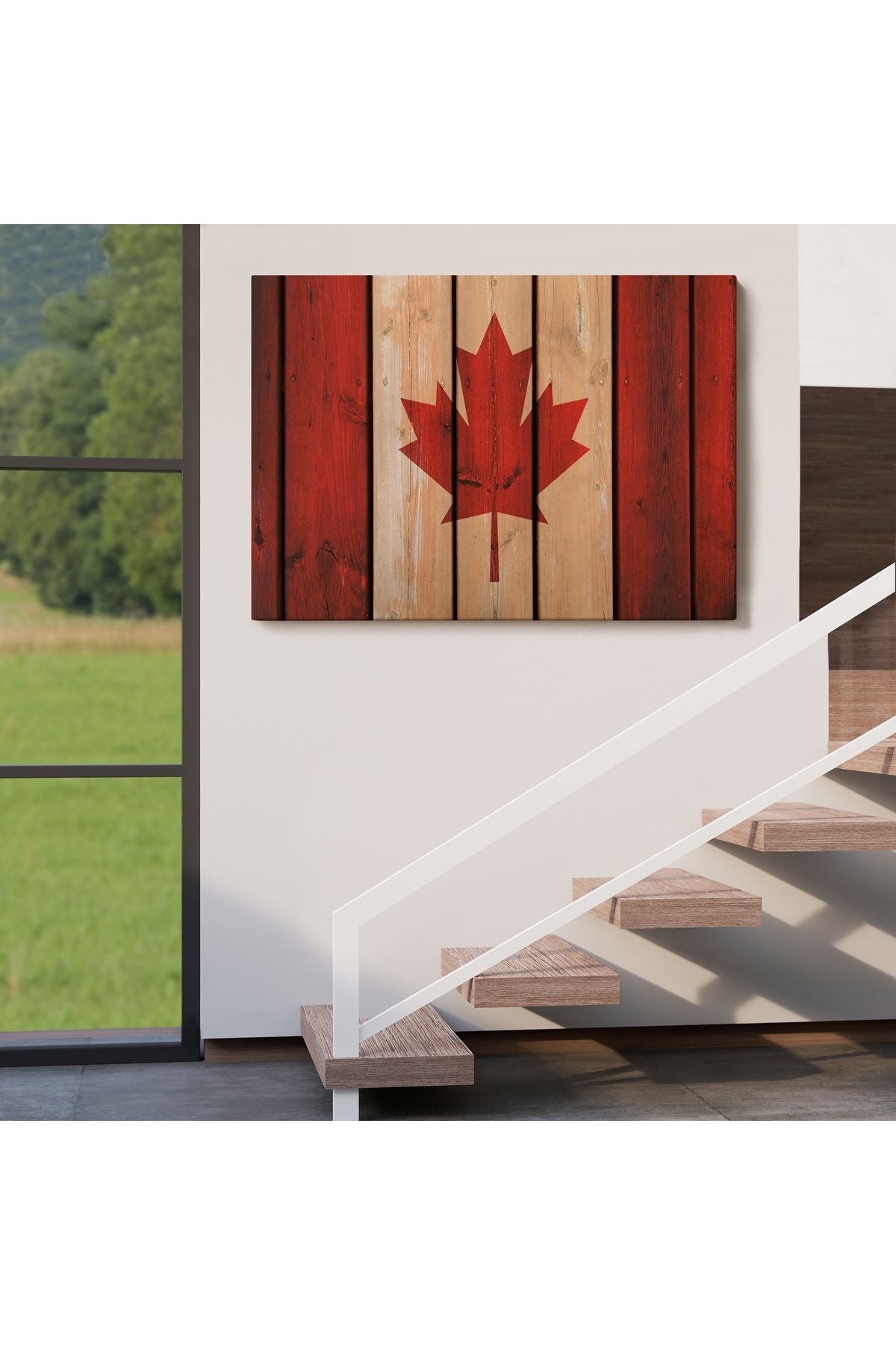 Ahşap Kanada Bayrağı Rustik Kanvas Tablo, Kanada Bayrağı Vintage , Ev ve Ofis Dekoru-5404