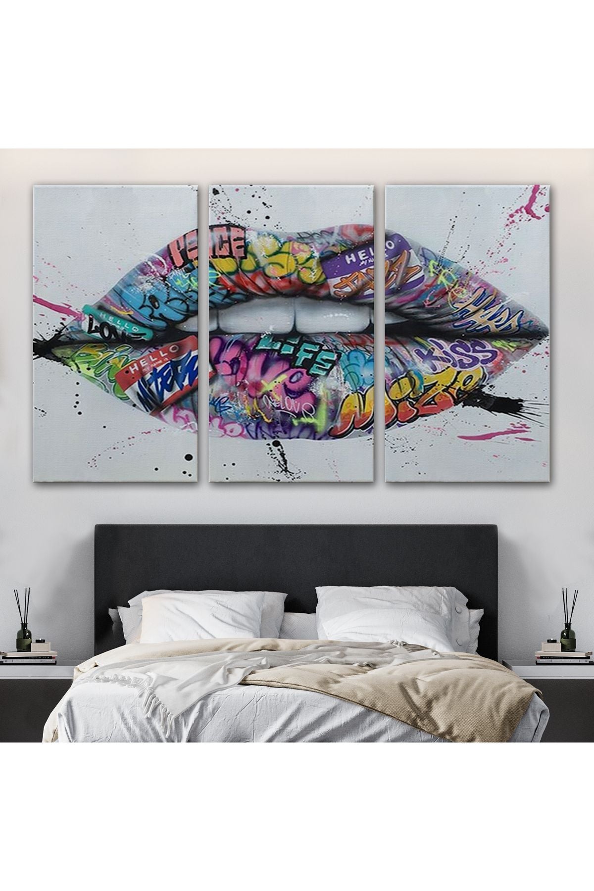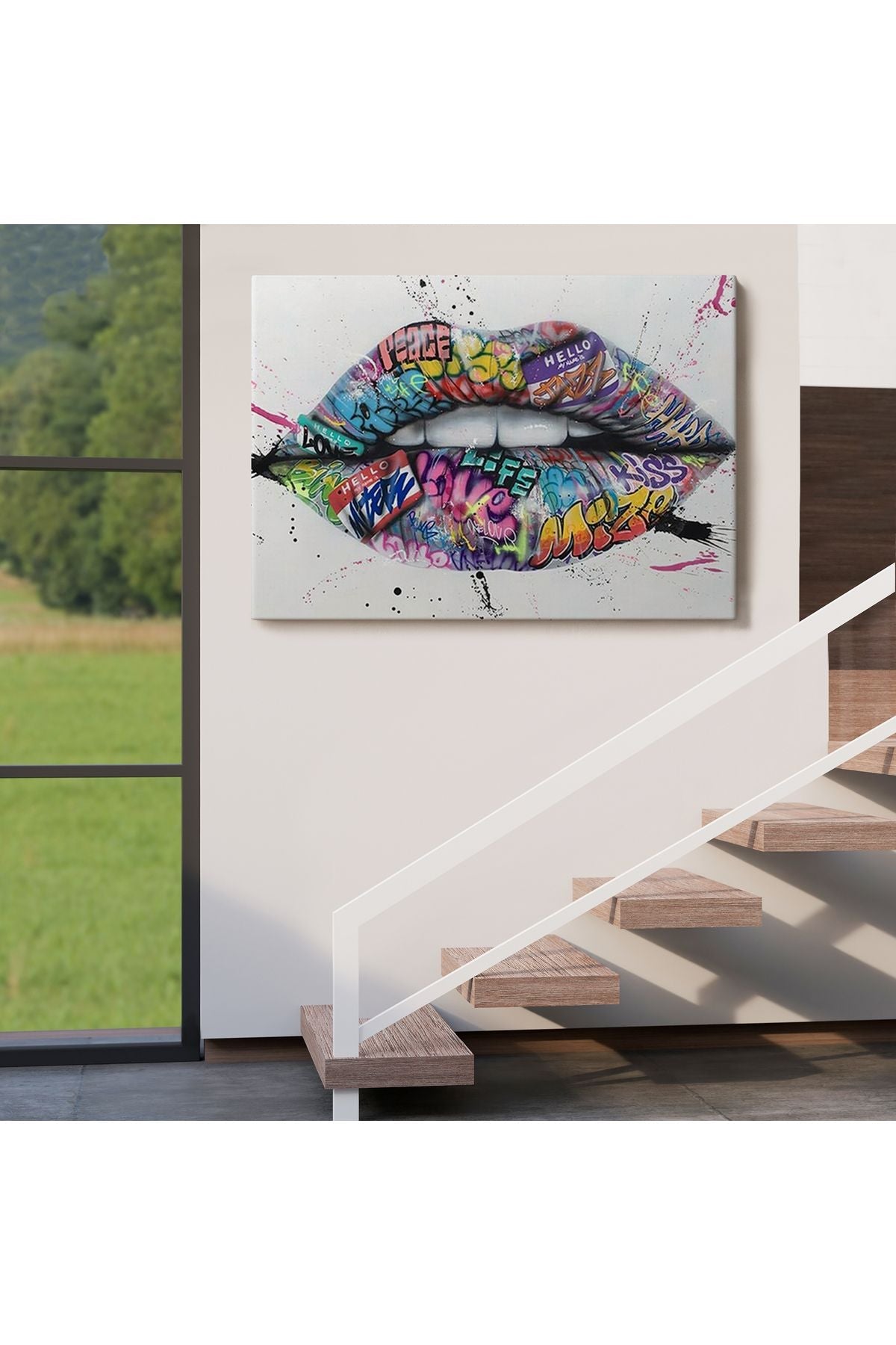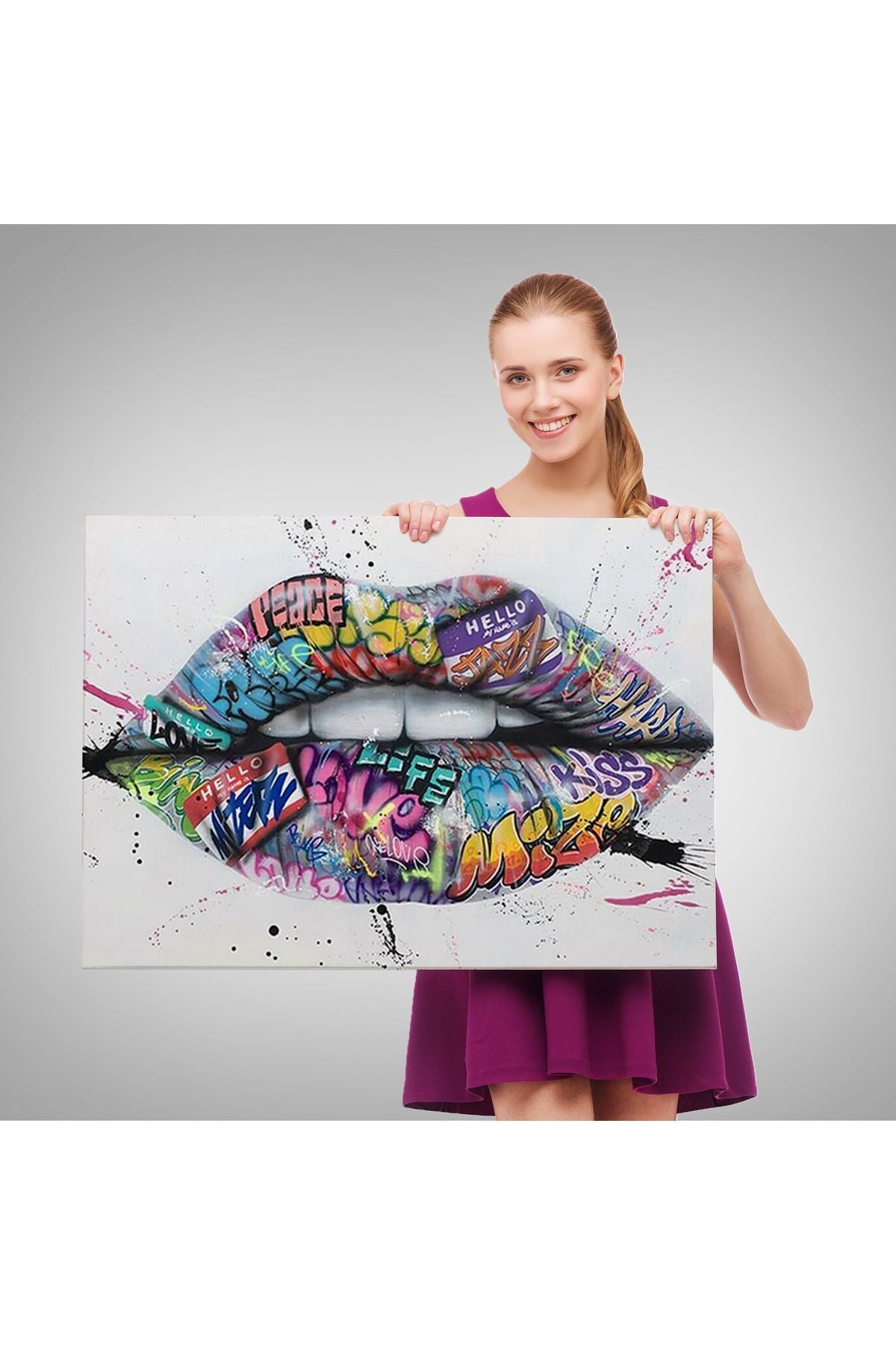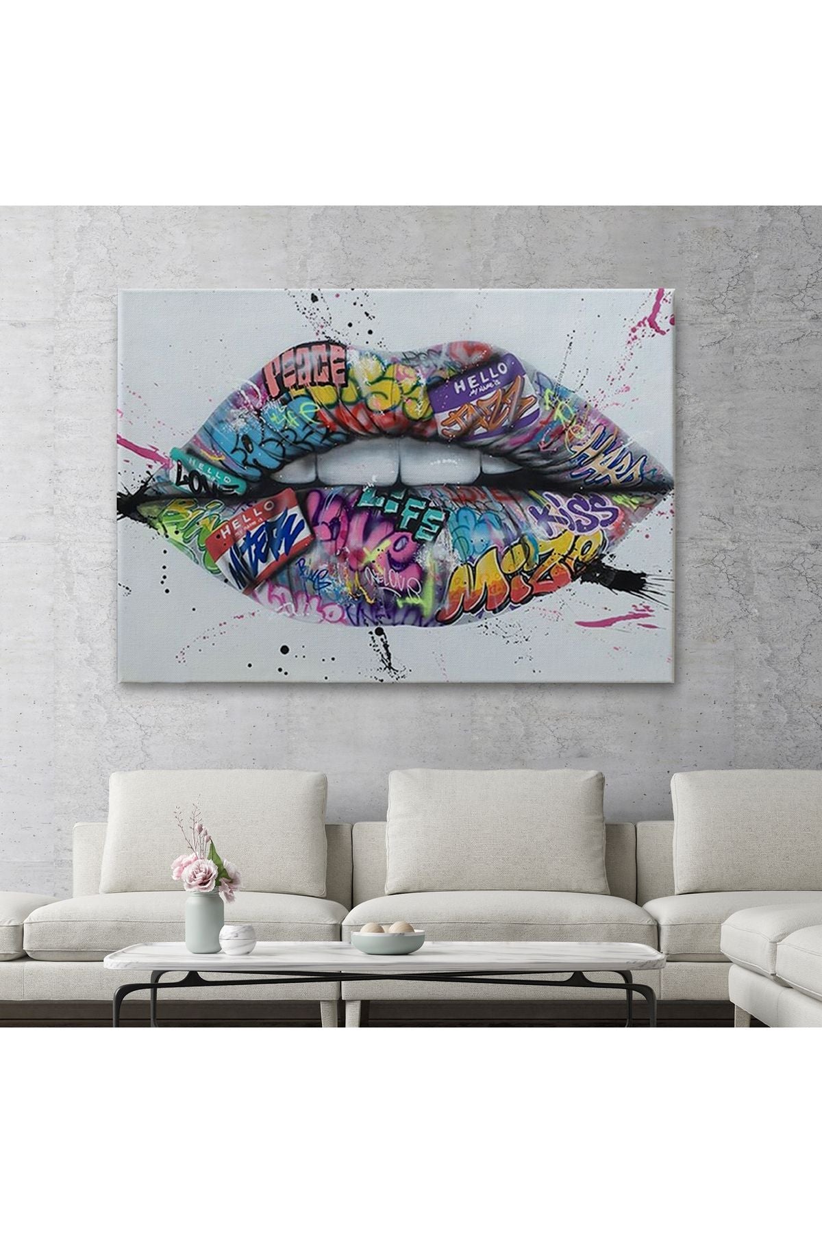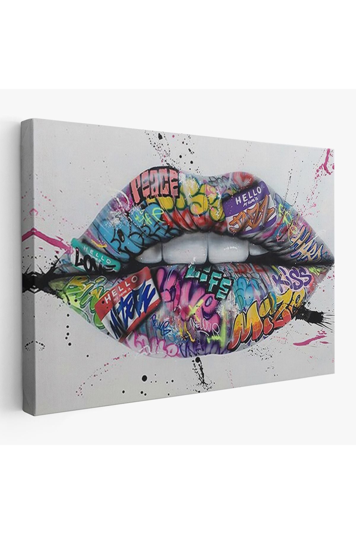 Dudak ve Diş Kanvas Tablo, Banksy Dudaklar Sokak Graffiti Sanatı Kanvas Tablo-5414