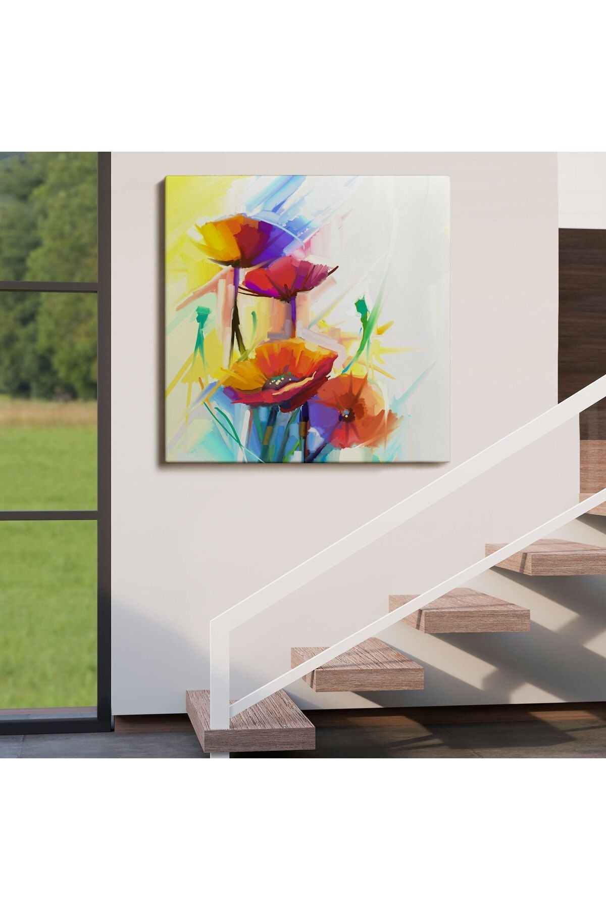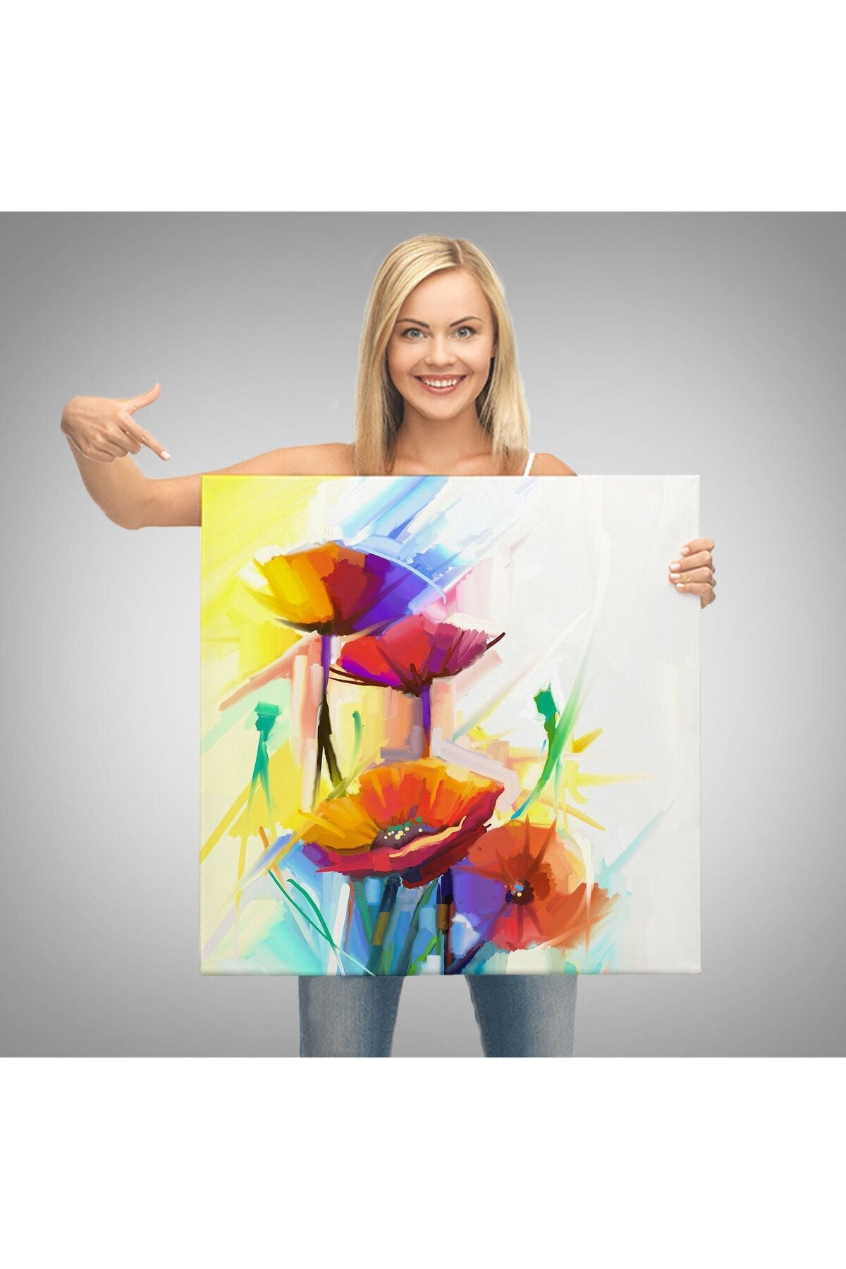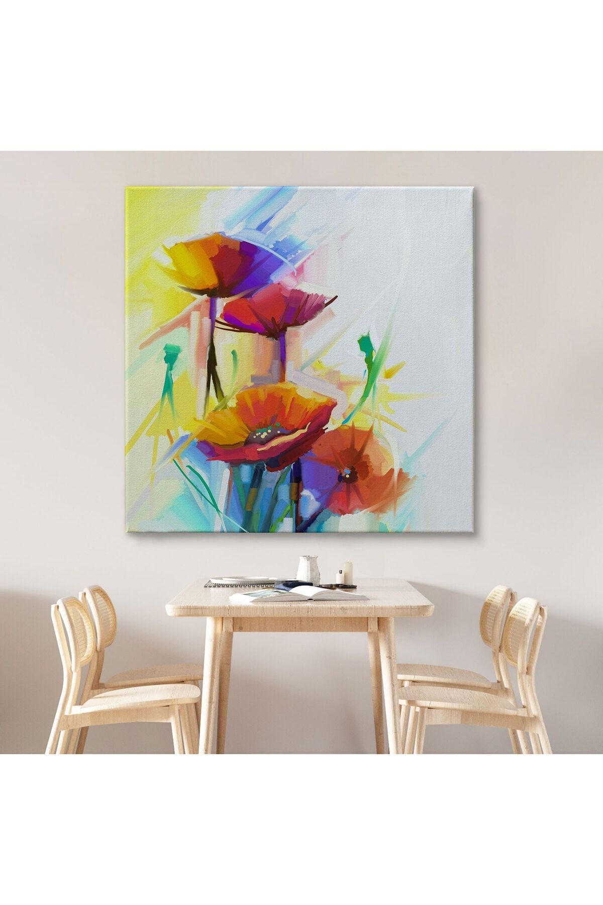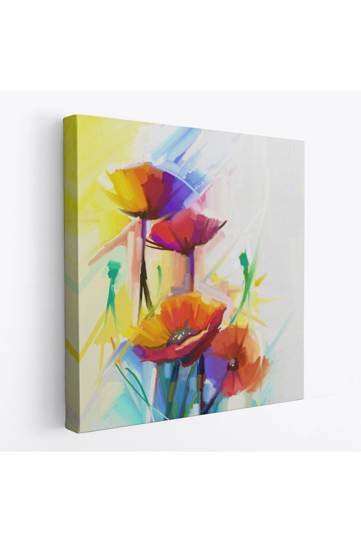 Soyut Çiçekler Yağlıboya Görünüm Dekoratif Kanvas Duvar Tablosu-5828