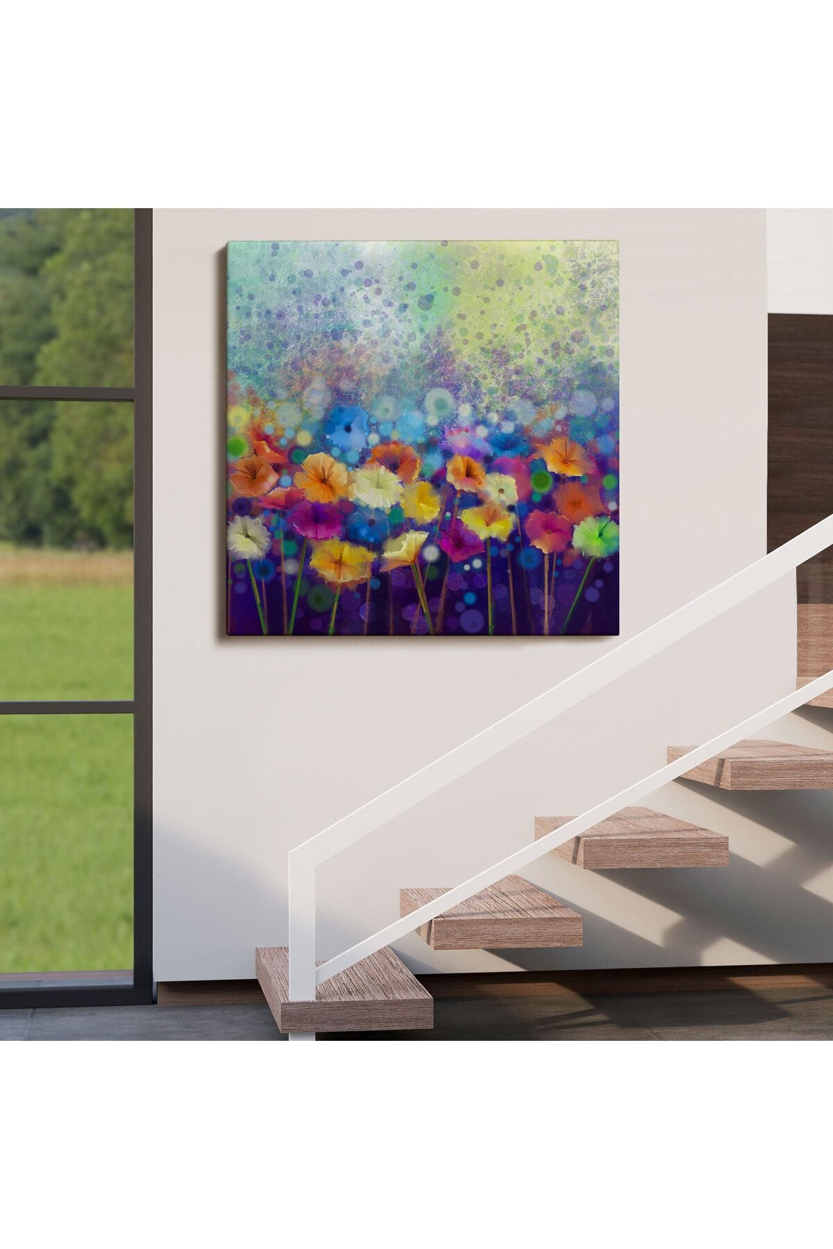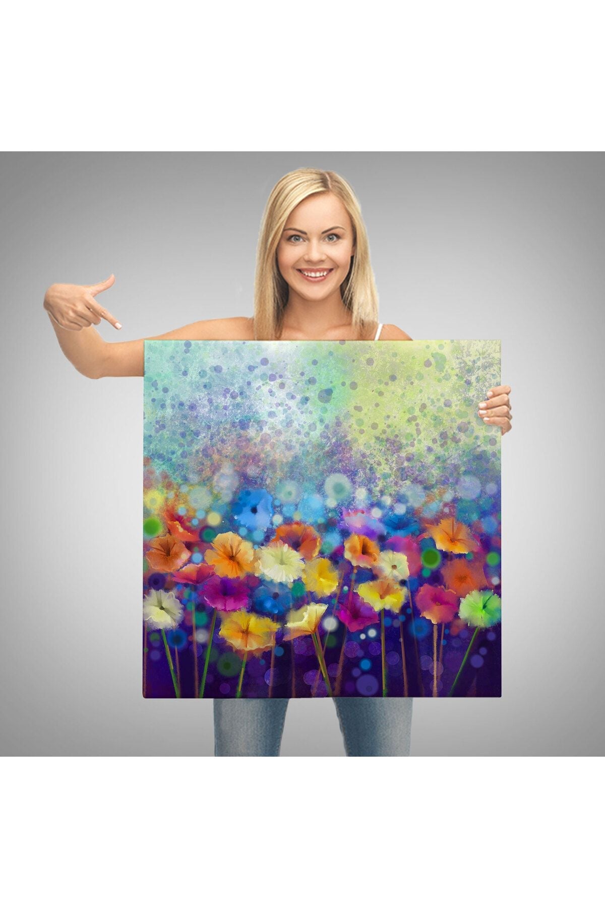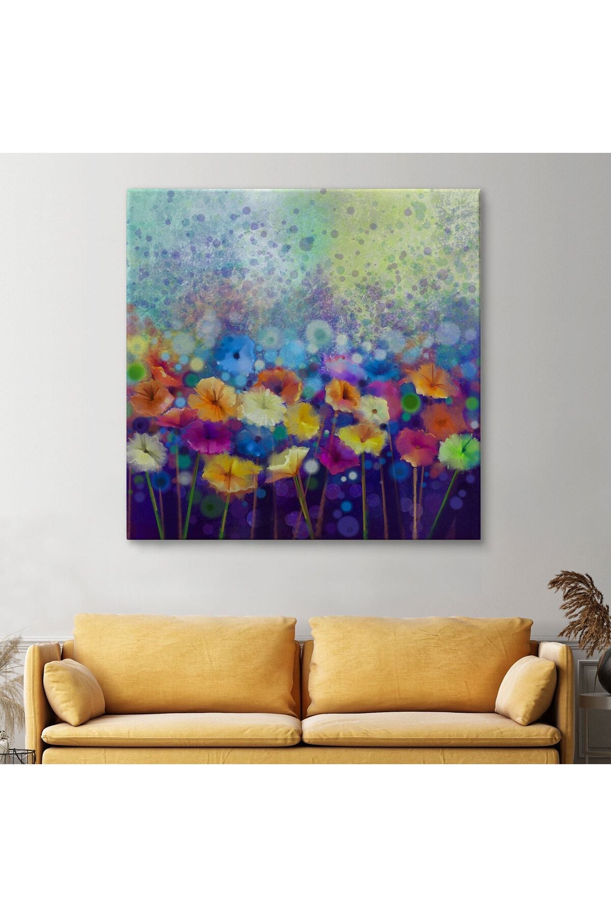 Soyut Çiçekler Suluboya Görünüm Dekoratif Kanvas Duvar Tablosu-5830