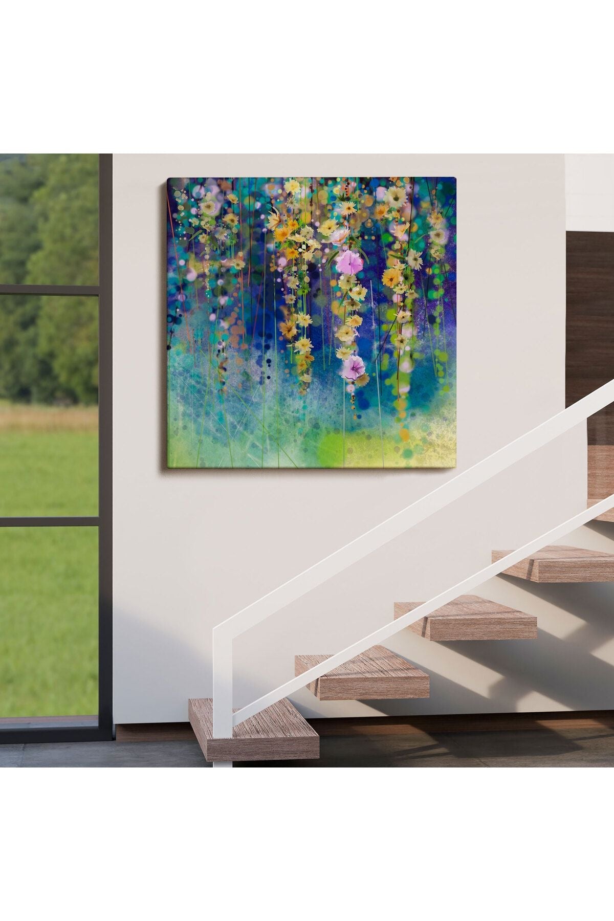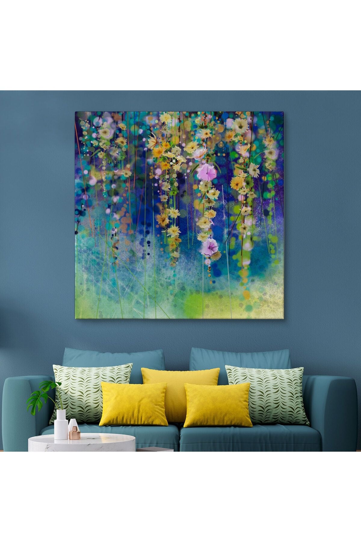 Soyut Çiçekler Suluboya Görünüm Dekoratif Kanvas Duvar Tablosu-5831