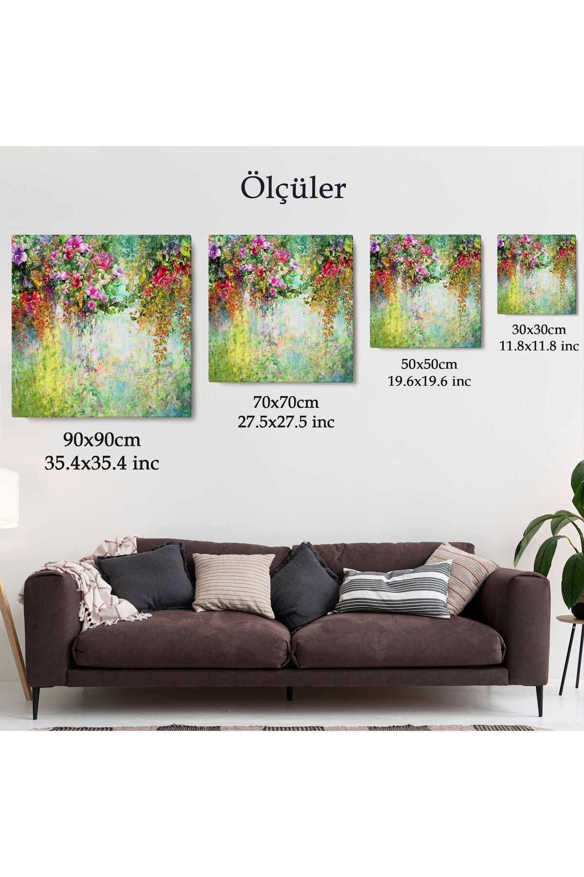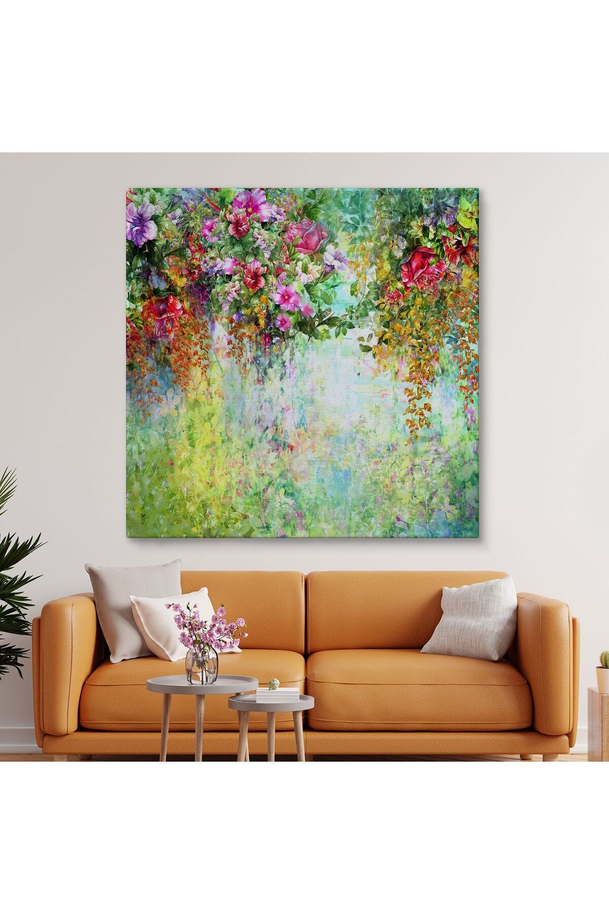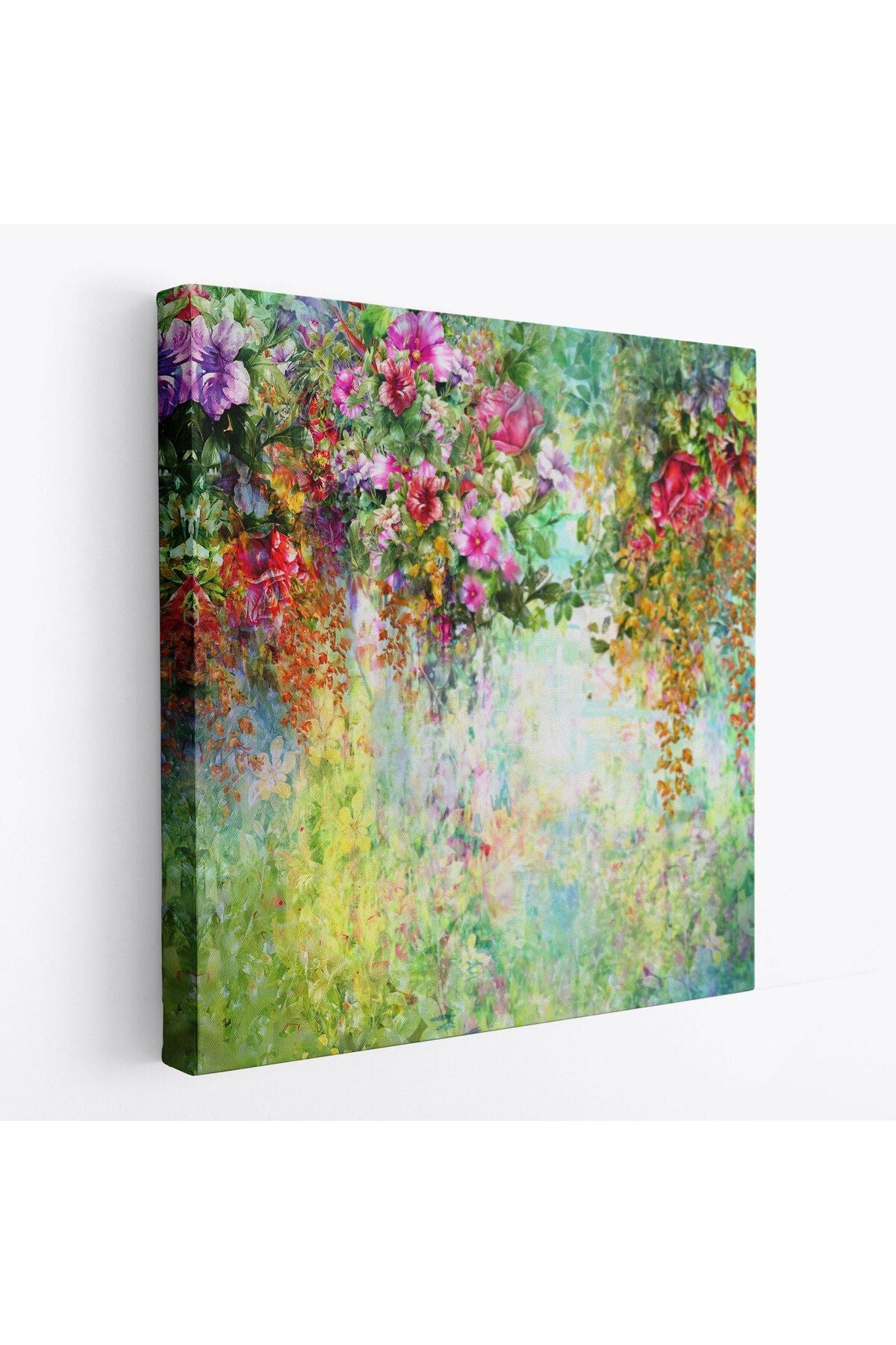 Soyut Çiçekler Suluboya Görünüm Dekoratif Kanvas Duvar Tablosu-5832