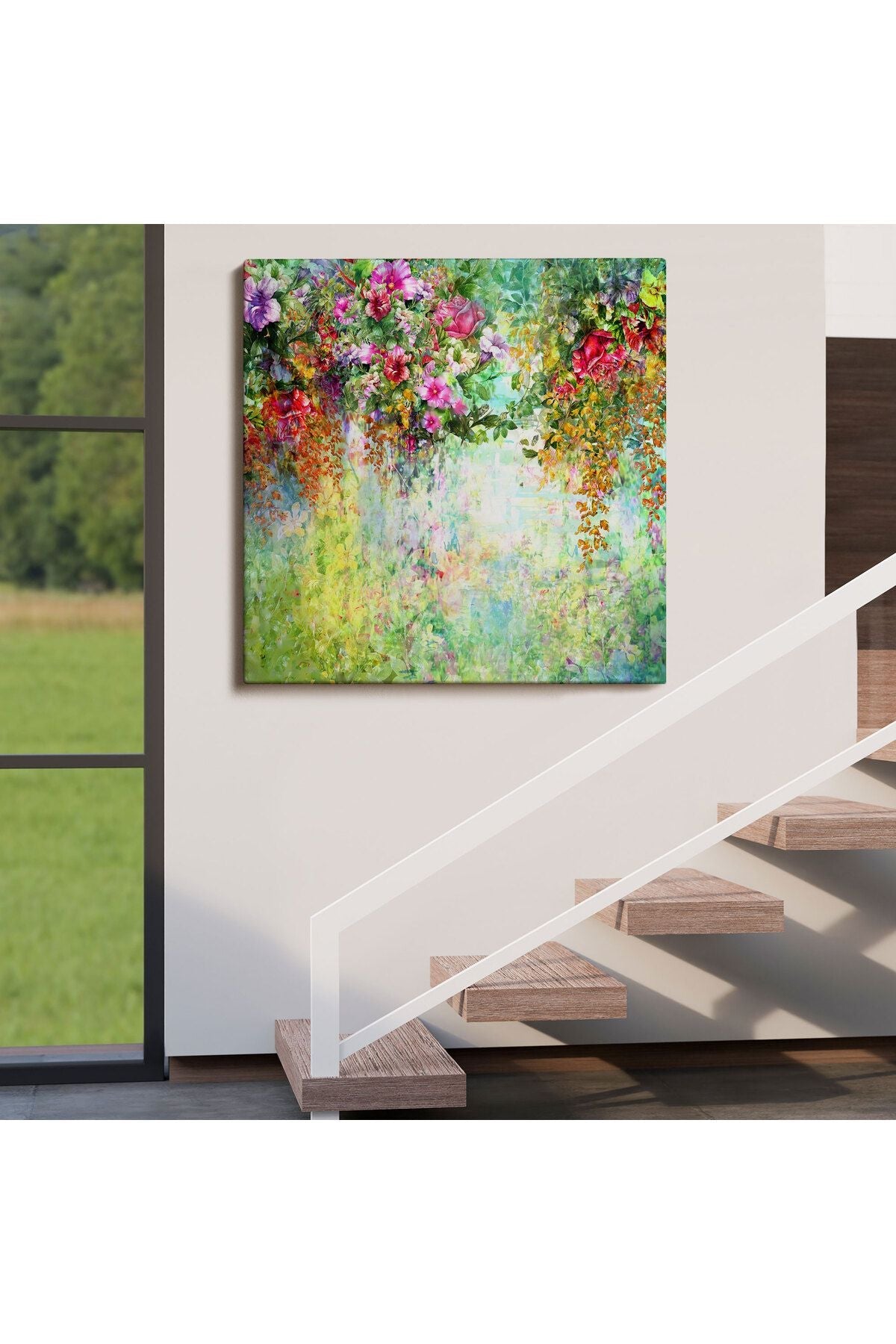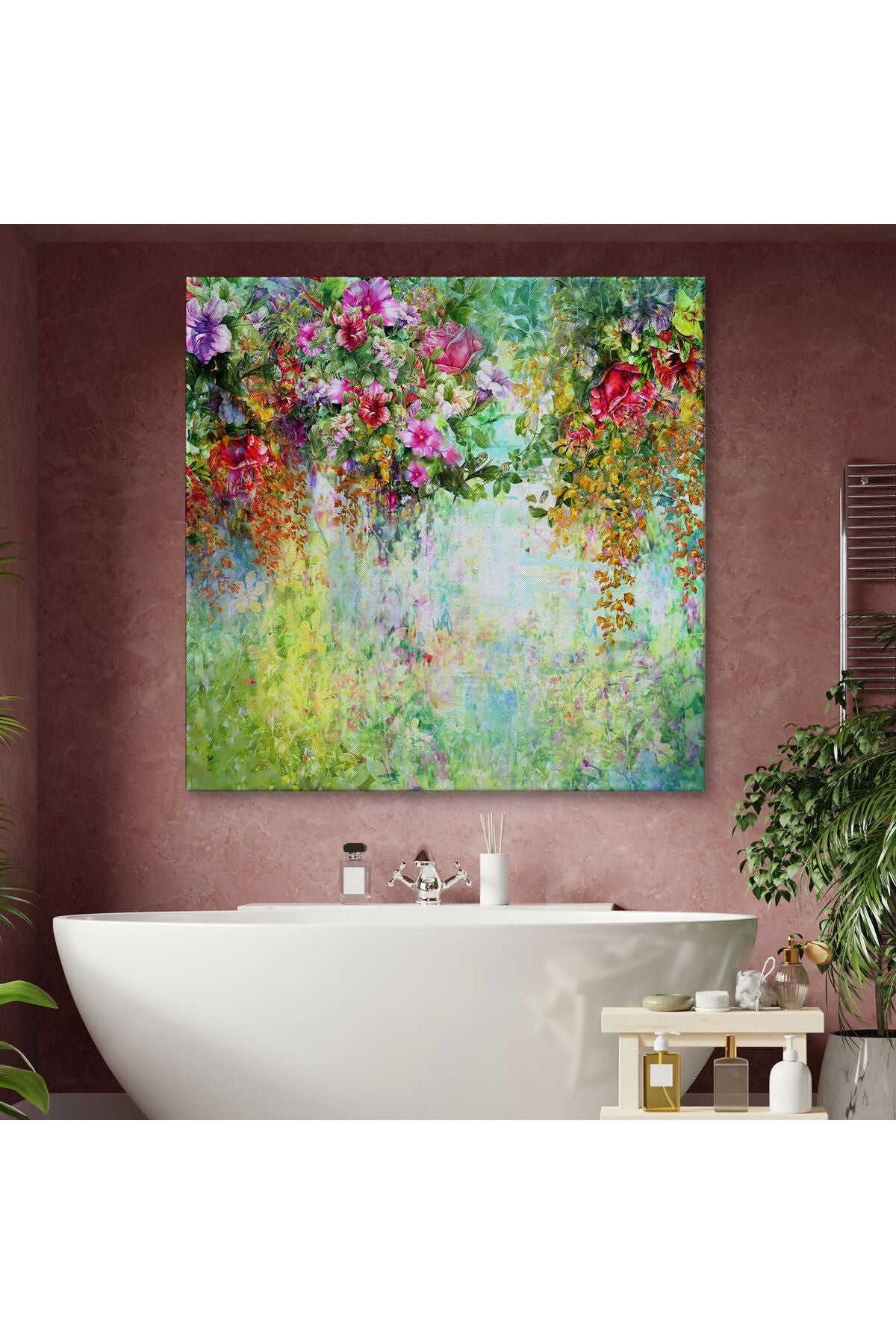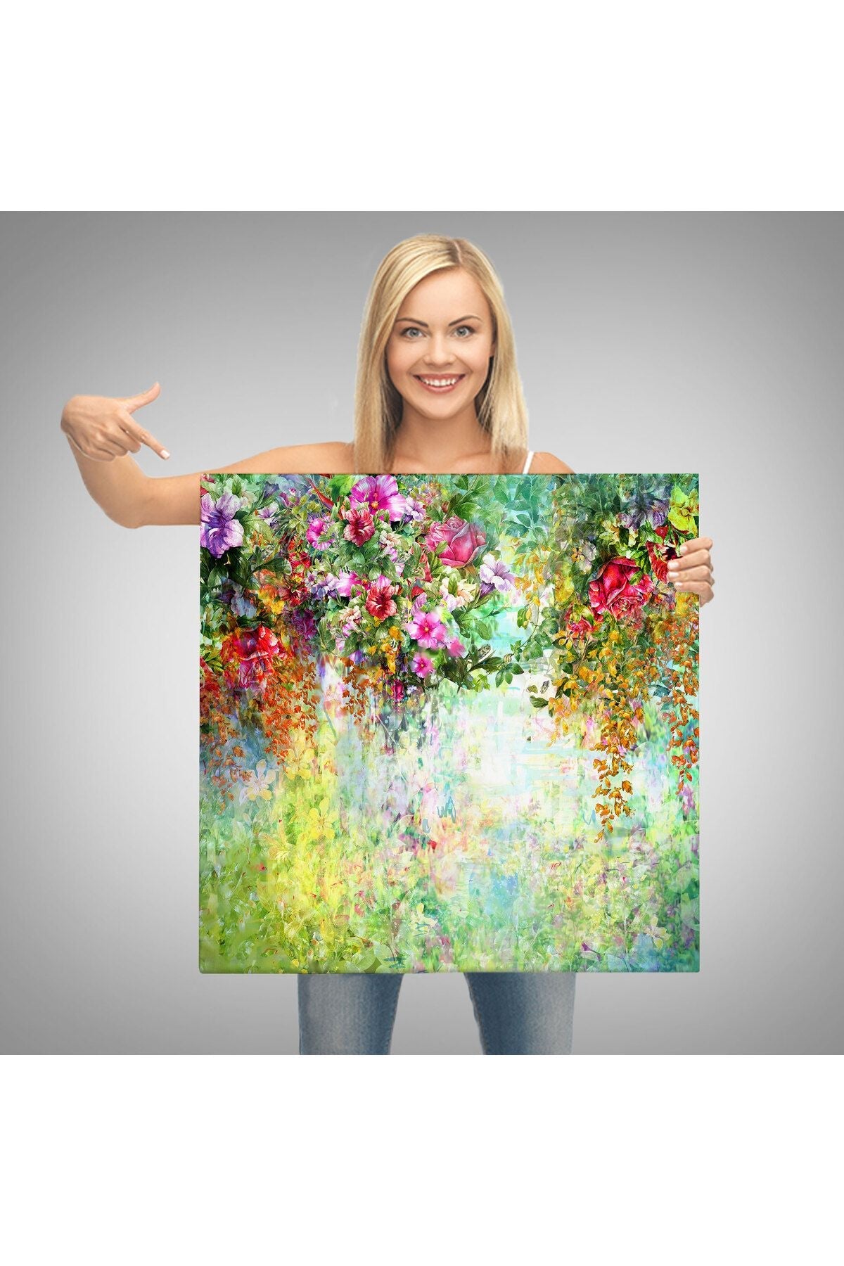 Soyut Çiçekler Suluboya Görünüm Dekoratif Kanvas Duvar Tablosu-5832
