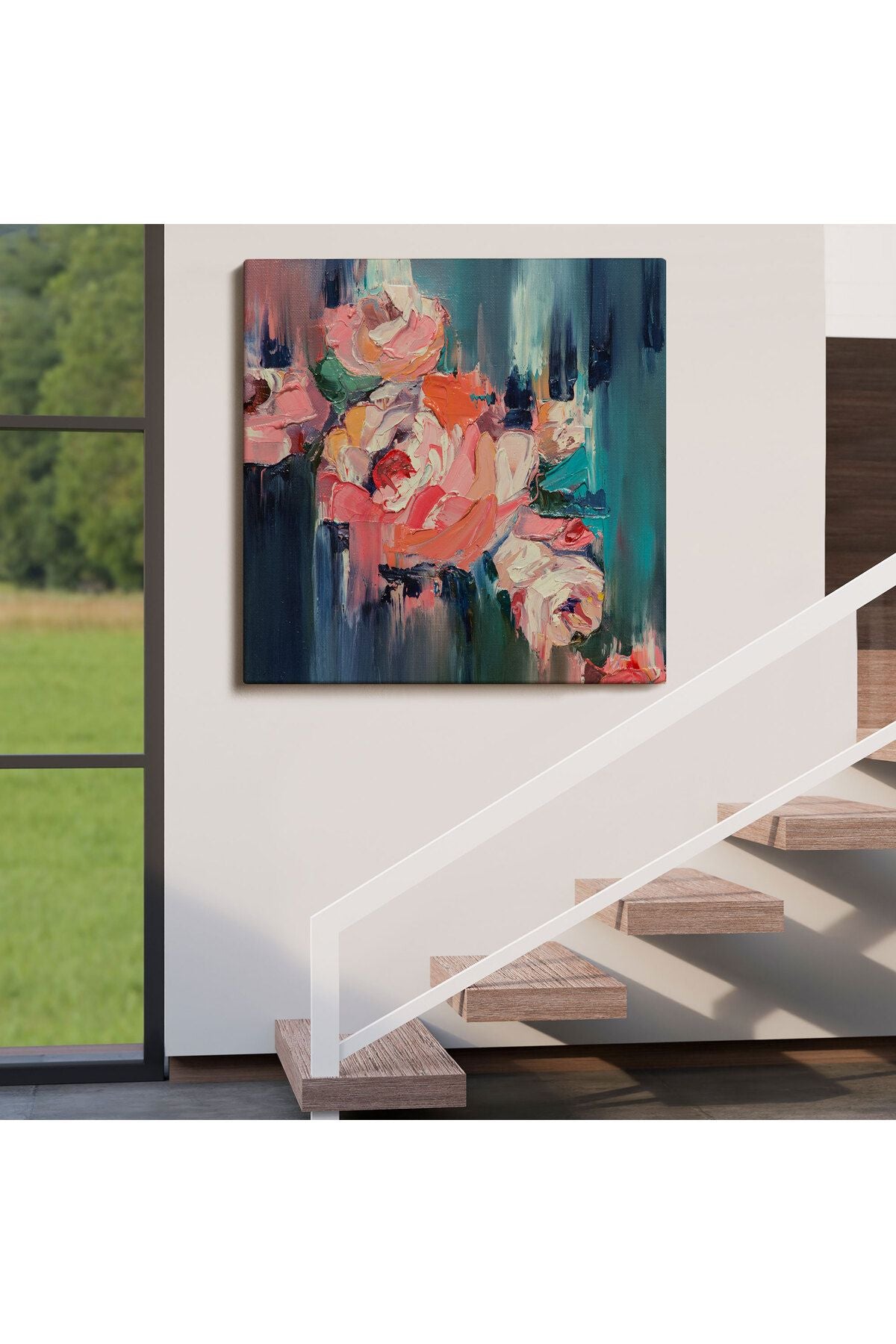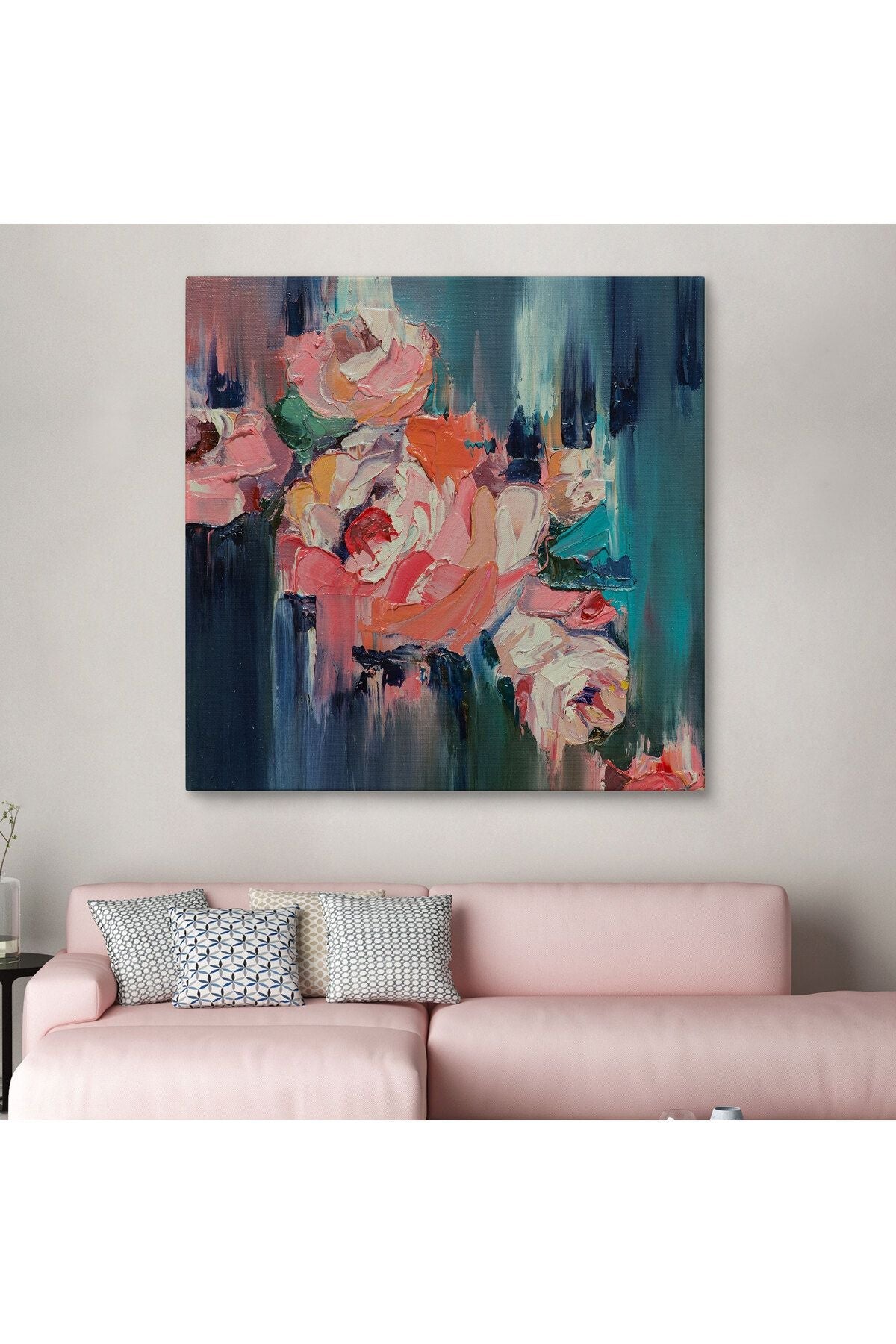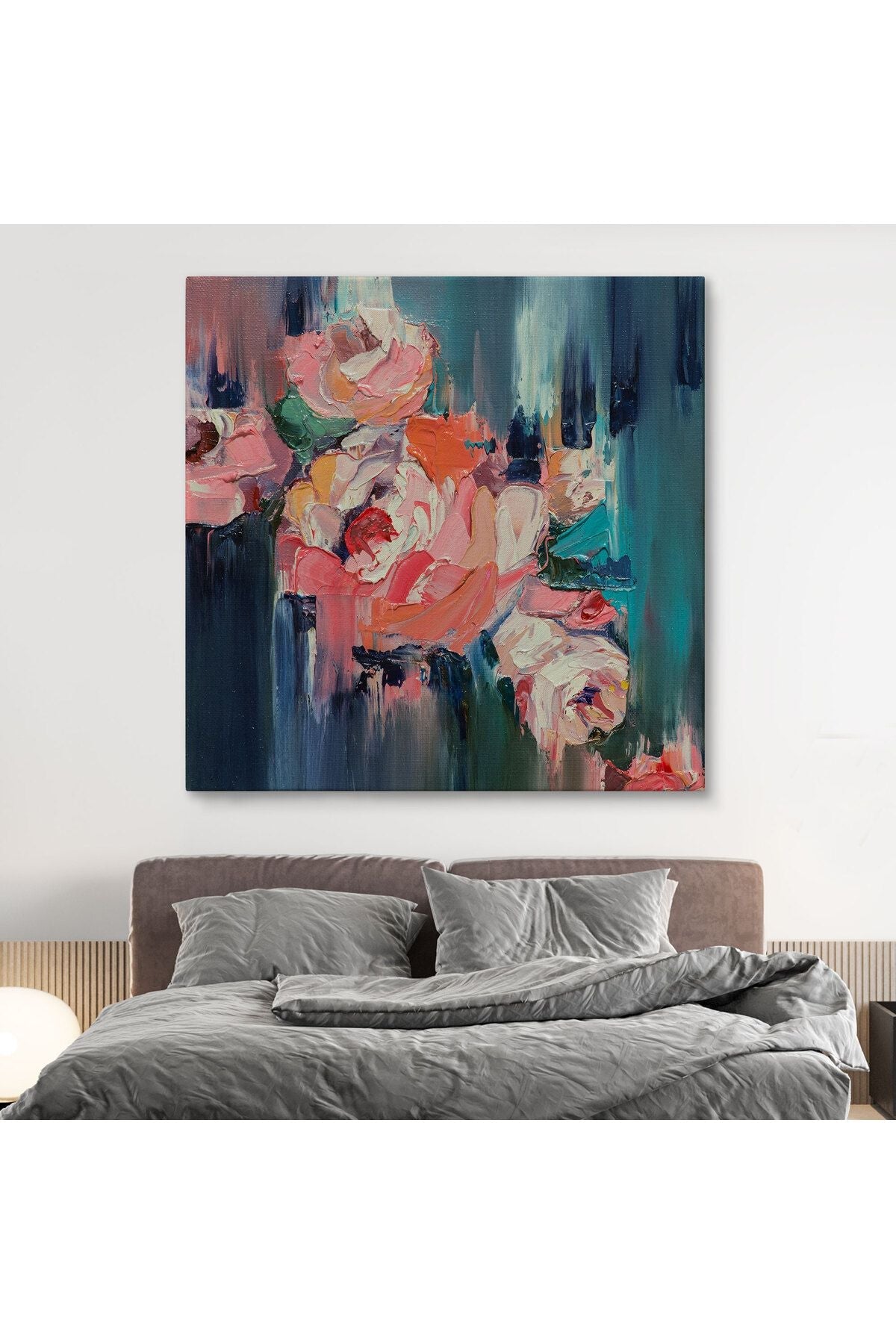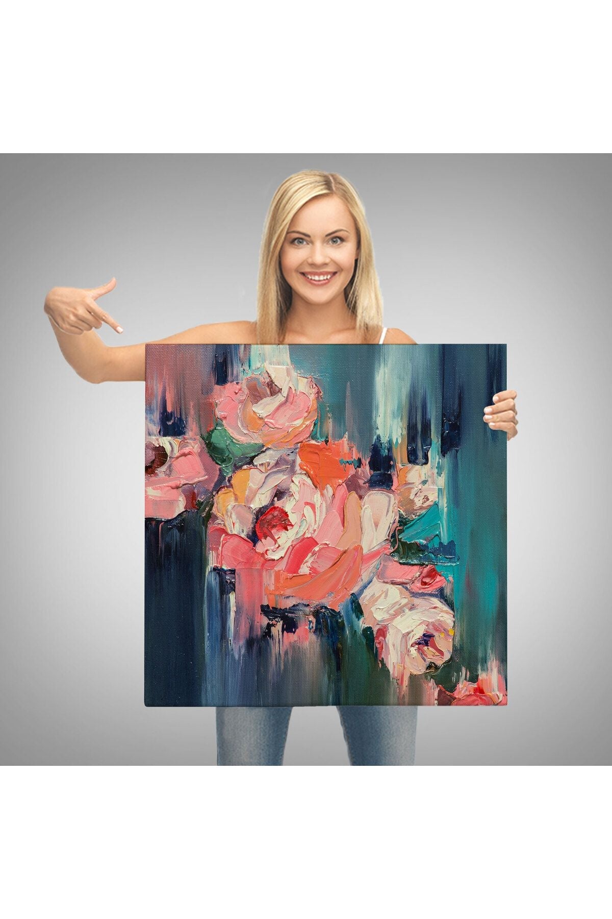 trndry seri001 Renkli Çiçekler Yağlıboya Görünüm Dekoratif Kanvas Duvar Tablosu-5833