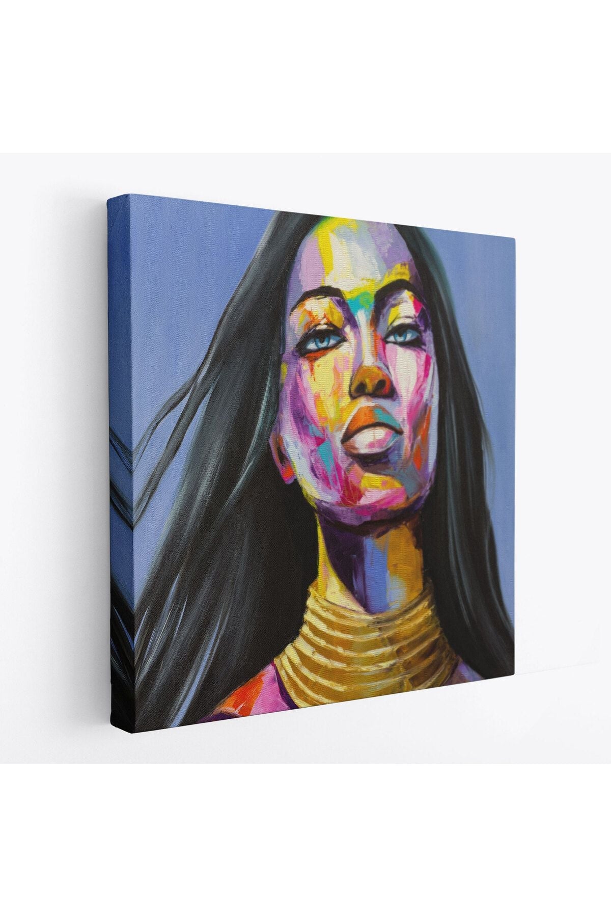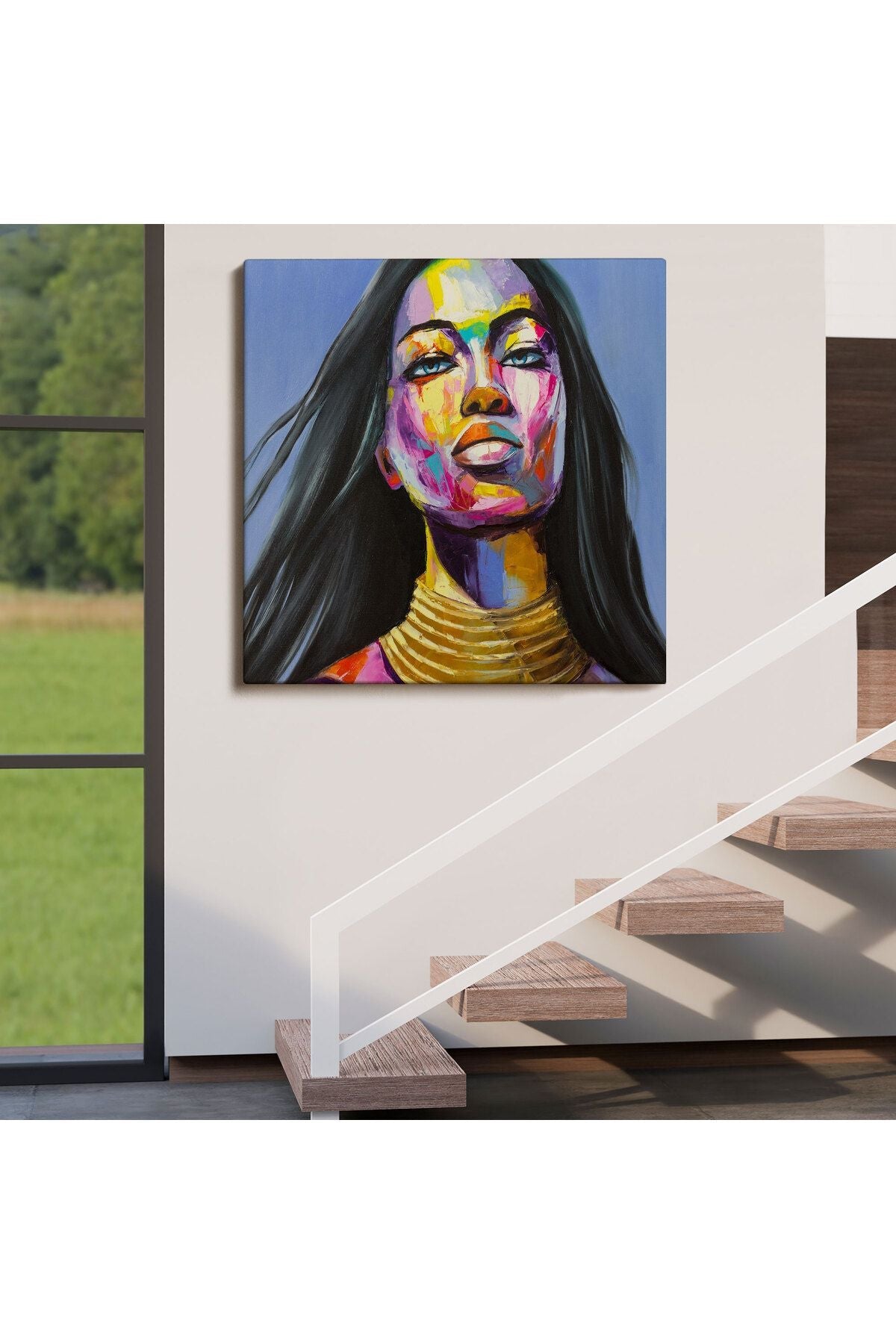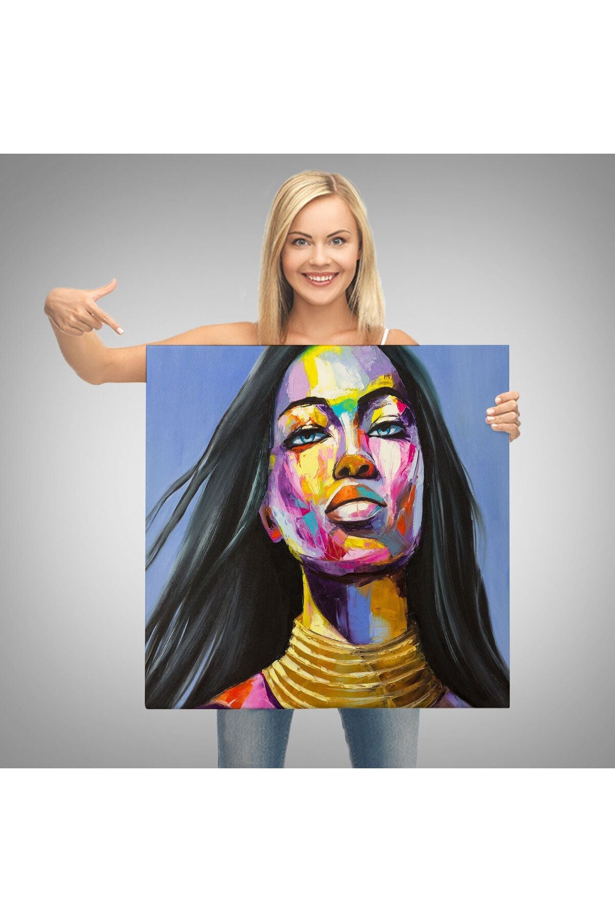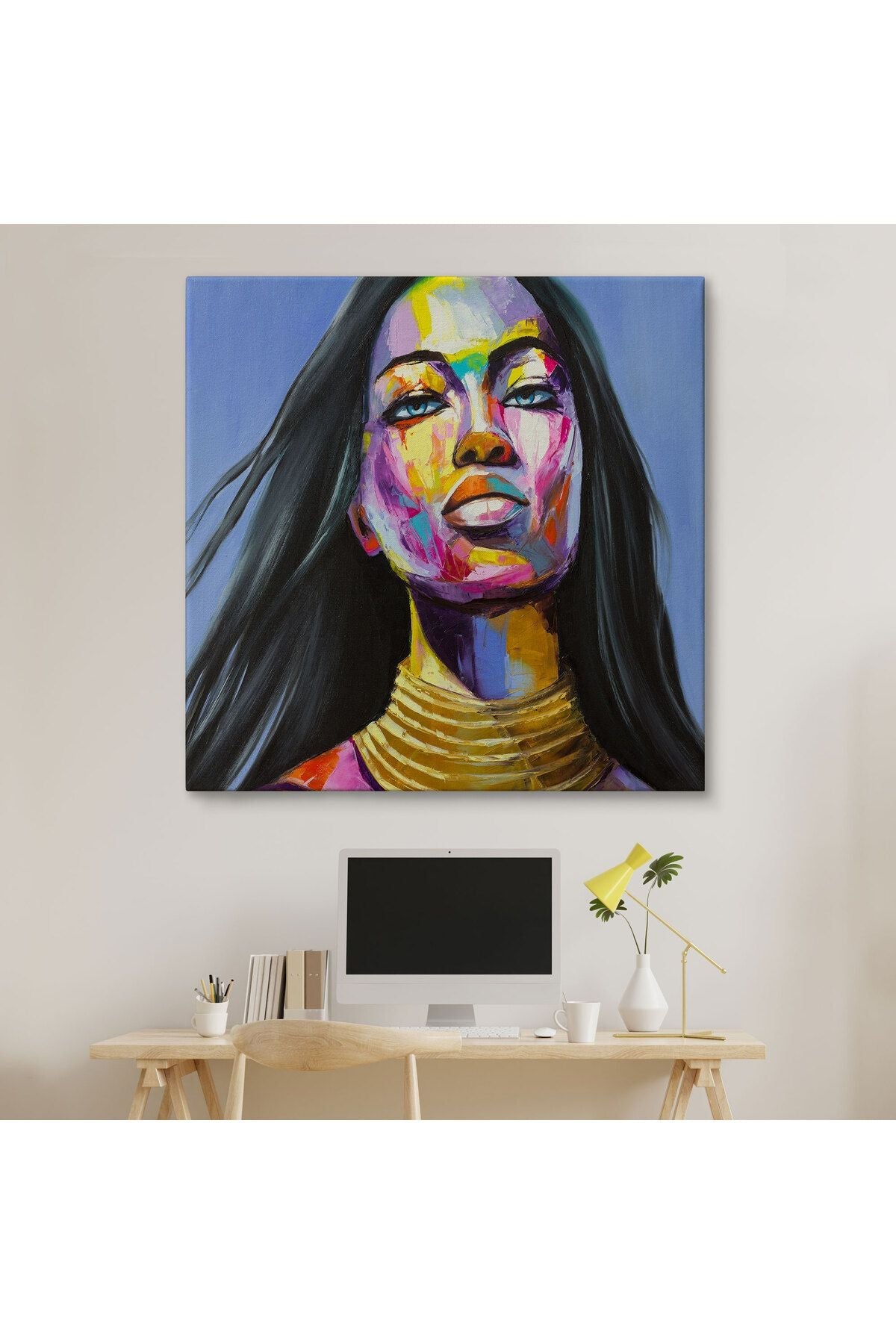 Renkli Kadın Yağlıboya Görünüm Dekoratif Kanvas Duvar Tablosu-5835