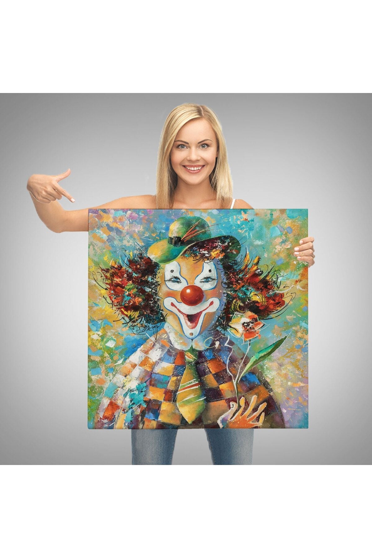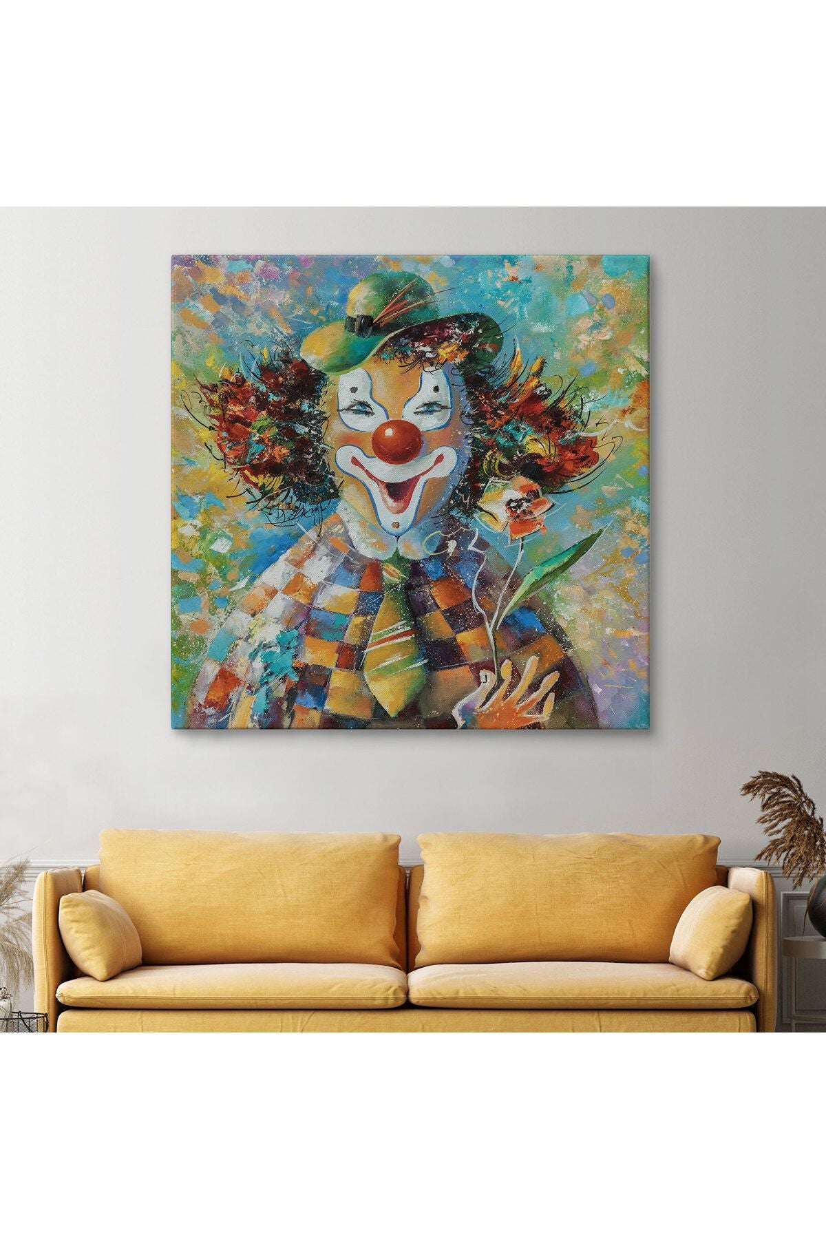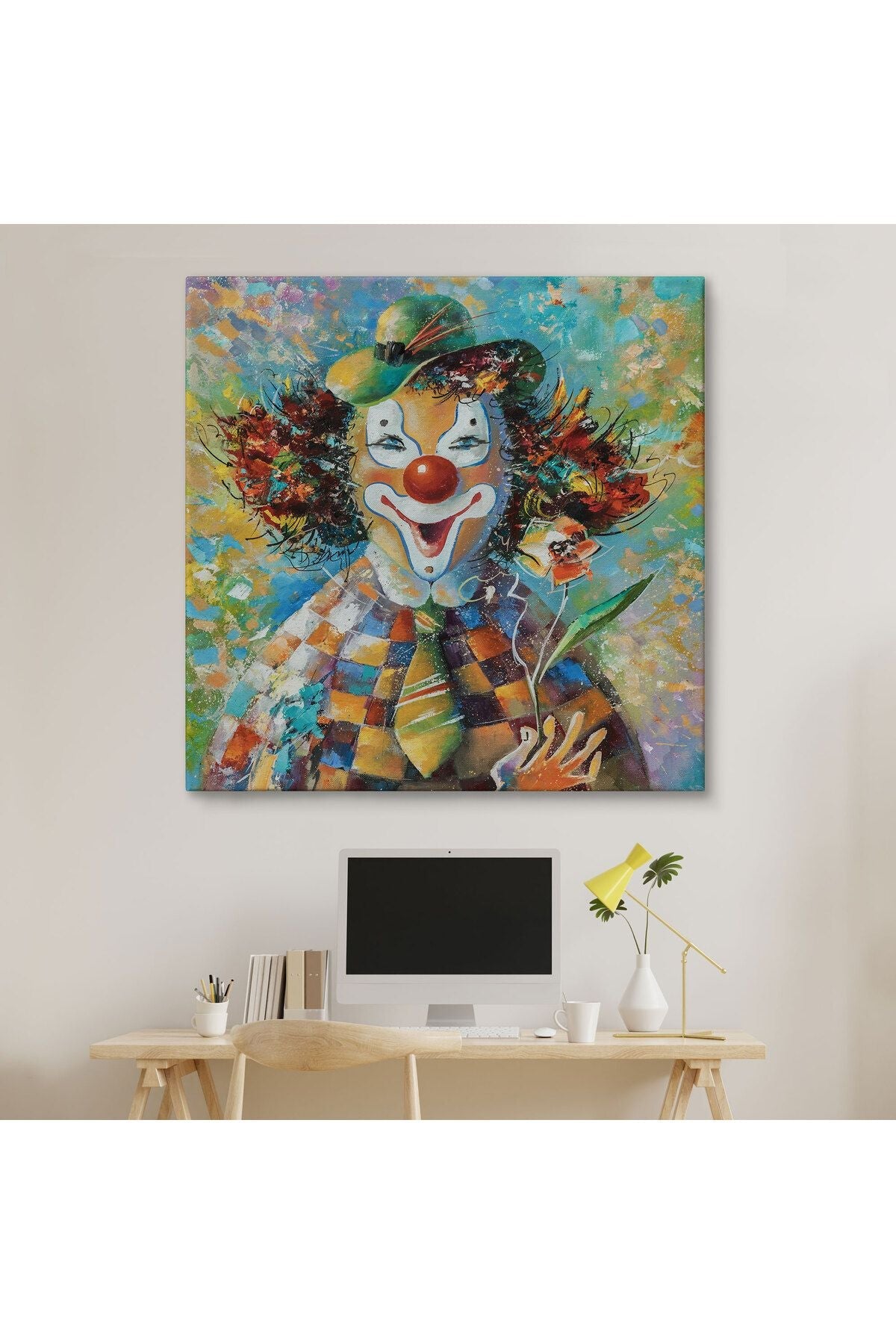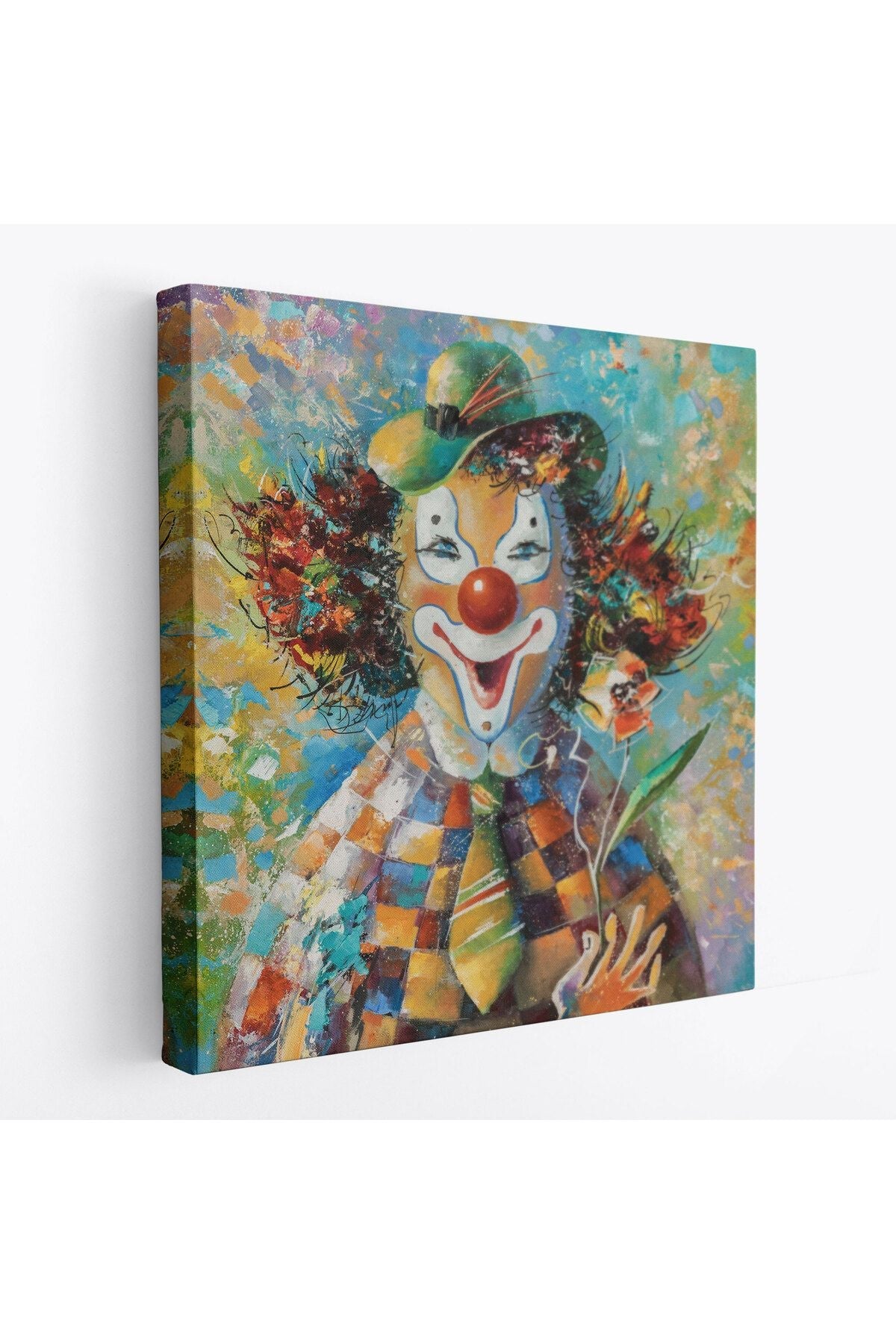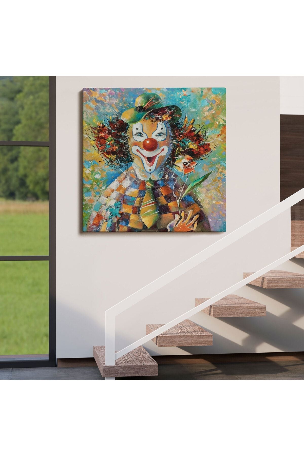 Bir Çiçekli Palyaço Yağlıboya Görünüm Dekoratif Kanvas Duvar Tablosu-5838