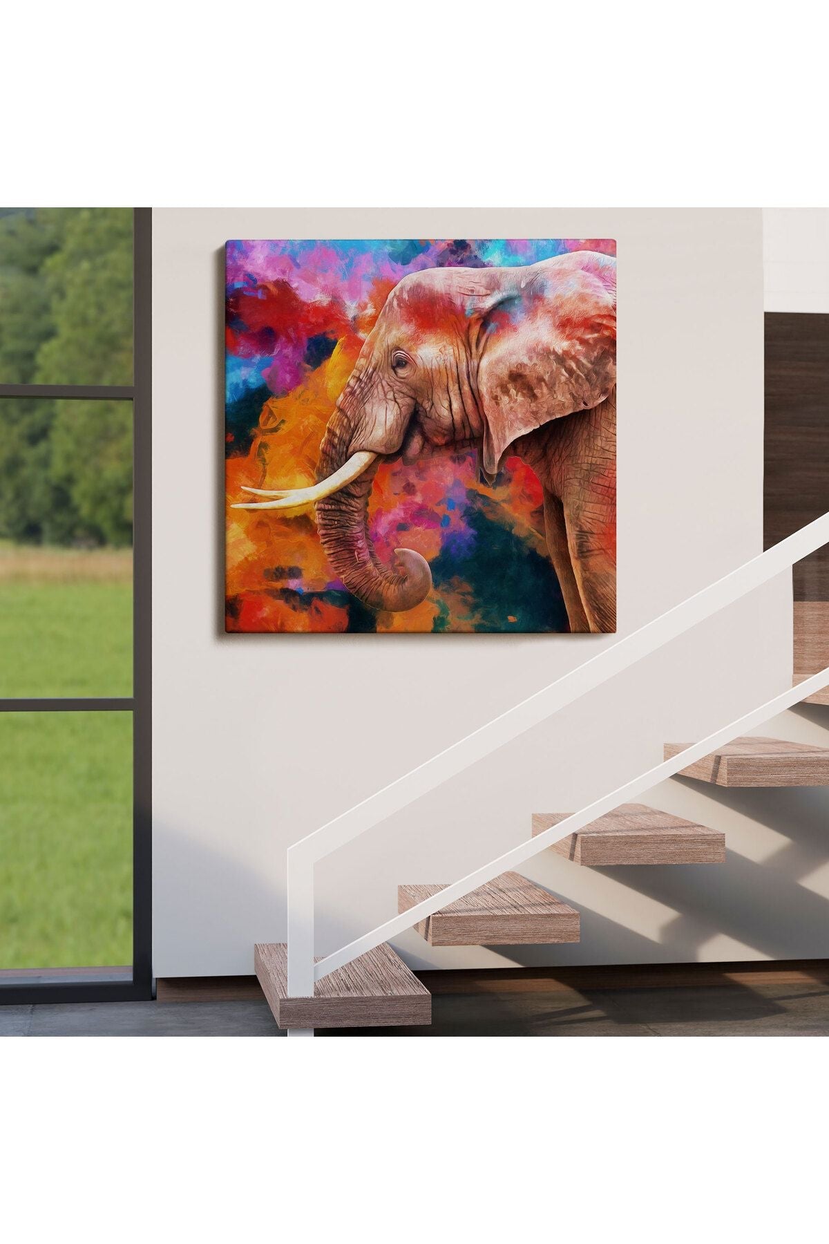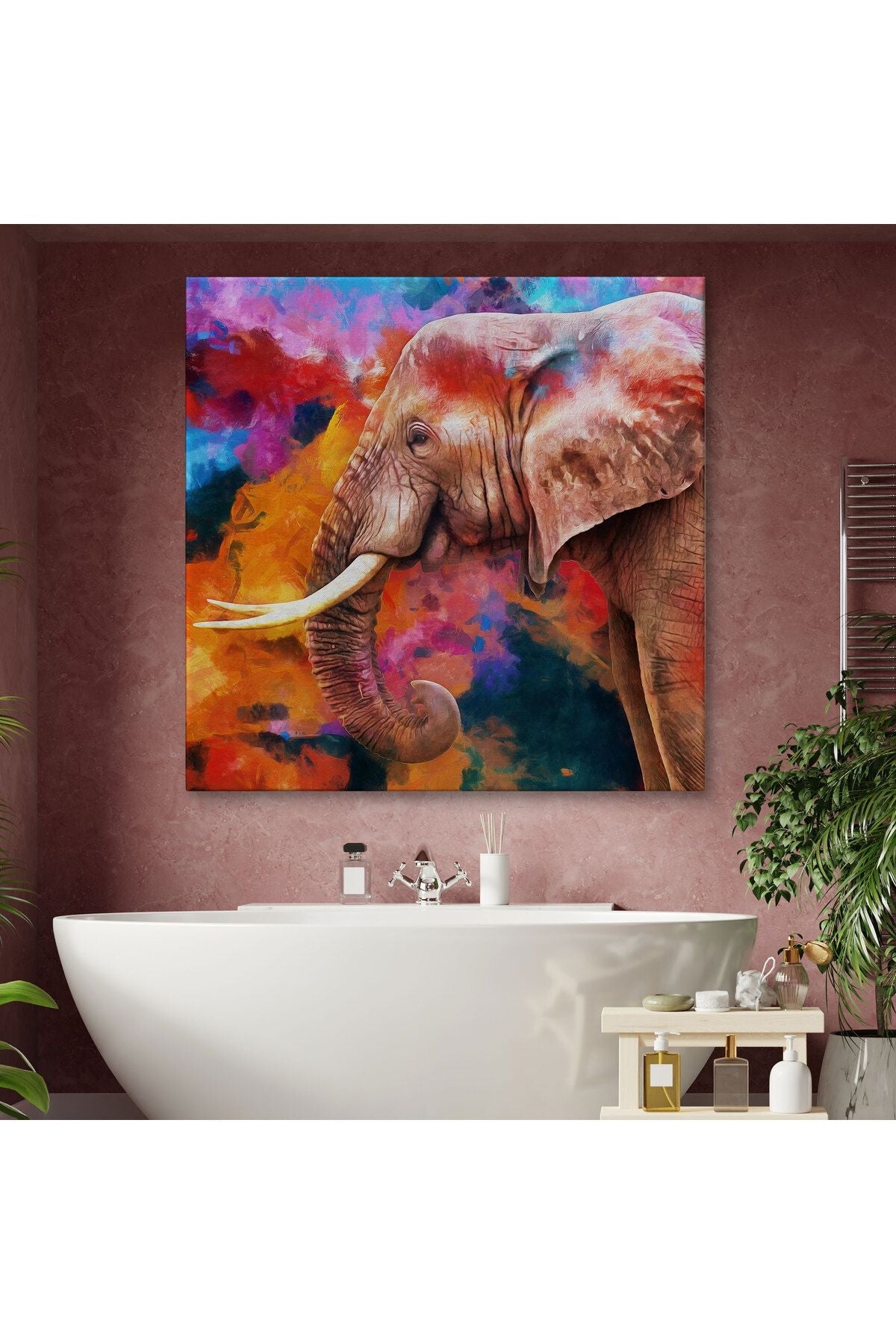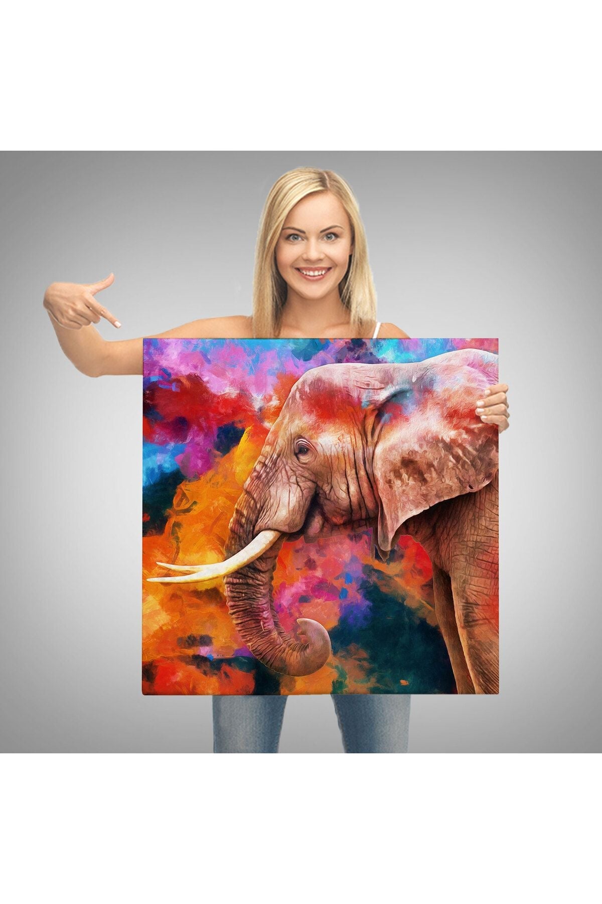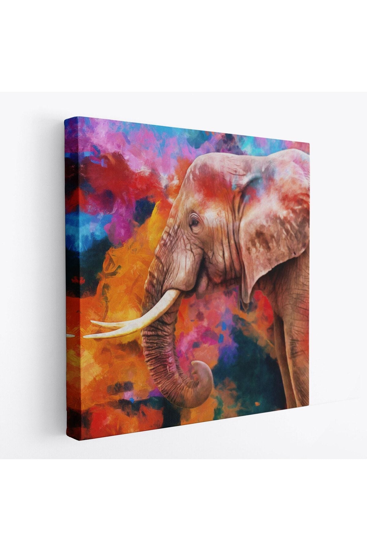 Renkli Fil Yağlıboya Görünüm Dekoratif Kanvas Duvar Tablosu-5842