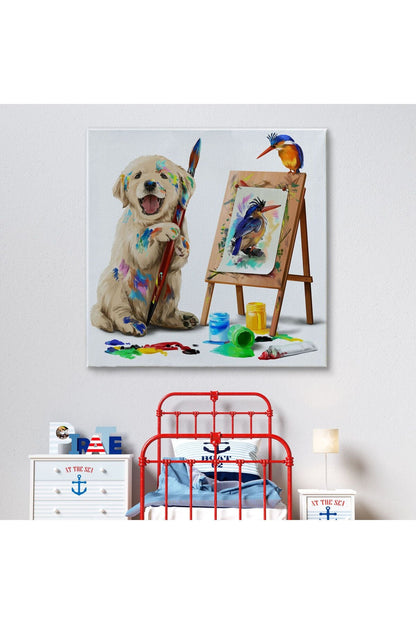 Ressam Yavru Köpek Dekoratif Kanvas Tablo-5845