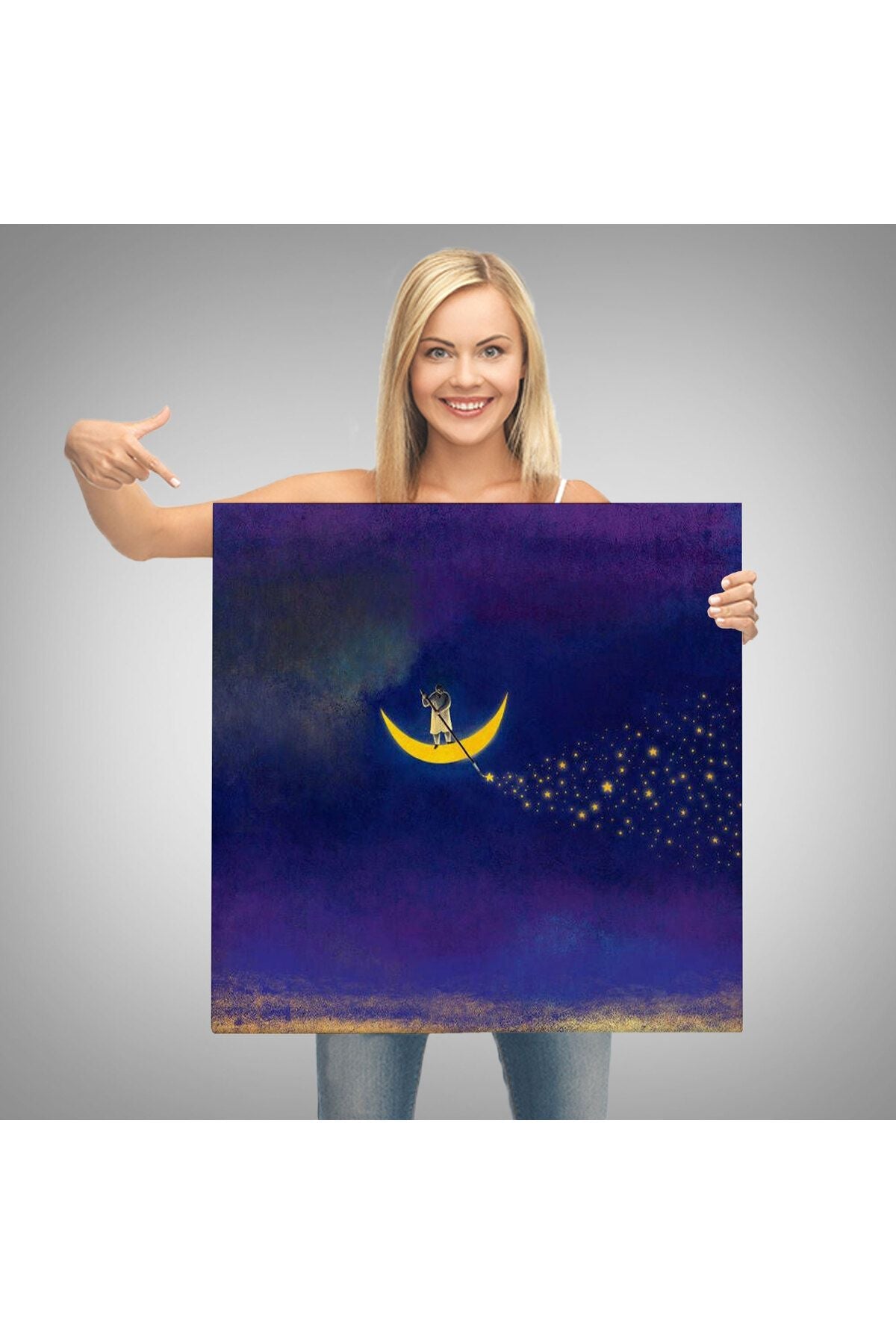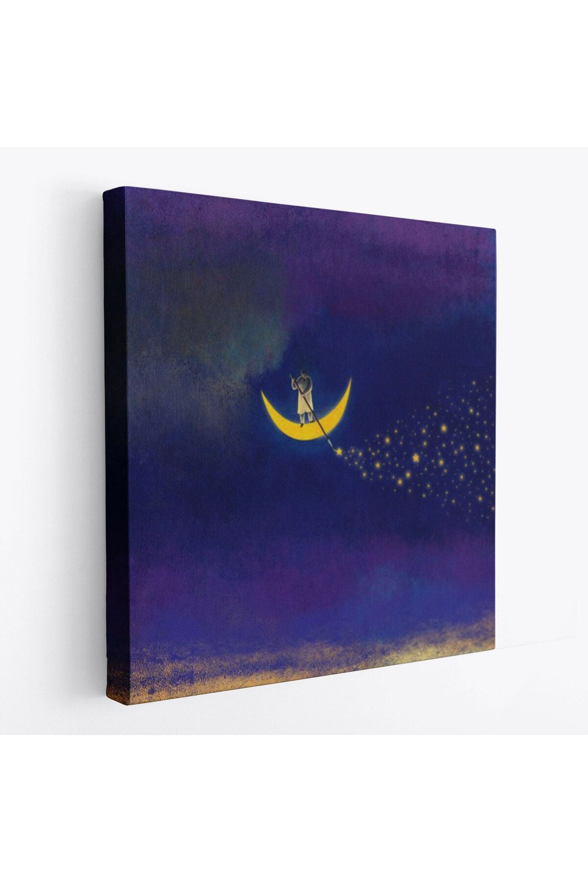 Ay'dan Yıldız Saçan Adam Kanvas Tablo-5849