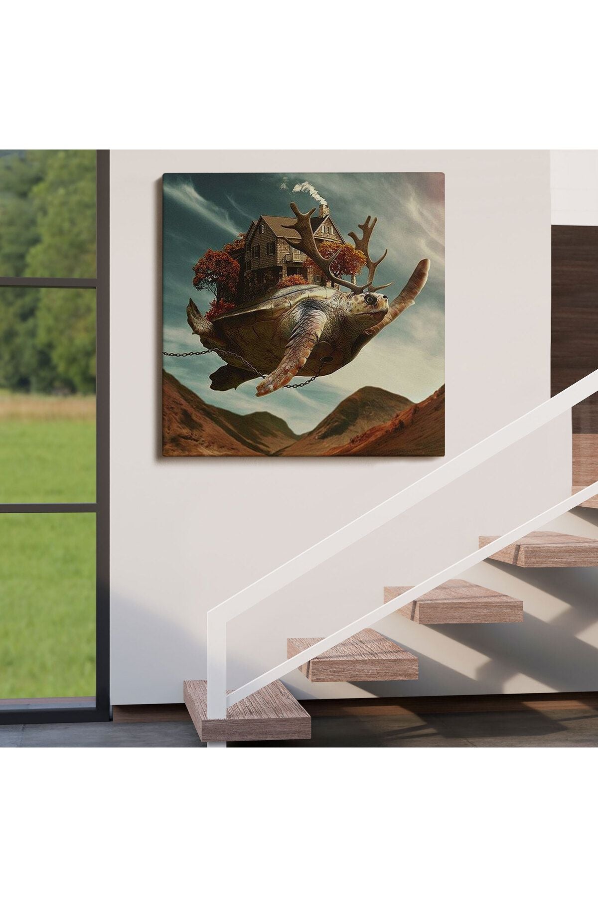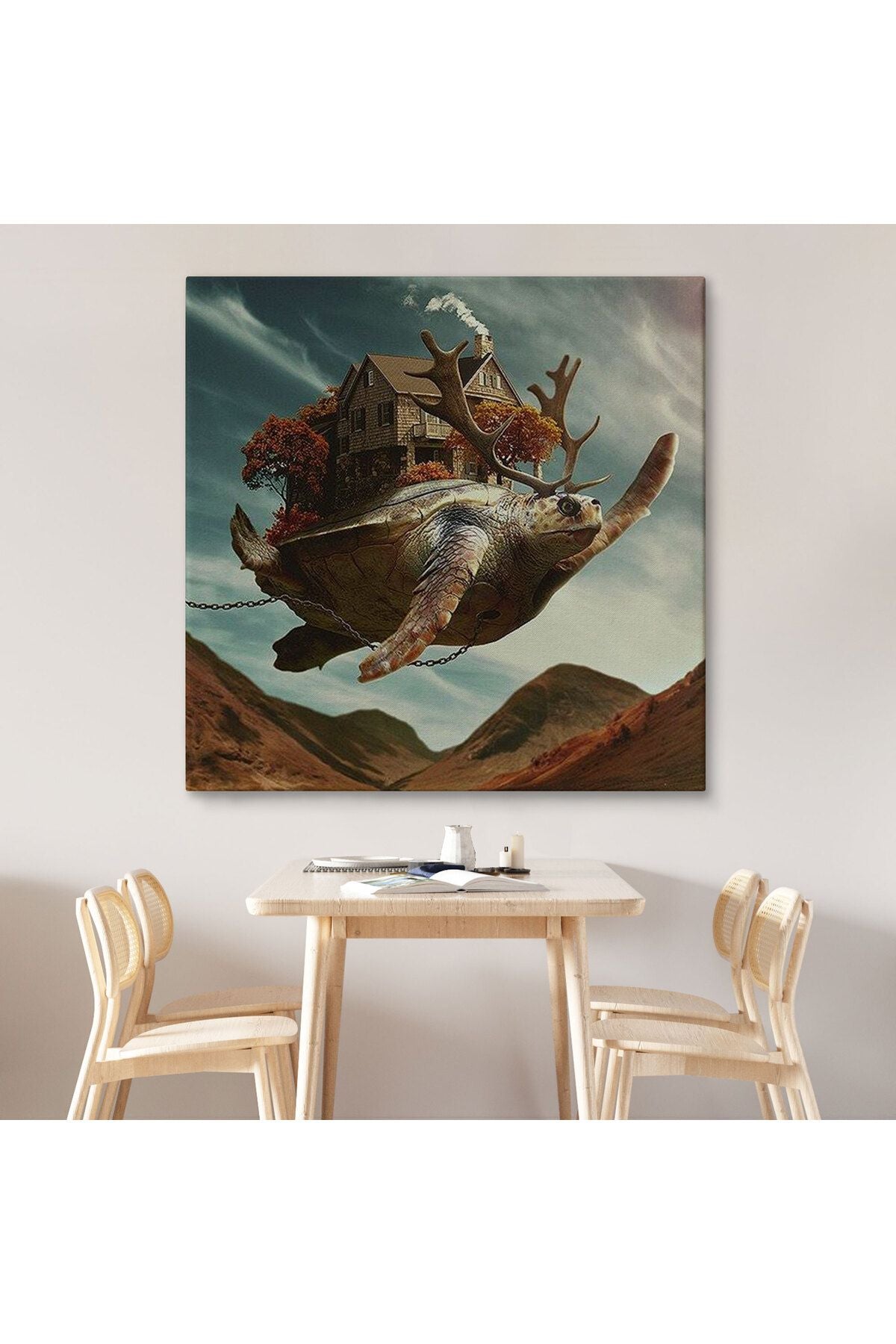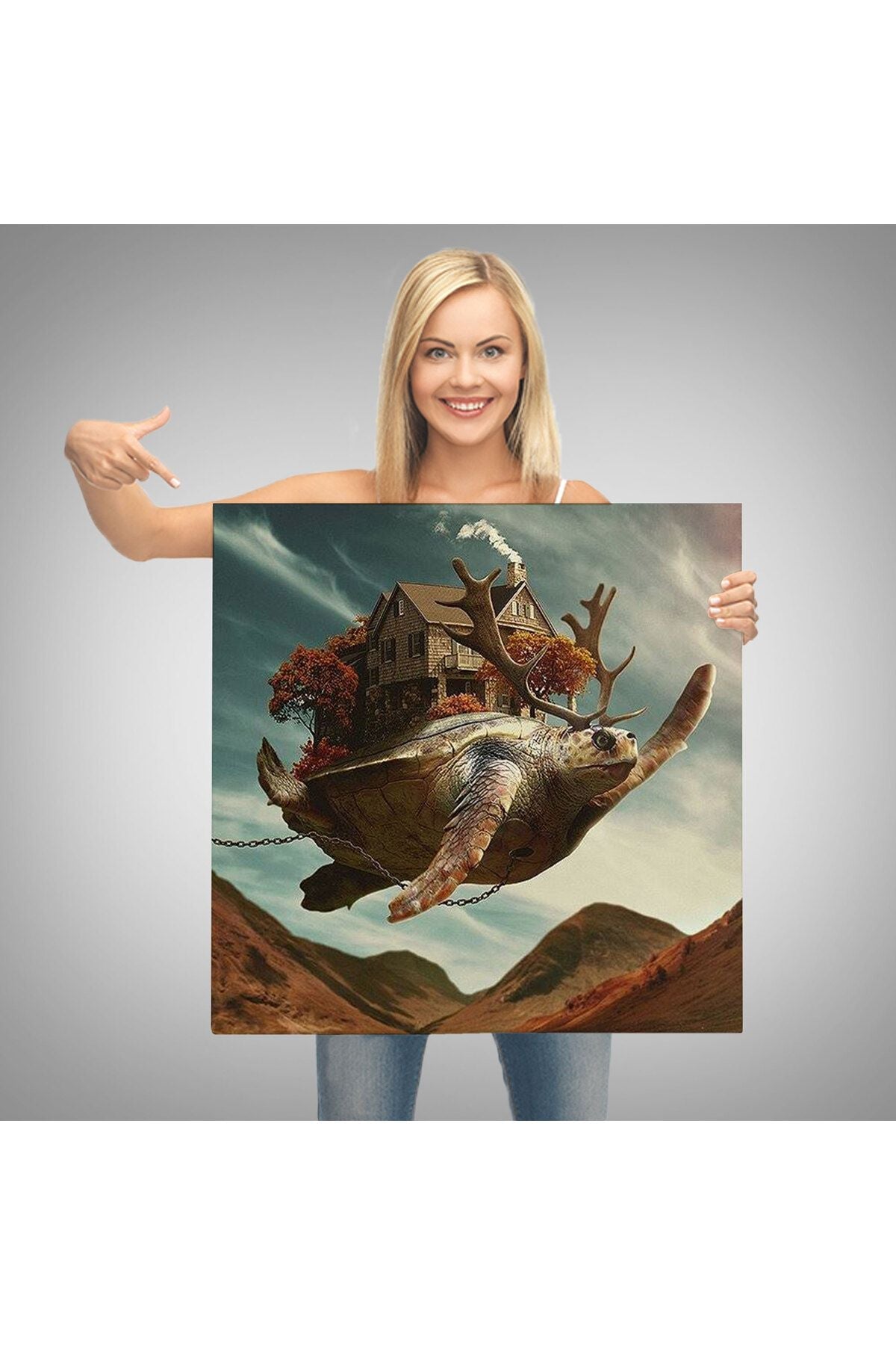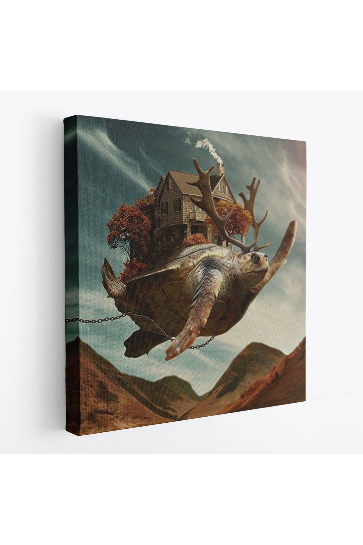 Evini Sırtında Taşıyan Uçan Kaplunbağa Sürreal Tablo-5868