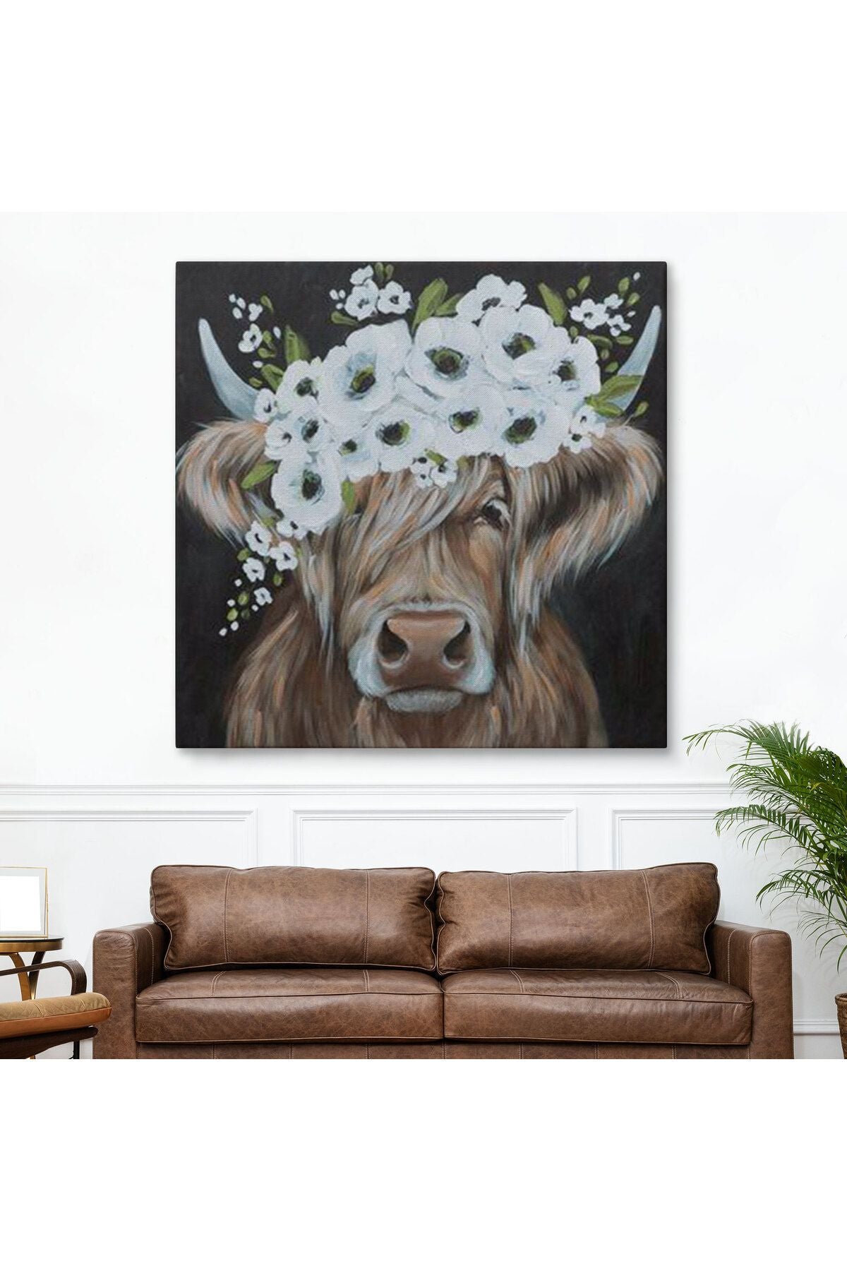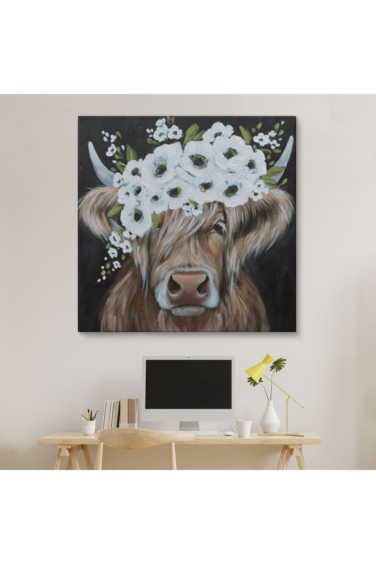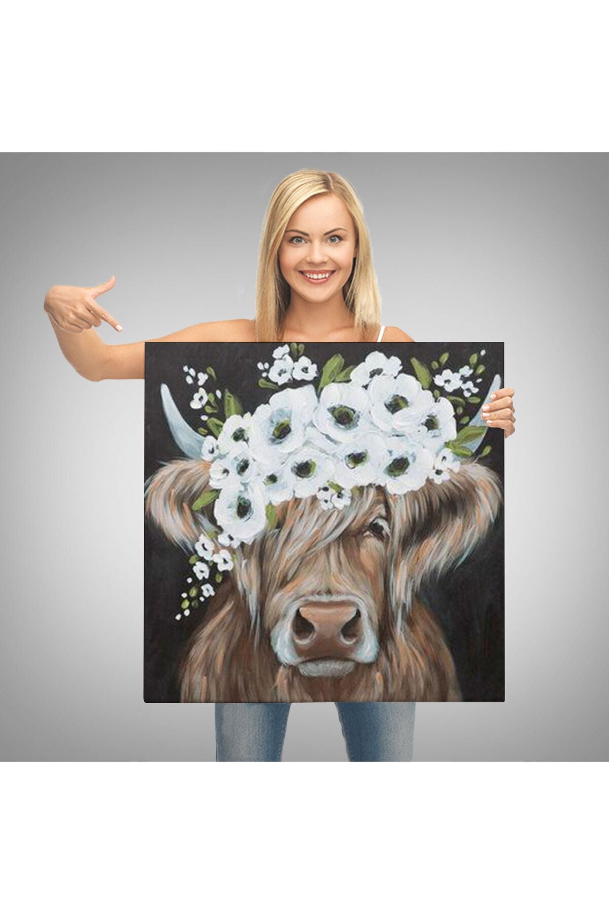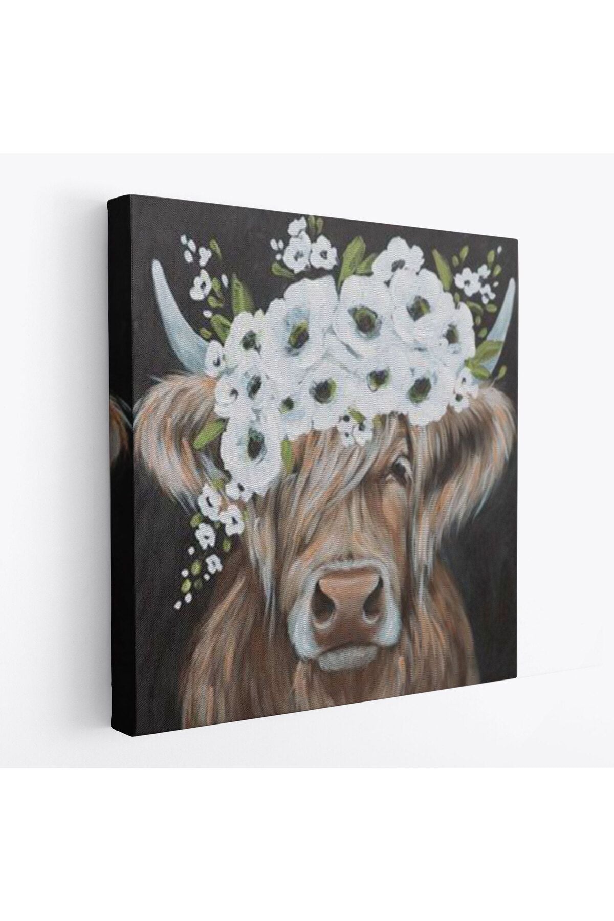 Beyaz Çiçek Taçlı İnek Tablo-5875