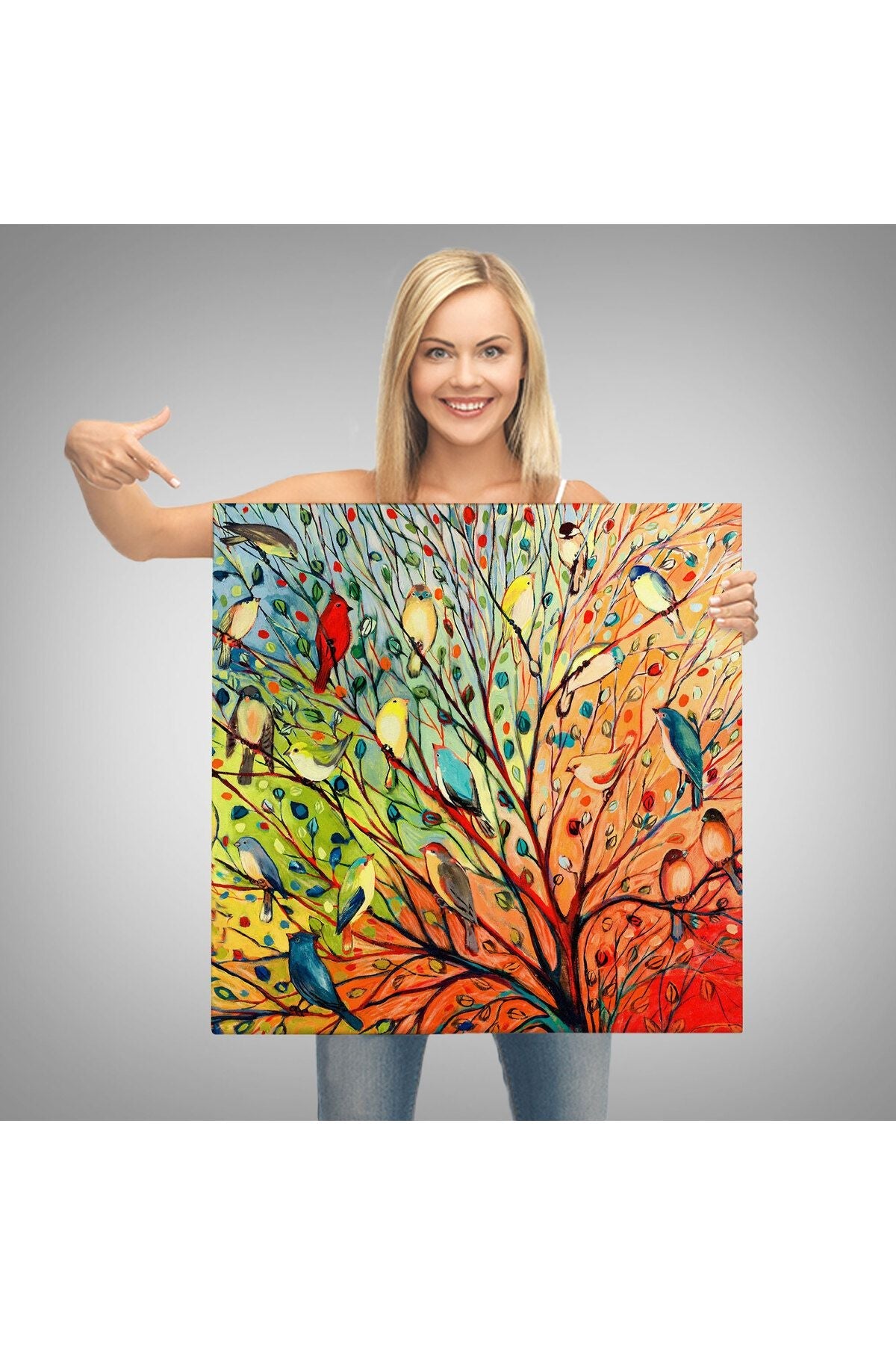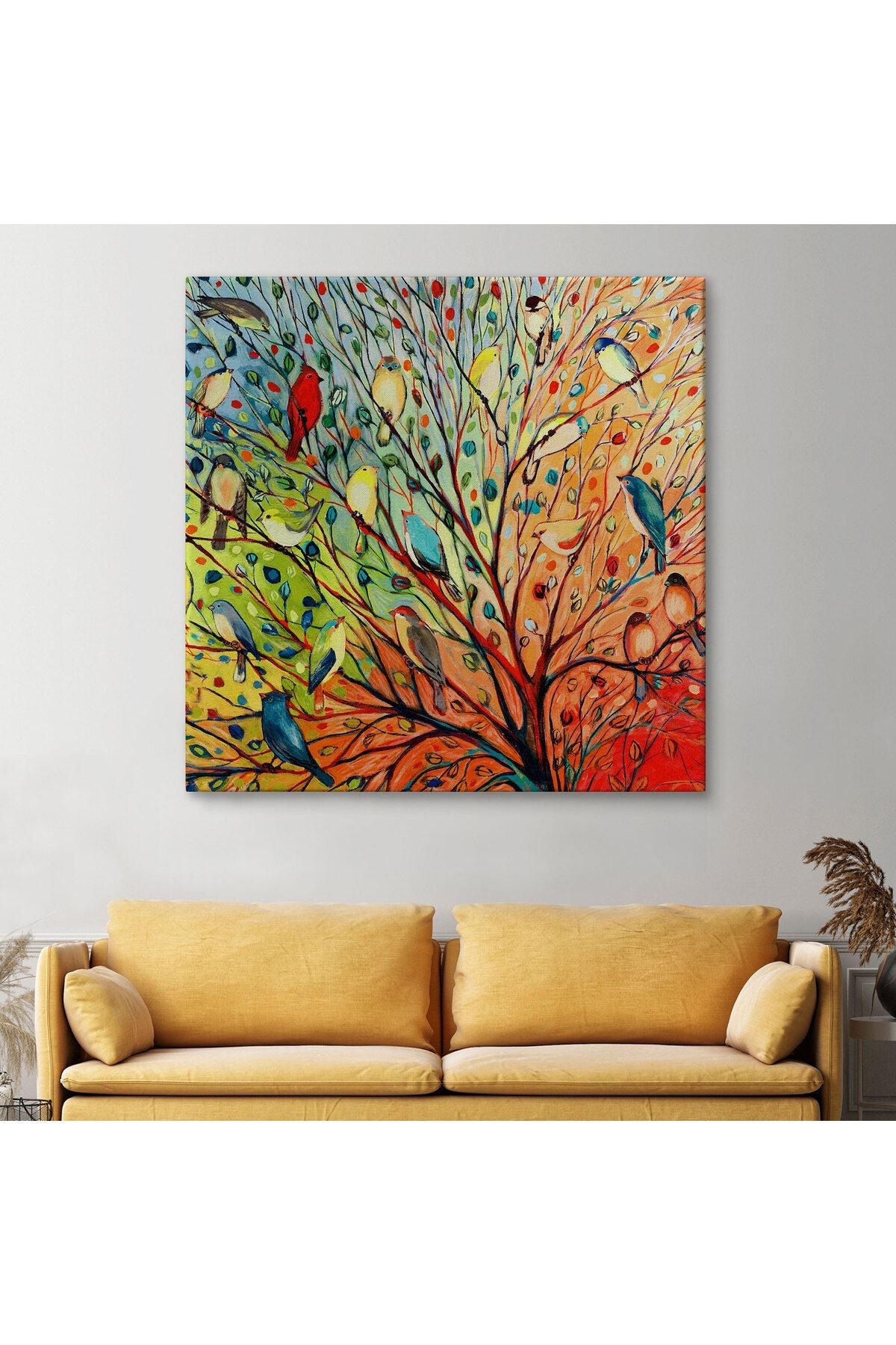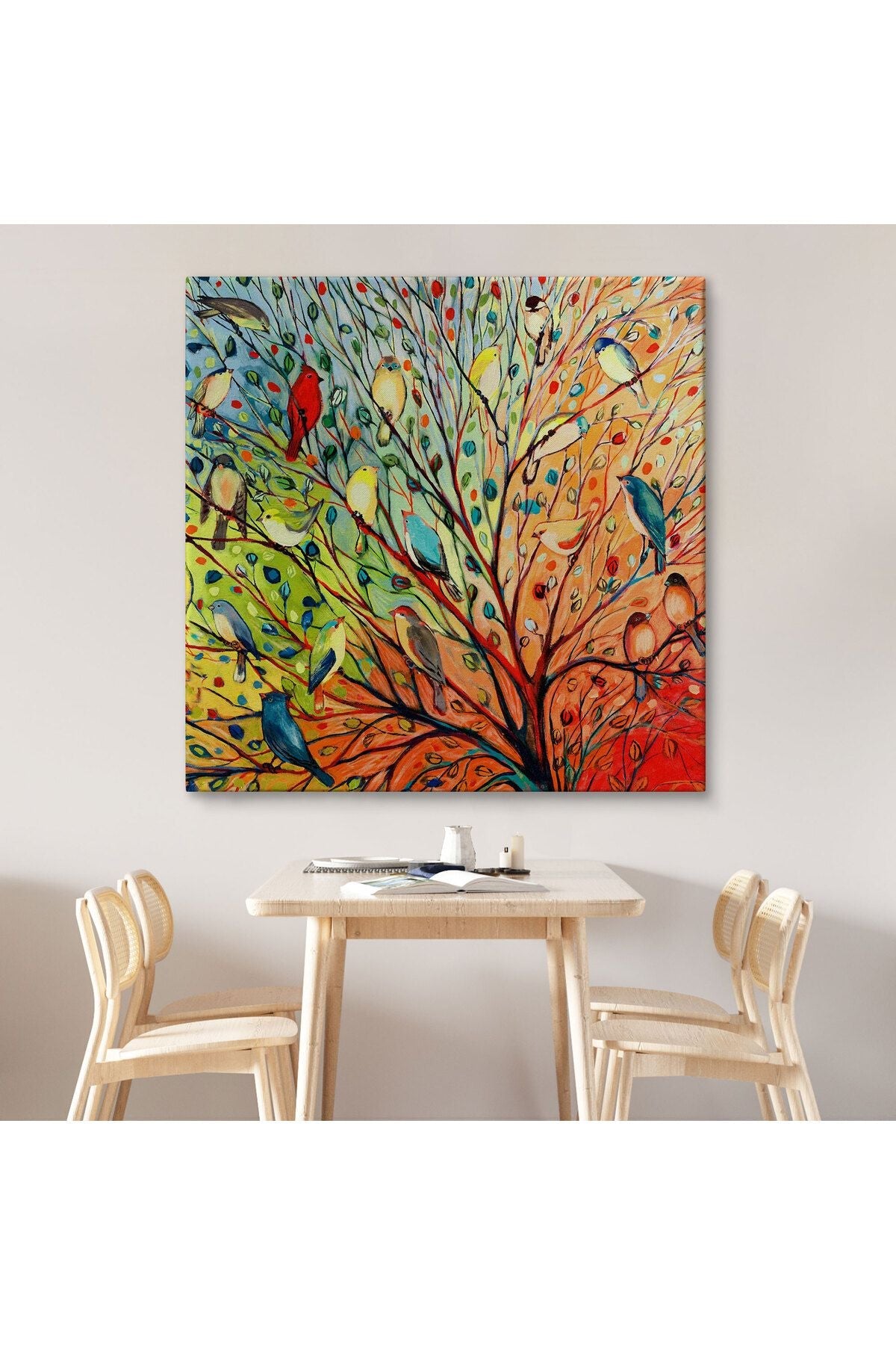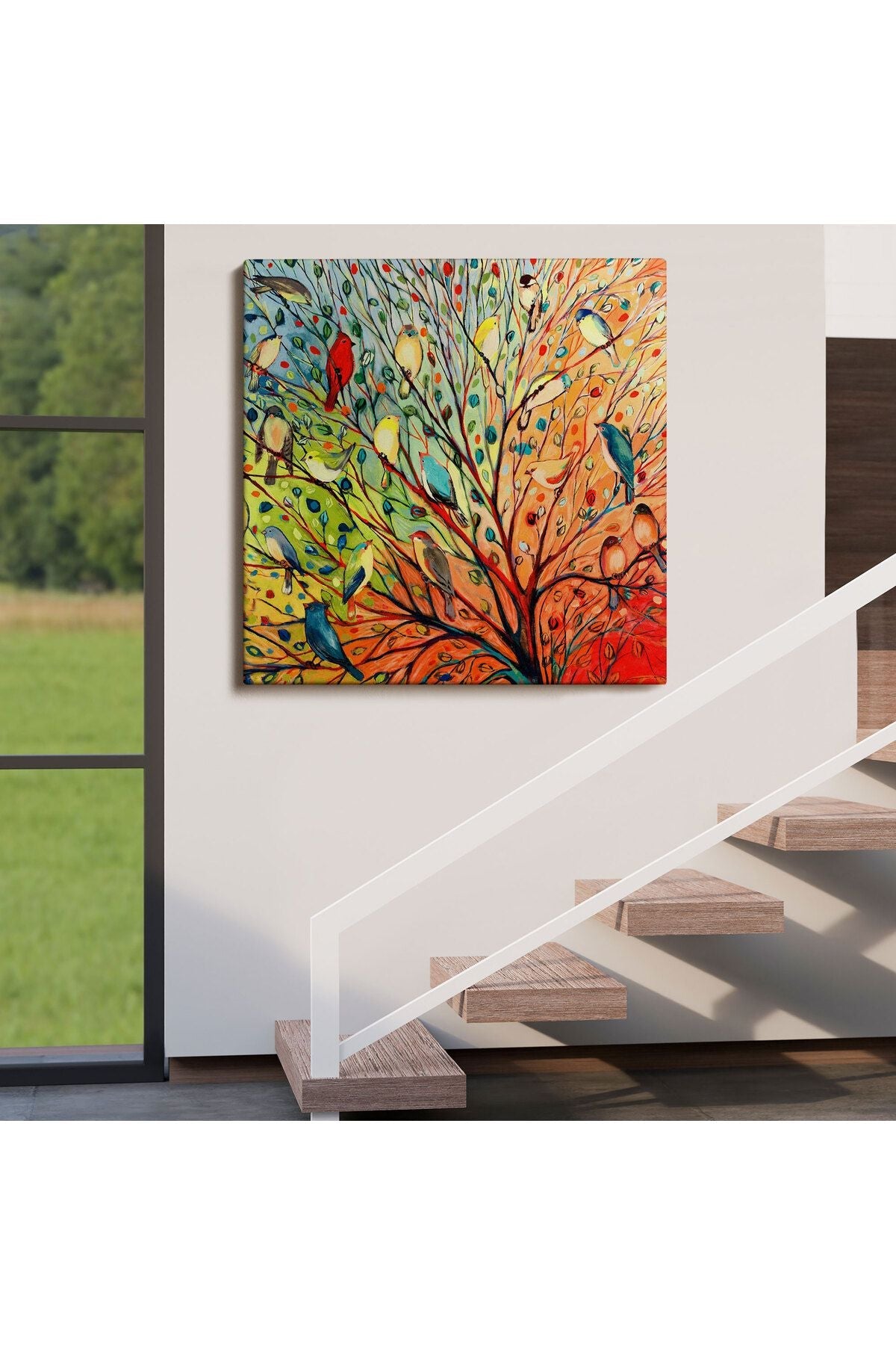 Renkli Ağaçtaki Renkli Kuşlar Kanvas Tablo-5887