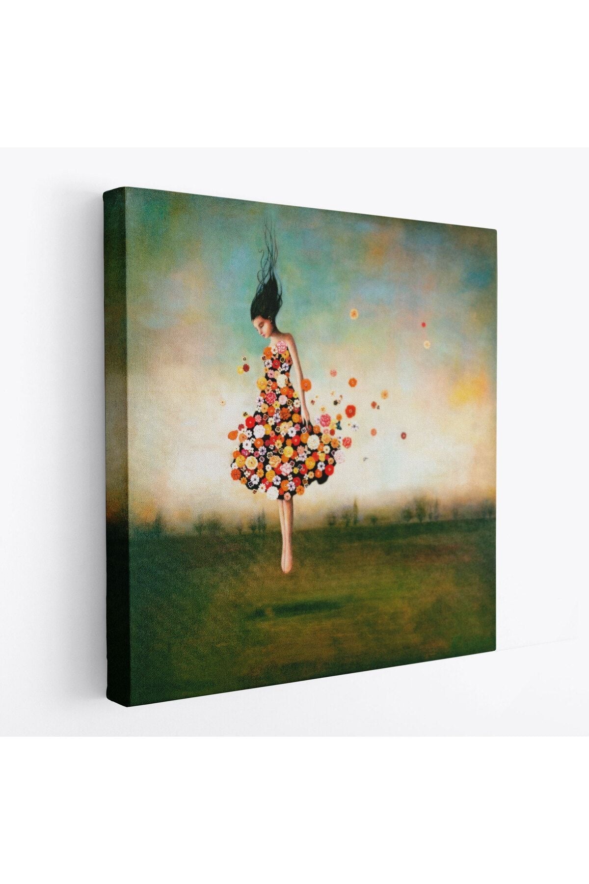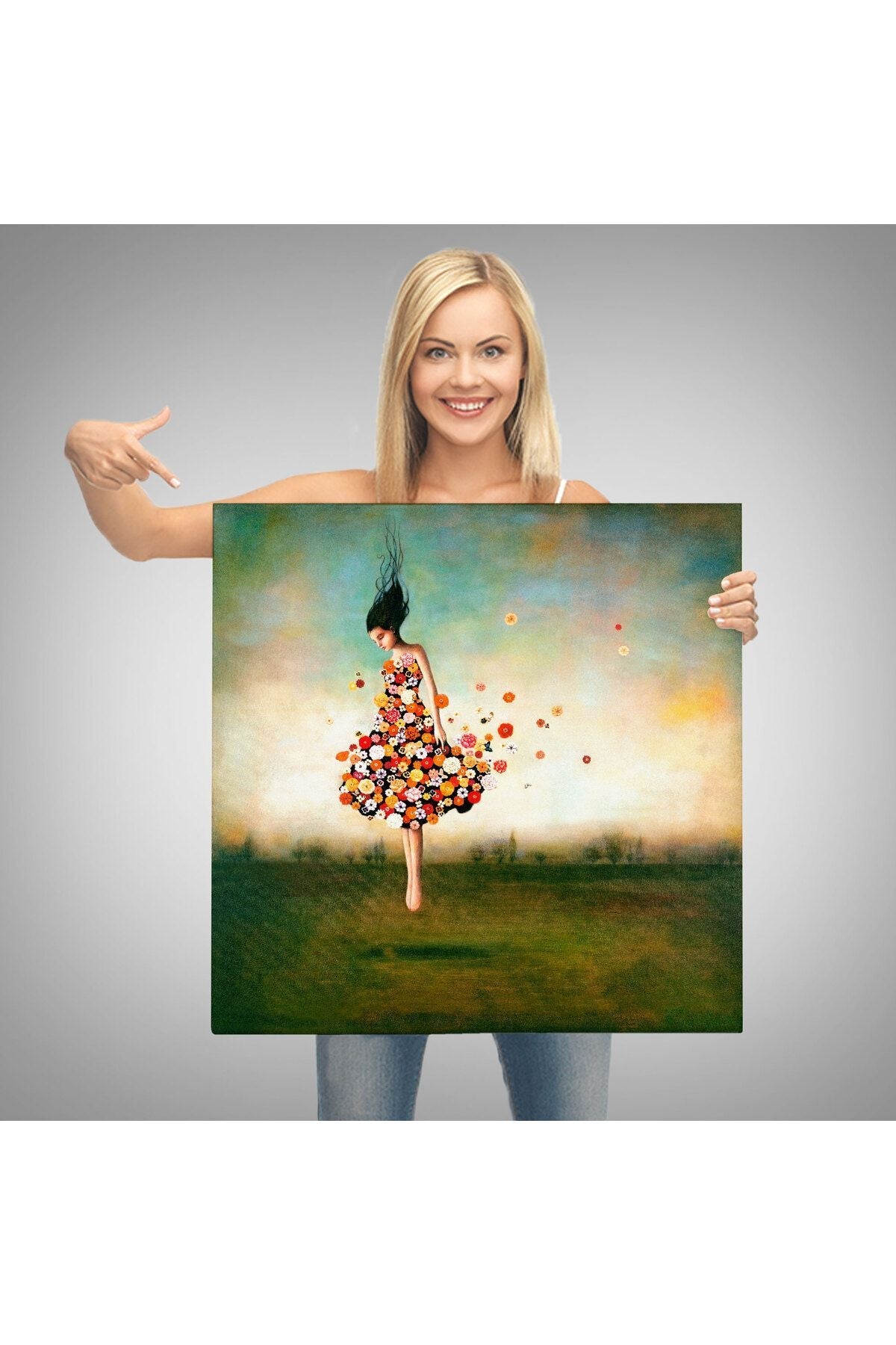 Çiçek Elbiseli Kız Kanvas Tablo-5889
