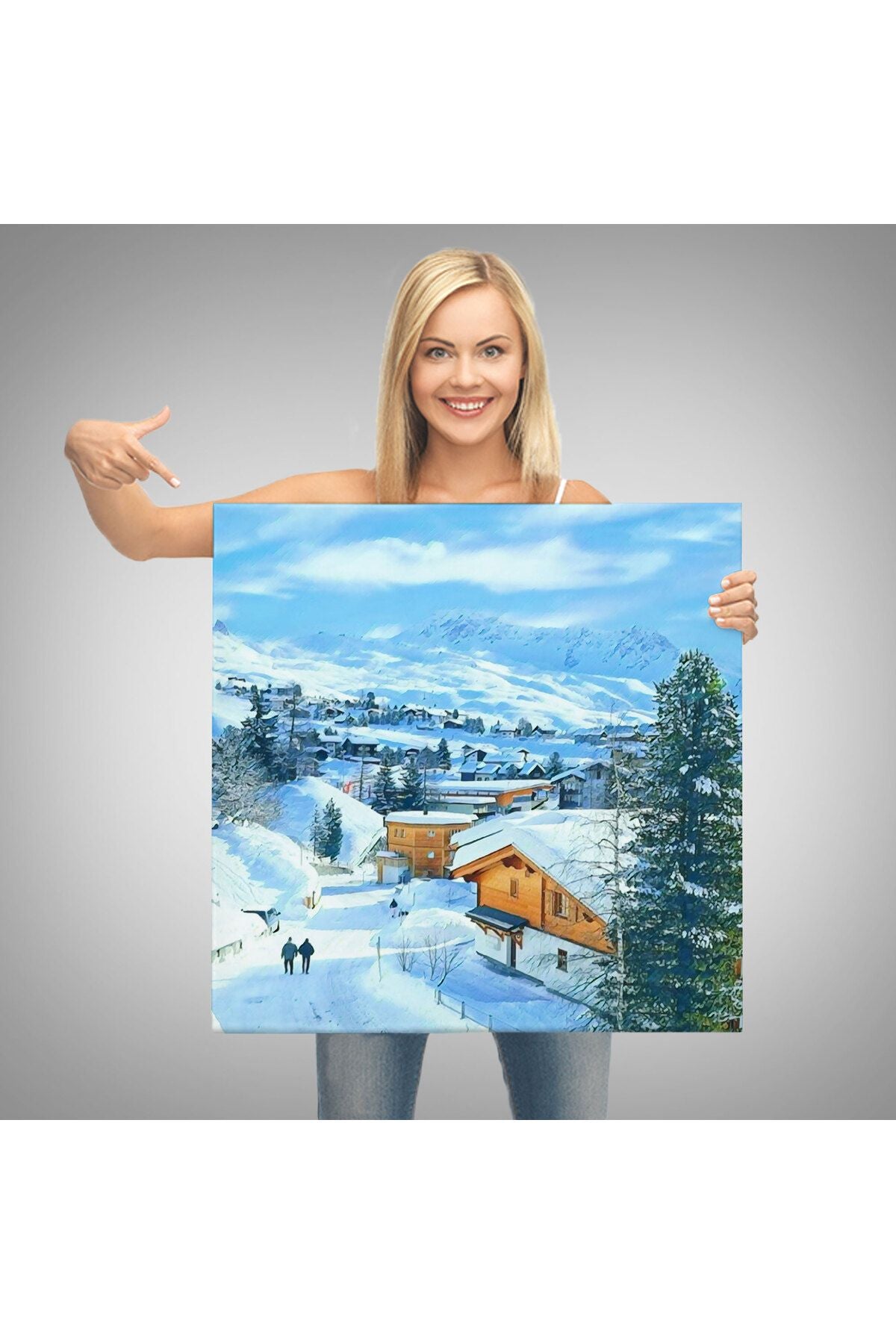 Karlı Dağ Köyü Kanvas Tablo-5912