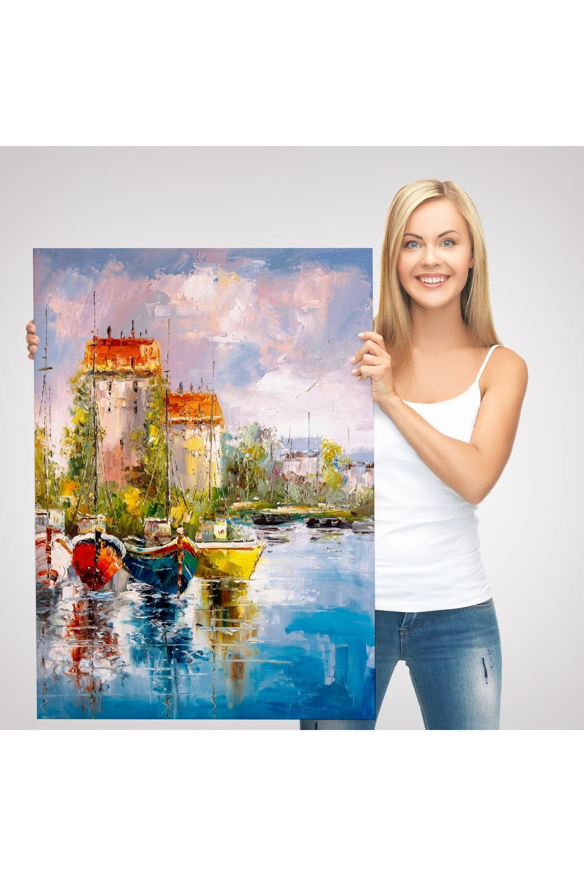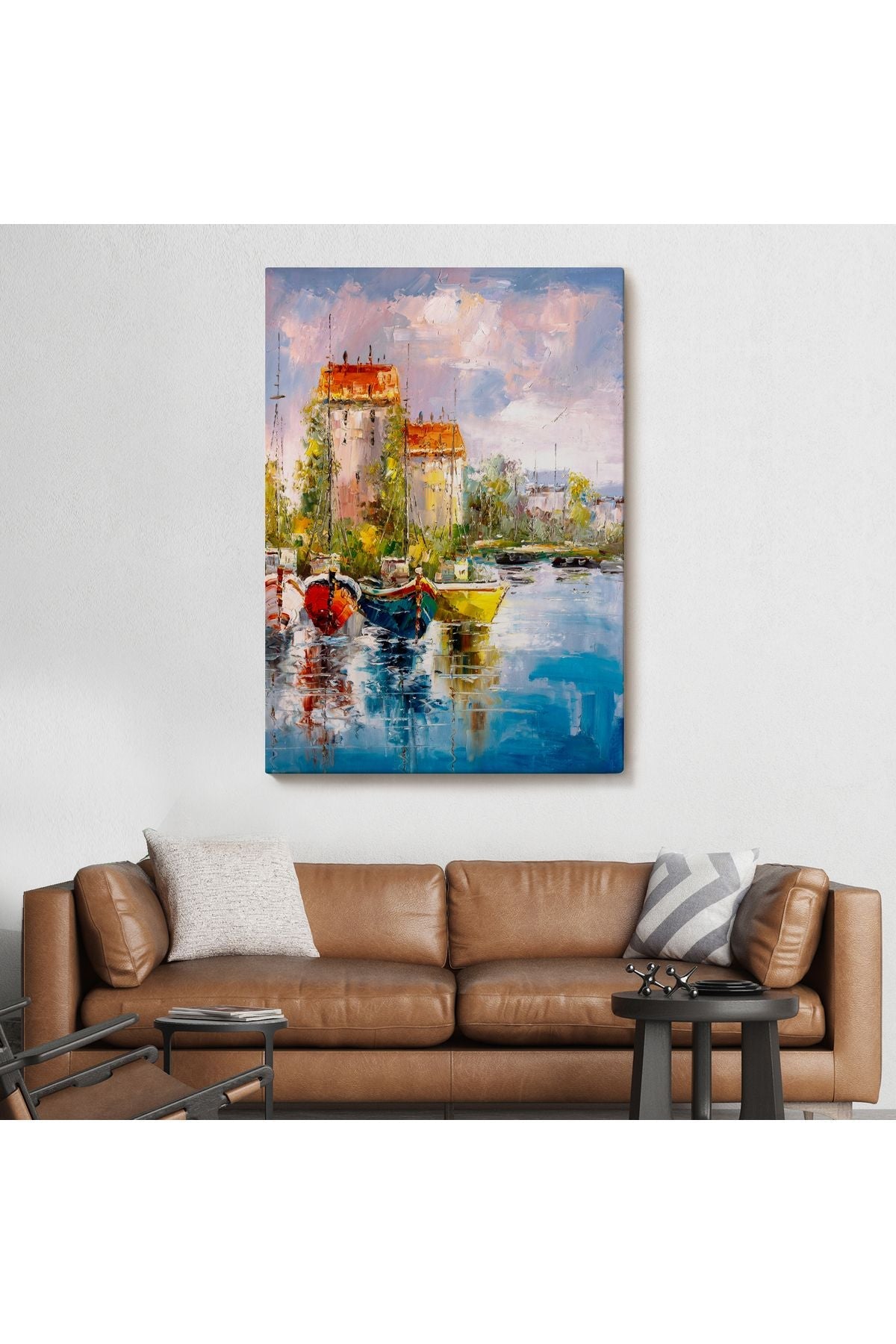 Liman Manzarası Yağlıboya Görünüm Dekoratif Kanvas Duvar Tablosu-5931