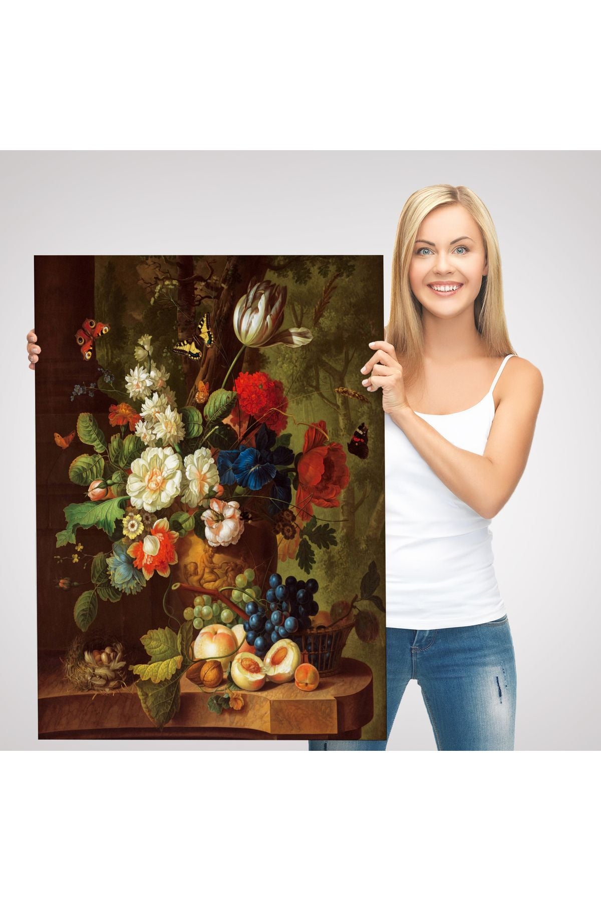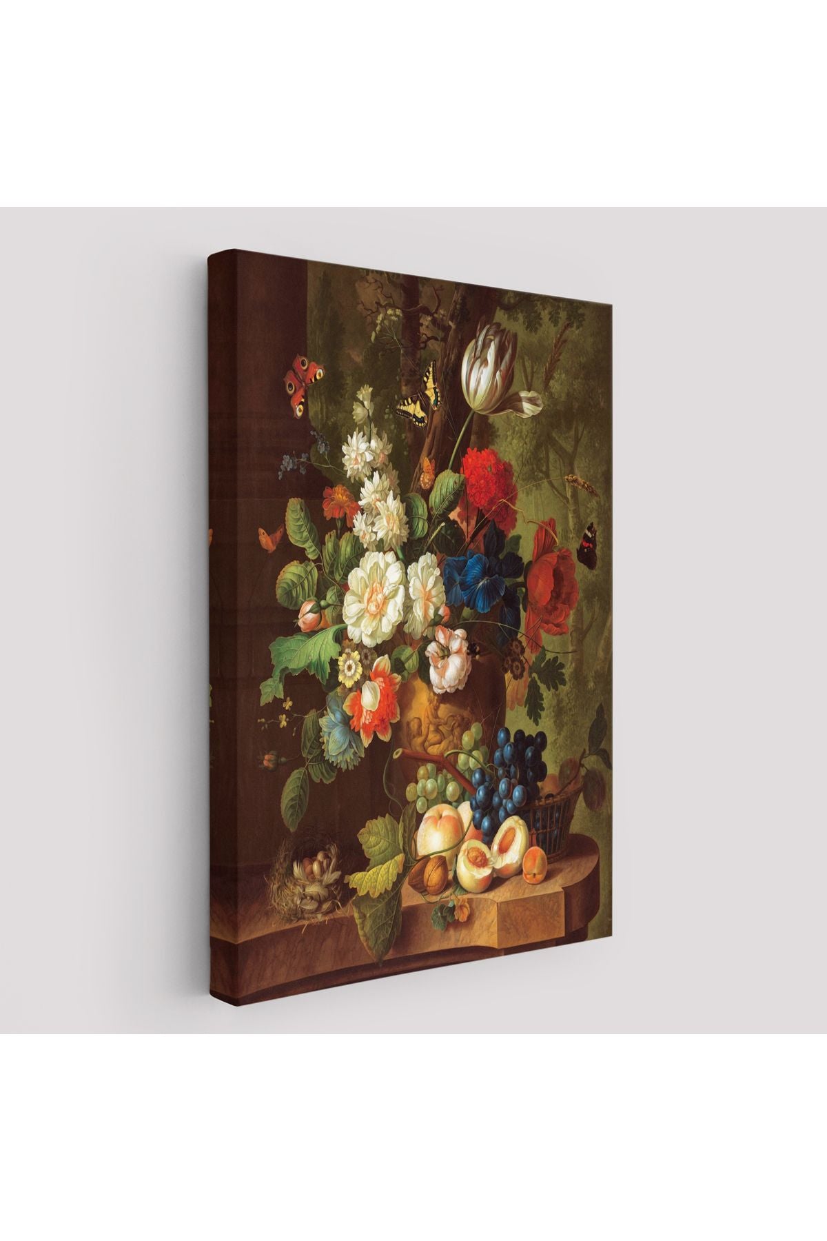 Çiçekler ve Meyveler Yağlıboya Görünüm Dekoratif Kanvas Duvar Tablosu-5939