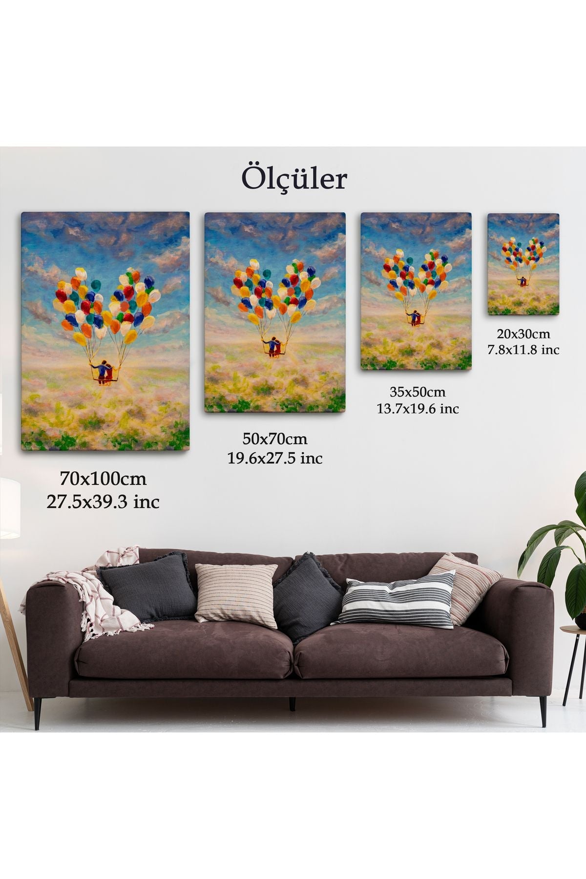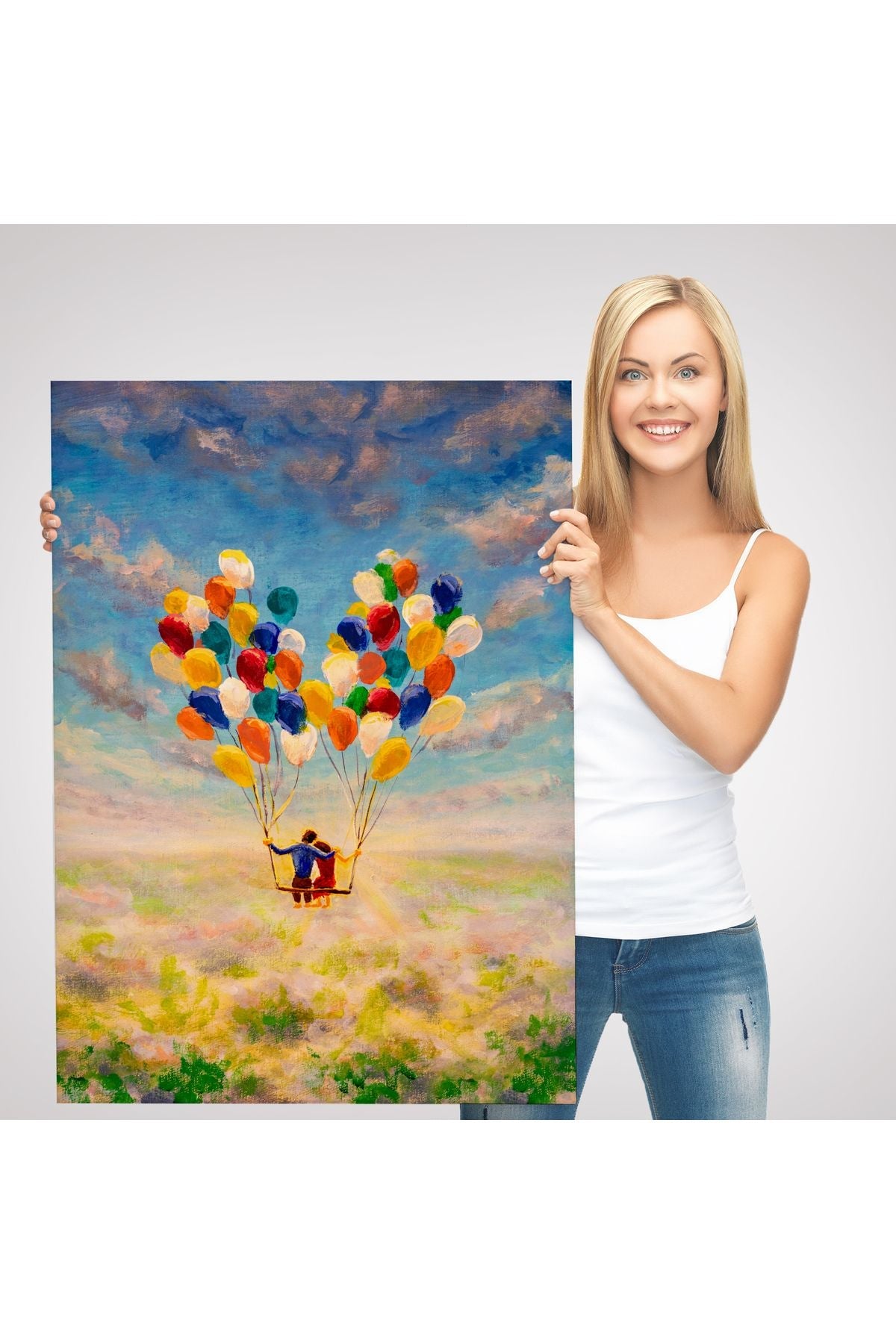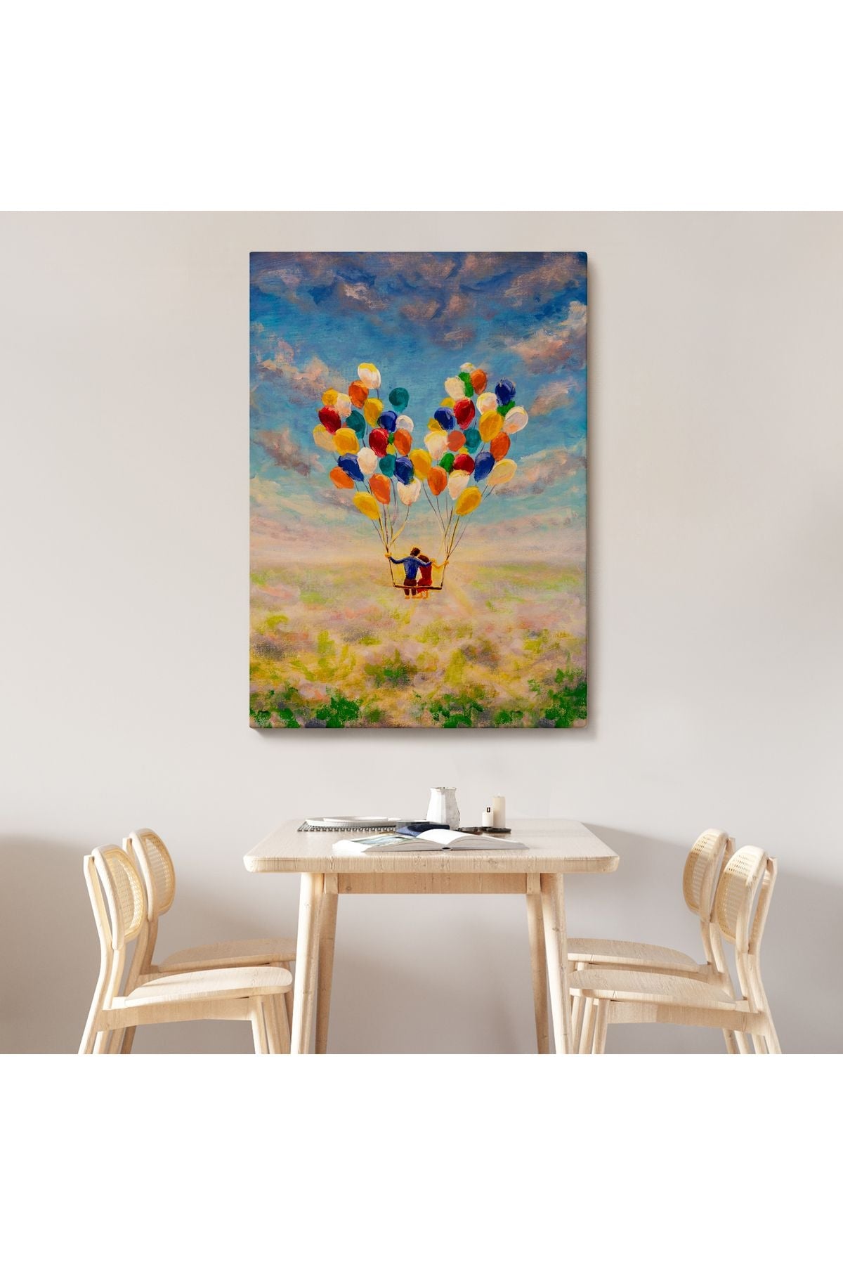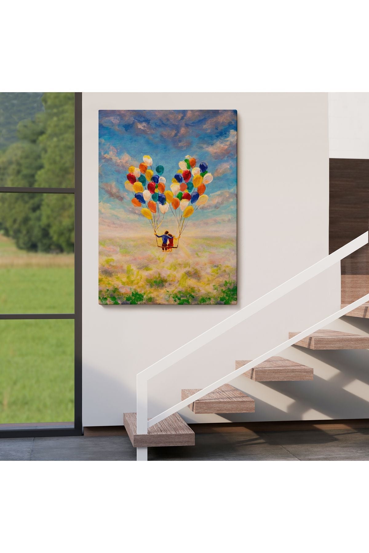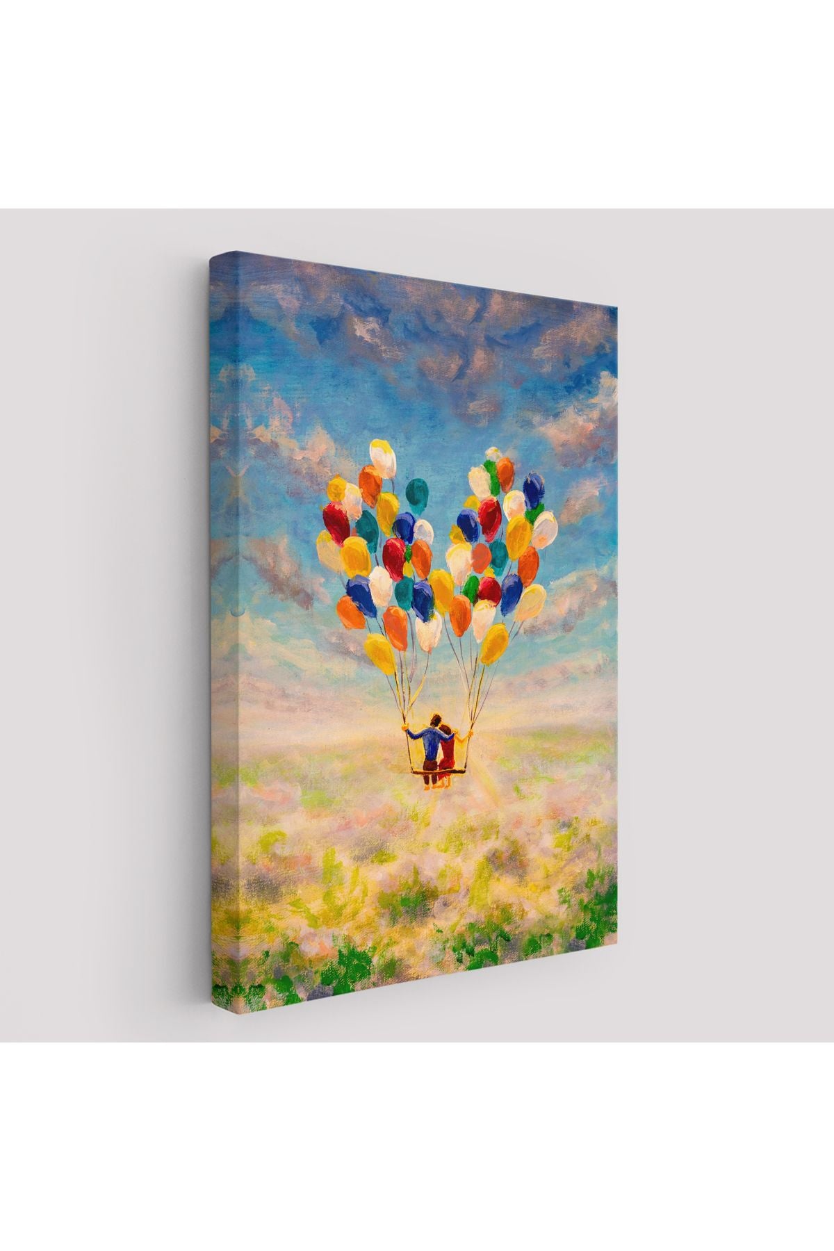 Bolanlar Ile Uçan Sevgililer Yağlıboya Görünüm Dekoratif Kanvas Duvar Tablosu-5944