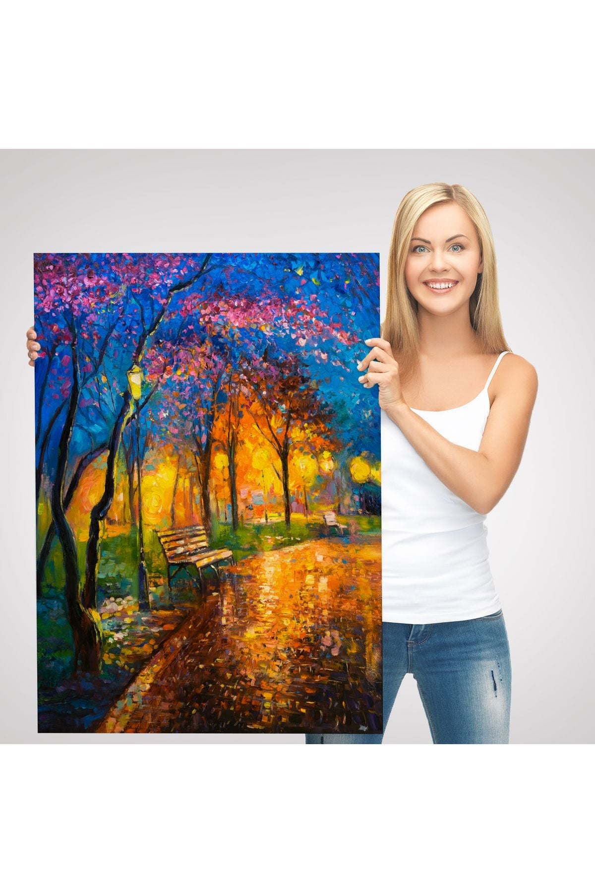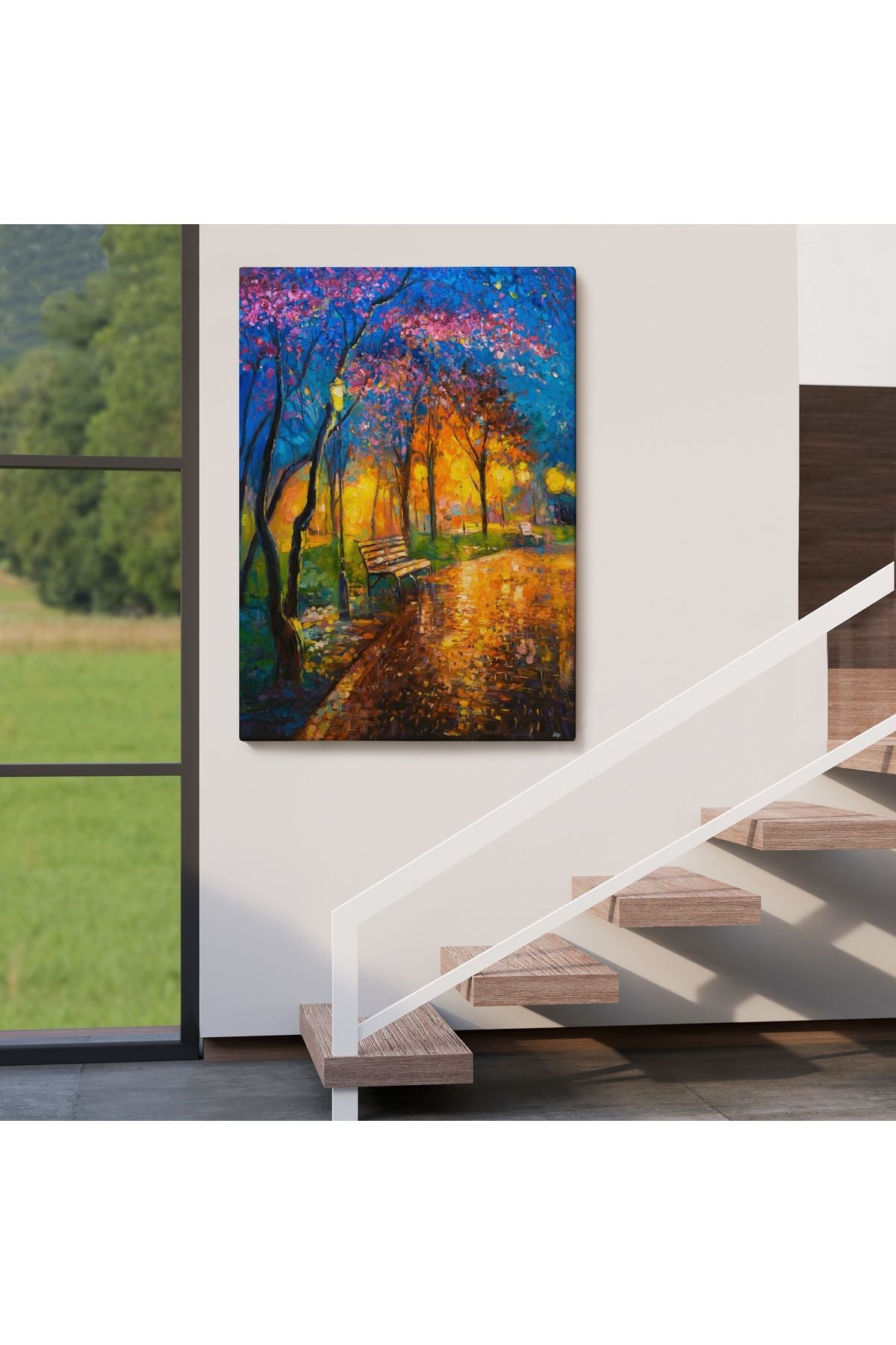 Moskova Parkta Gece Manzarası Kanvas Tablo-5986