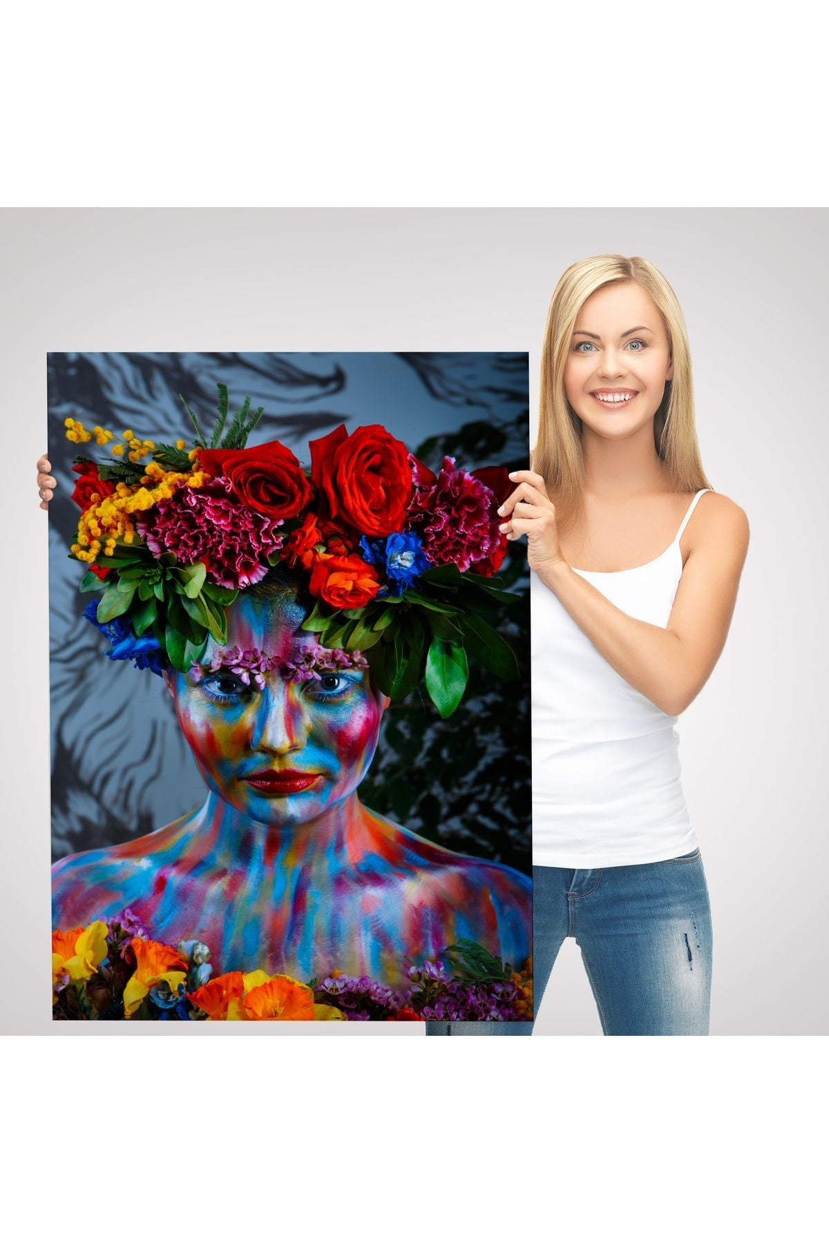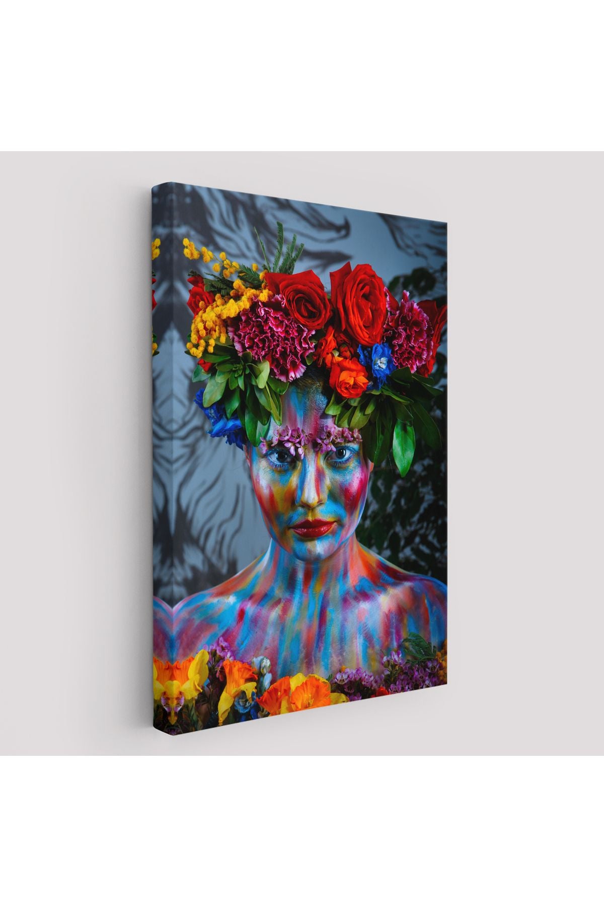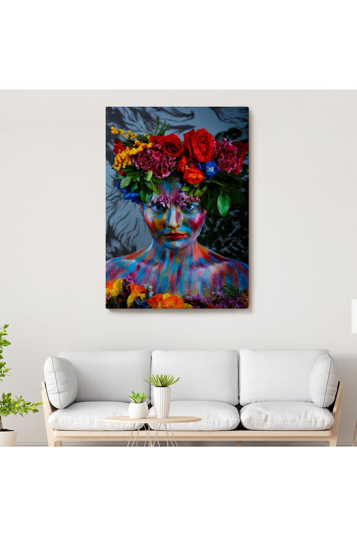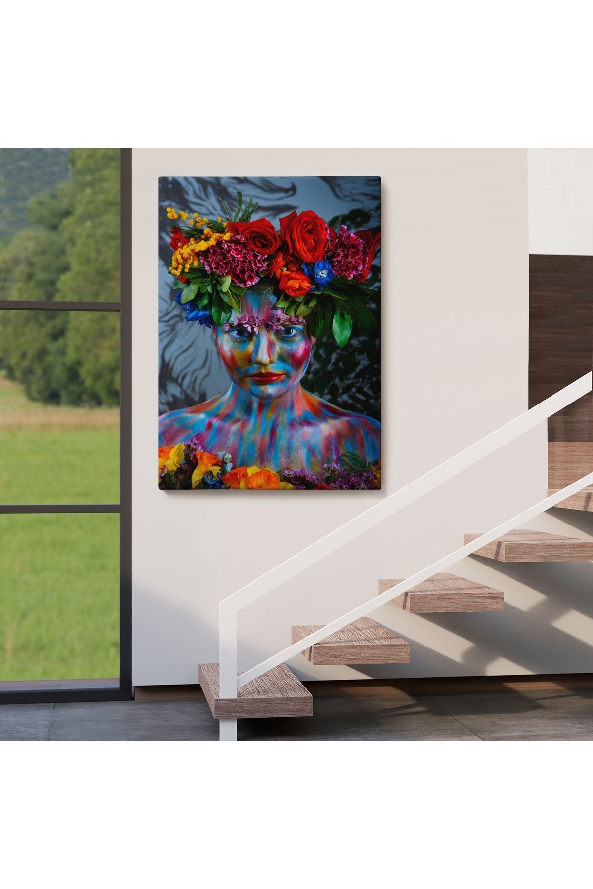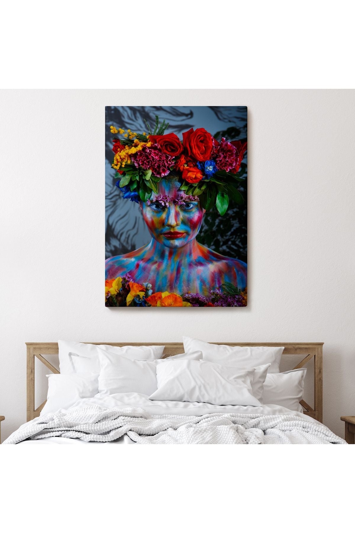Renkli Çiçek Taçlı Kız Kanvas Tablo-5989