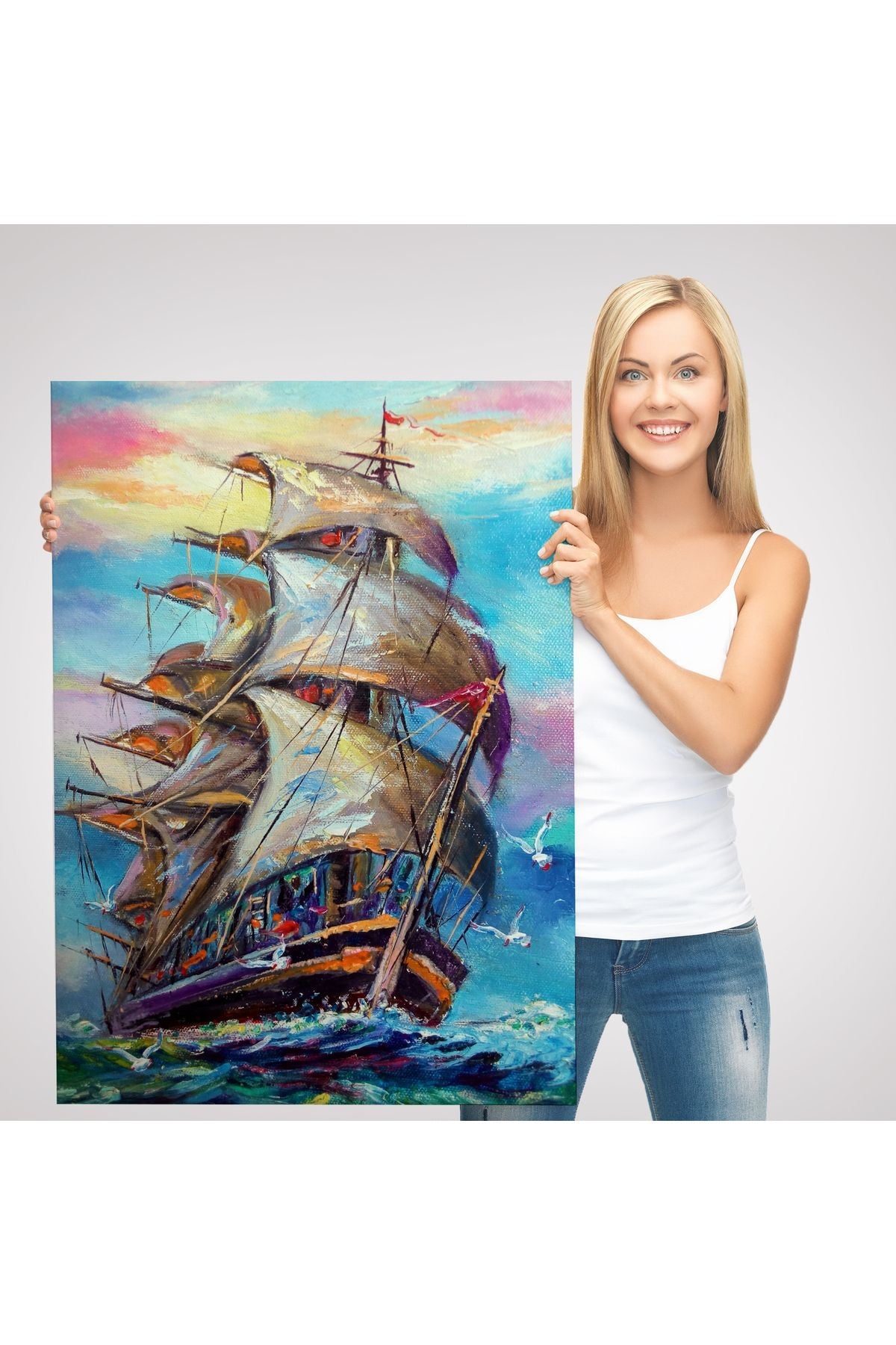 Yağlı Boya Görünümlü Yelkenli Kanvas Tablo-5999
