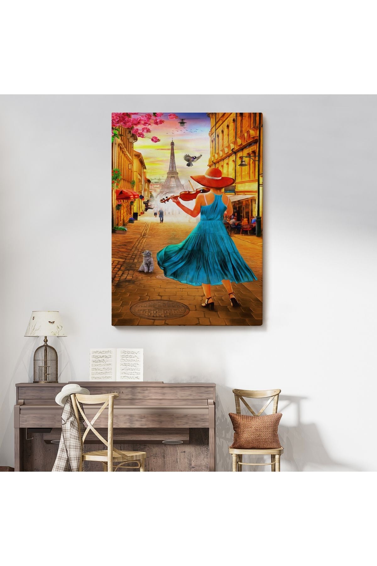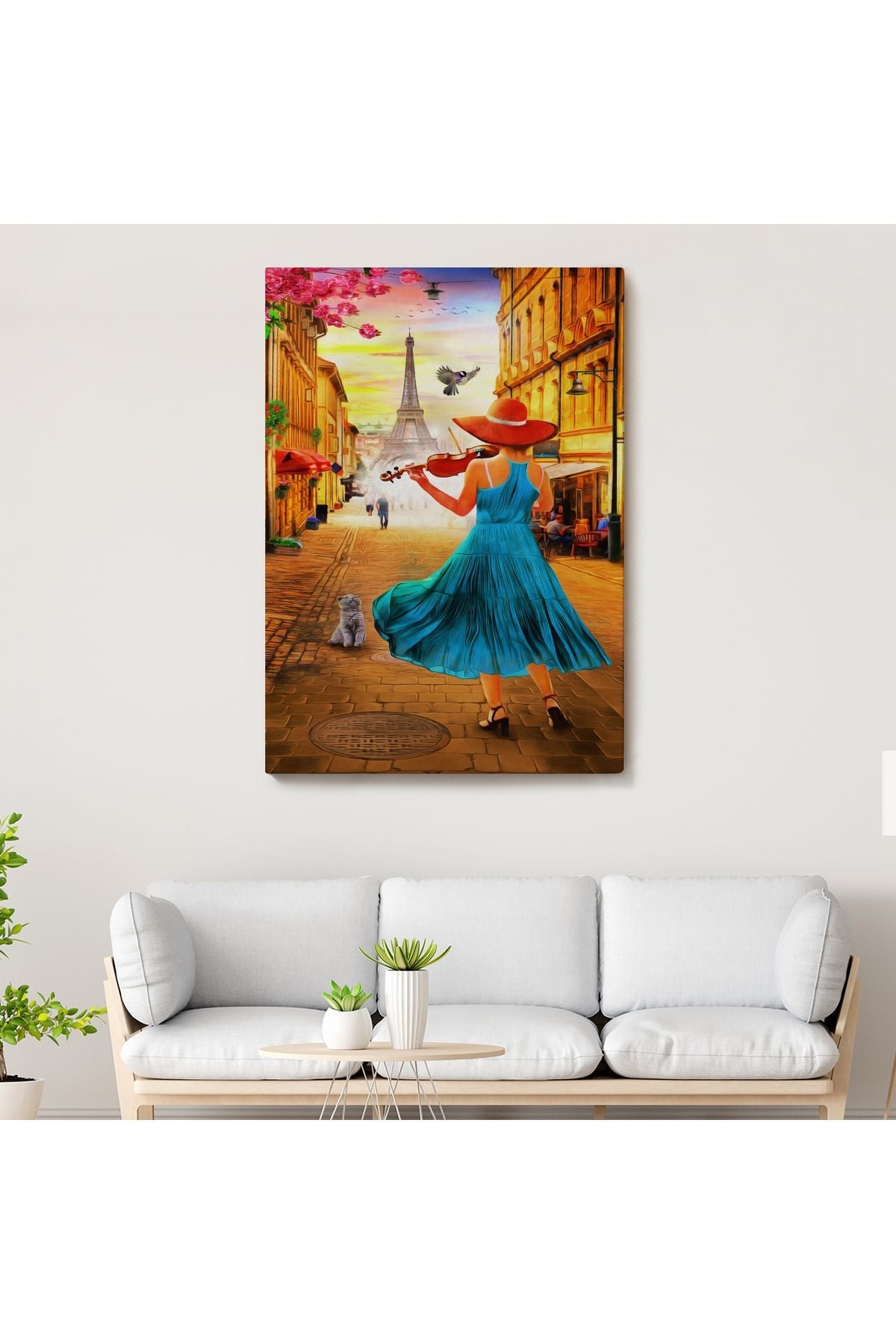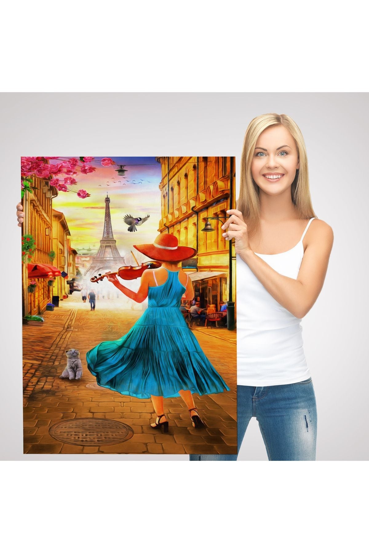 Paris de Etfel Kulesine Karşı Keman Çalan Kız Tablosu-6006