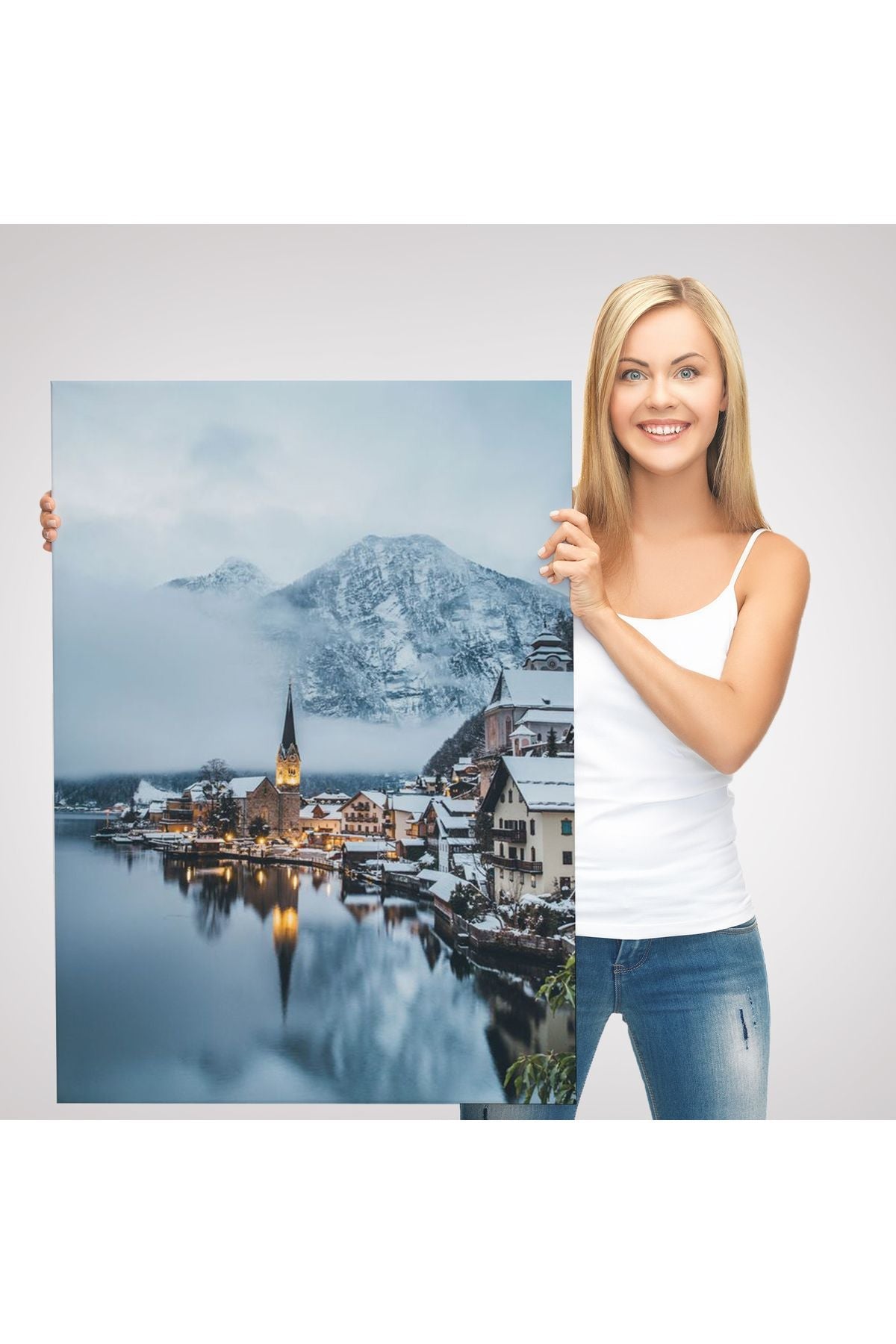 SZ KVS1-Dekoratif Duvar Tablosu-Hallstatt Manzarası Avusturya Kanvas Tablo 6028