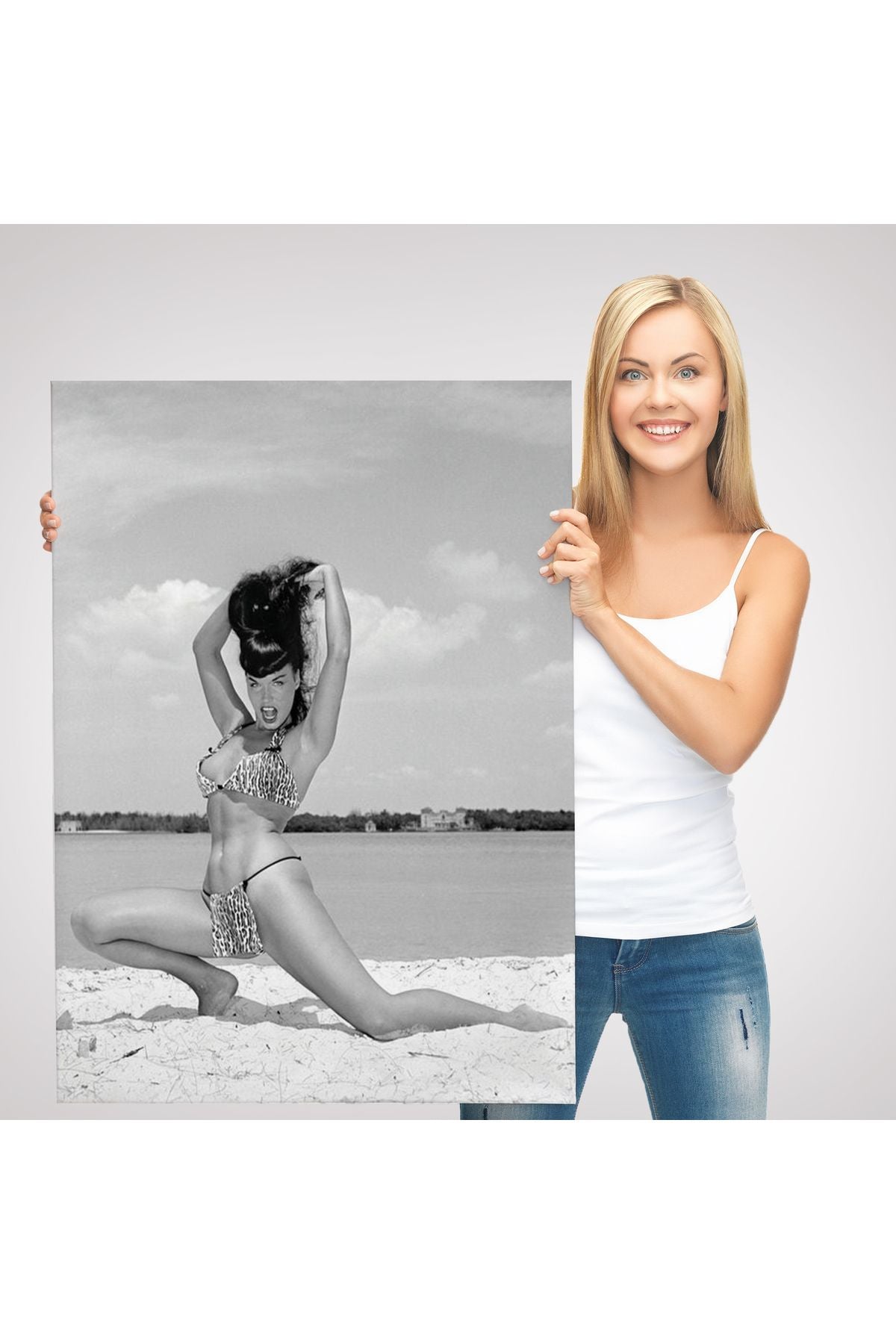 Leopar Bikinili Bettie Page Duvar Tablosu-6053